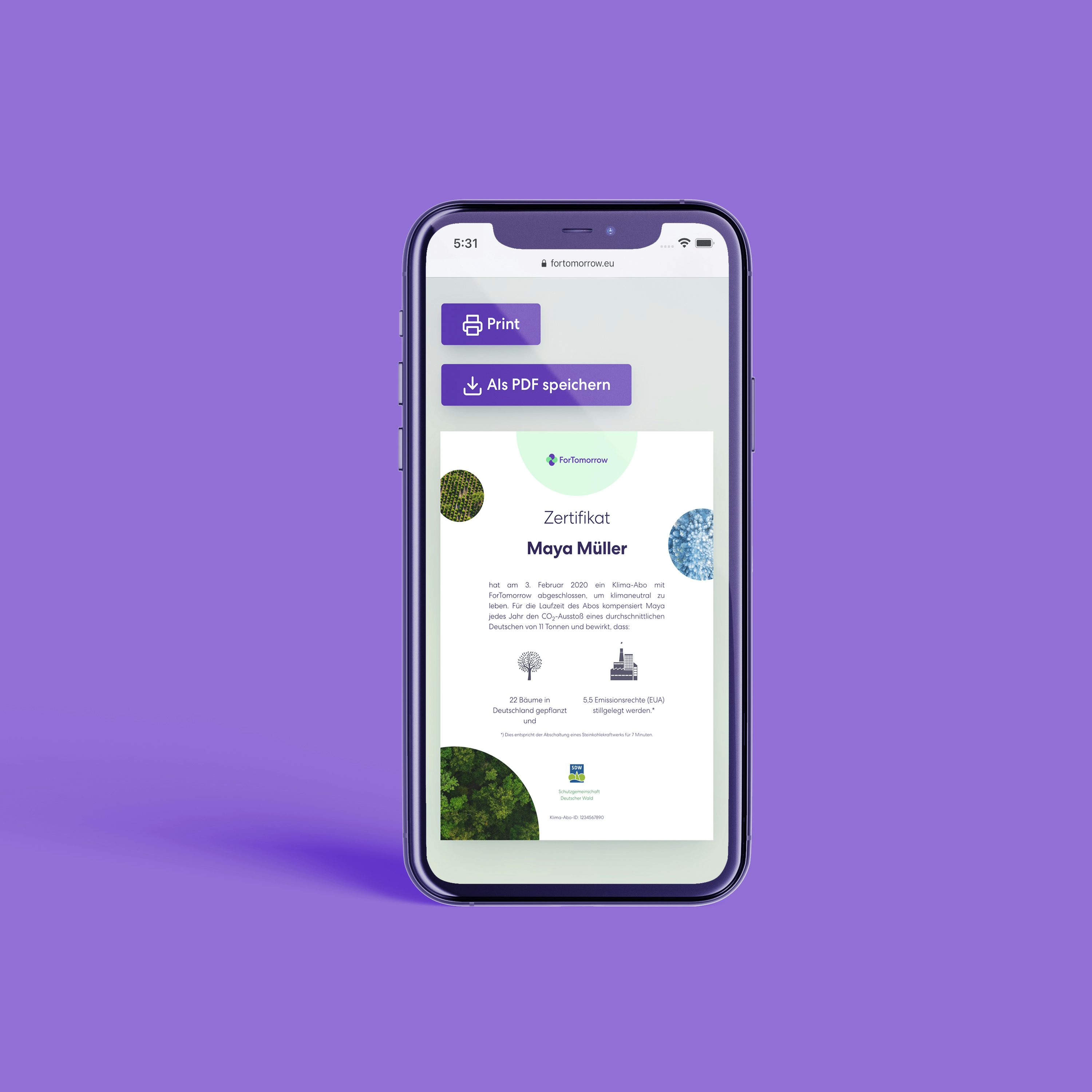 ForTomorrow wurde im Dezember 2019 von Ruth von Heusinger, gelernte Diplom Physikerin, gegründet. Ihr Konzept? Sie bietet für uns Endkonsument*innen und Unternehmen Klima-Abos an. Jede*r Deutsche stößt im Schnitt jährlich 10 Tonnen CO₂ aus. Um diese Tonnen Kohlendioxid zu kompensieren, kauft ForTomorrow im Namen der Abonnent*innen EU-Emissionsrechte und pflanzt Bäume in Deutschland.