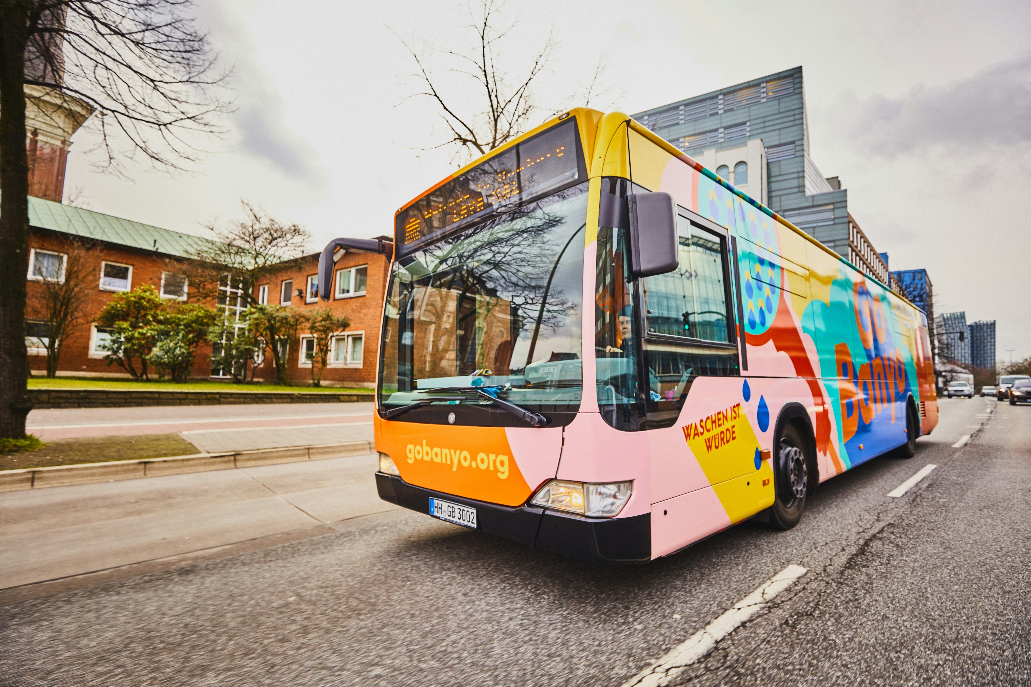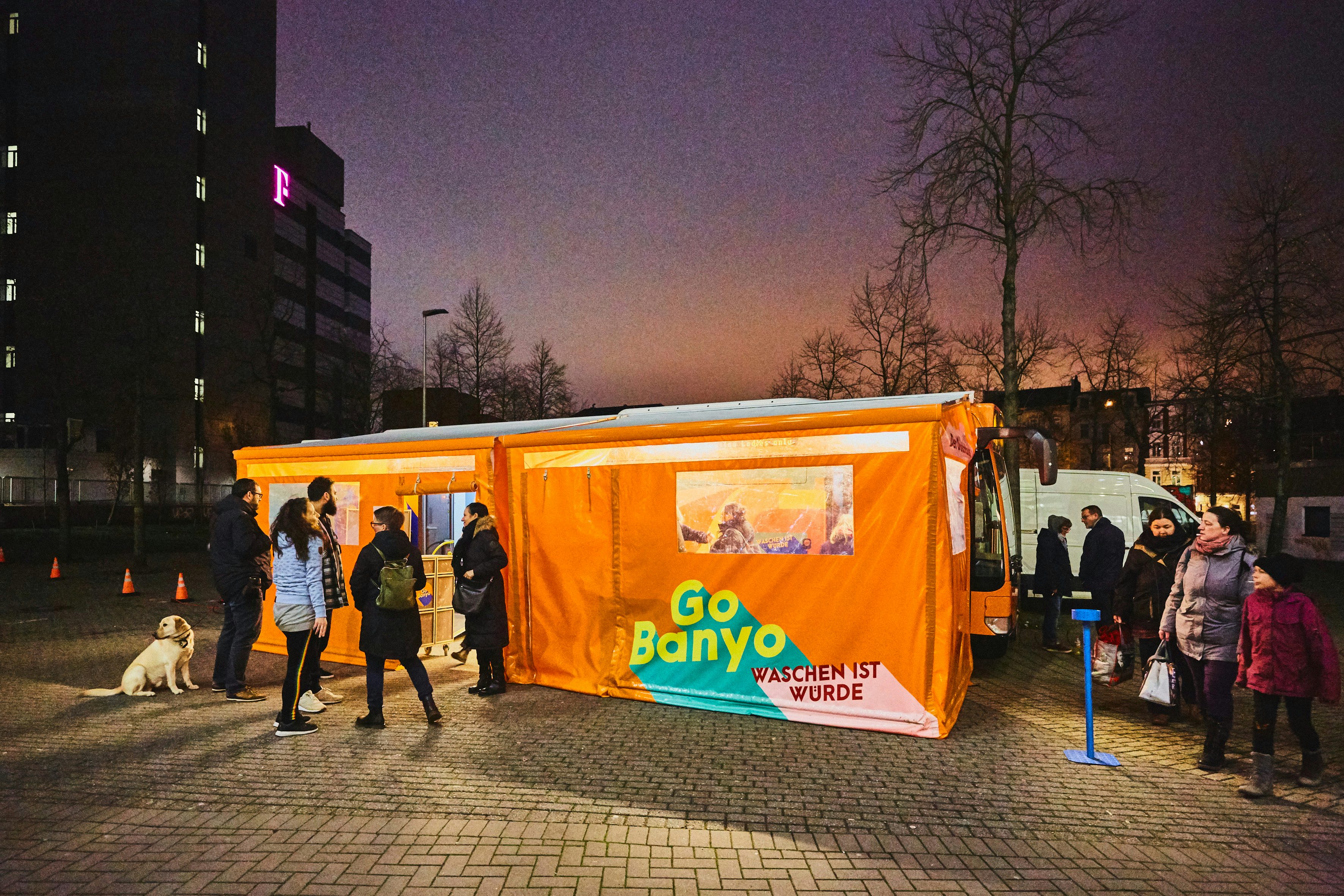 Da Duschen, Toiletten und saubere Kleidung gerade für jene Menschen schwierig zu erreichen sind, die sie am nötigsten haben, gründeten Gülay Ulaş, Dominik Bloh, Tobias Peschel und Chris Poelmann 2019 GoBanyo. Mit seinem Duschbus und Hamburger Duschdorf bietet GoBanyo einen einfachen und würdevollen Zugang zu Sanitäranlagen für Menschen, die auf der Straße leben müssen.