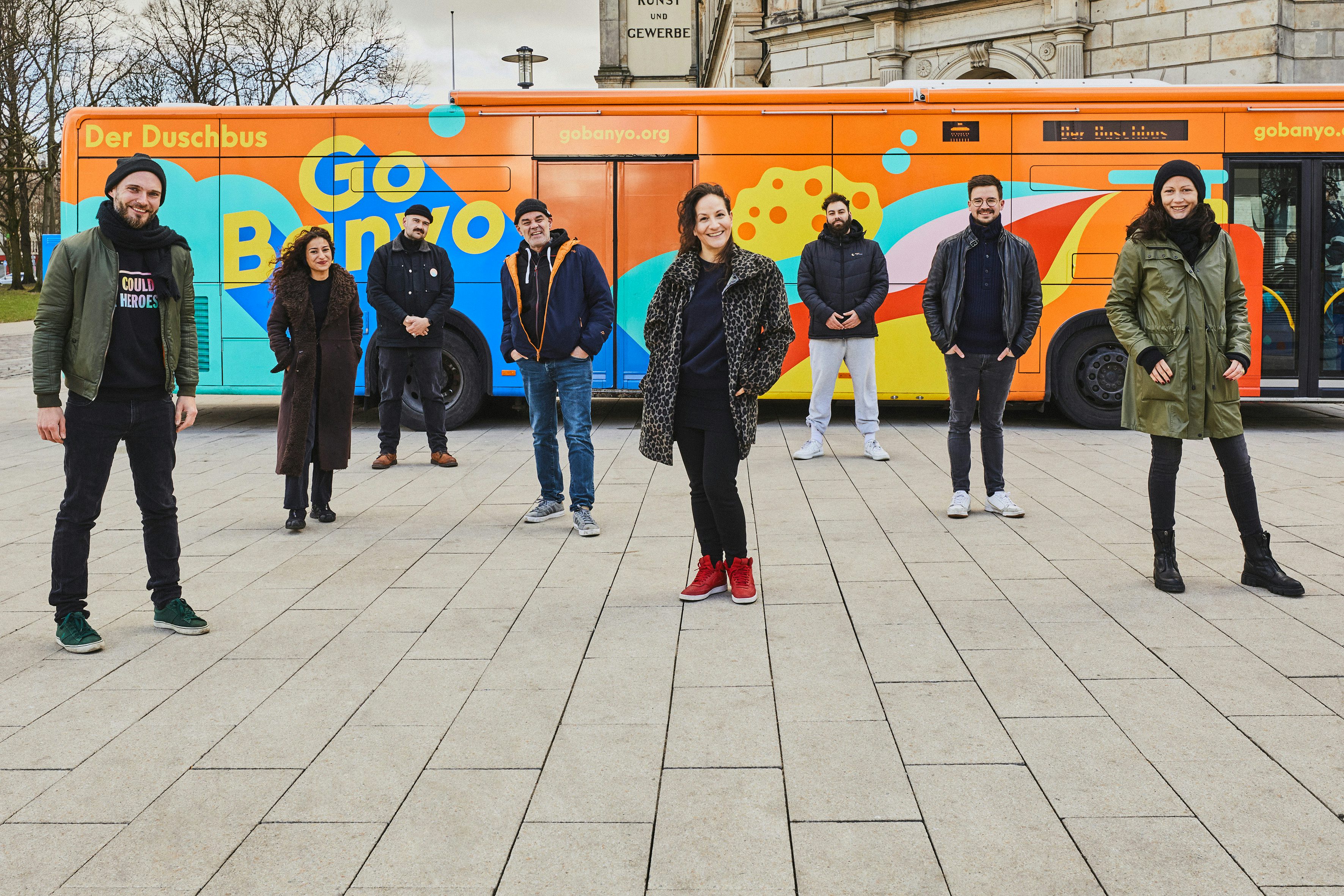 Dominik: Die Idee eines Duschbusses kam von mir, der Name war Gülays Einfall. „Banyo“ ist in einigen europäischen Sprachen das Wort für Badezimmer und das „Go“ spiegelt den mobilen Aspekt unseres Duschbusses. Ein Bus, wie man ihn aus dem öffentlichen Nahverkehr kennt, nur umgebaut, mit drei voll ausgestatteten Badezimmern. Damit er direkt zu den Menschen in der Stadt fahren kann, die Zugang zu Sanitäranlagen brauchen. Es begann mit einem Crowdfunding, bei dem wir unfassbare 168.000 Euro eingenommen haben und so den Umbau finanzieren konnten. Seit Dezember 2019 sind wir nun mit dem ersten Duschbus Deutschlands unterwegs.