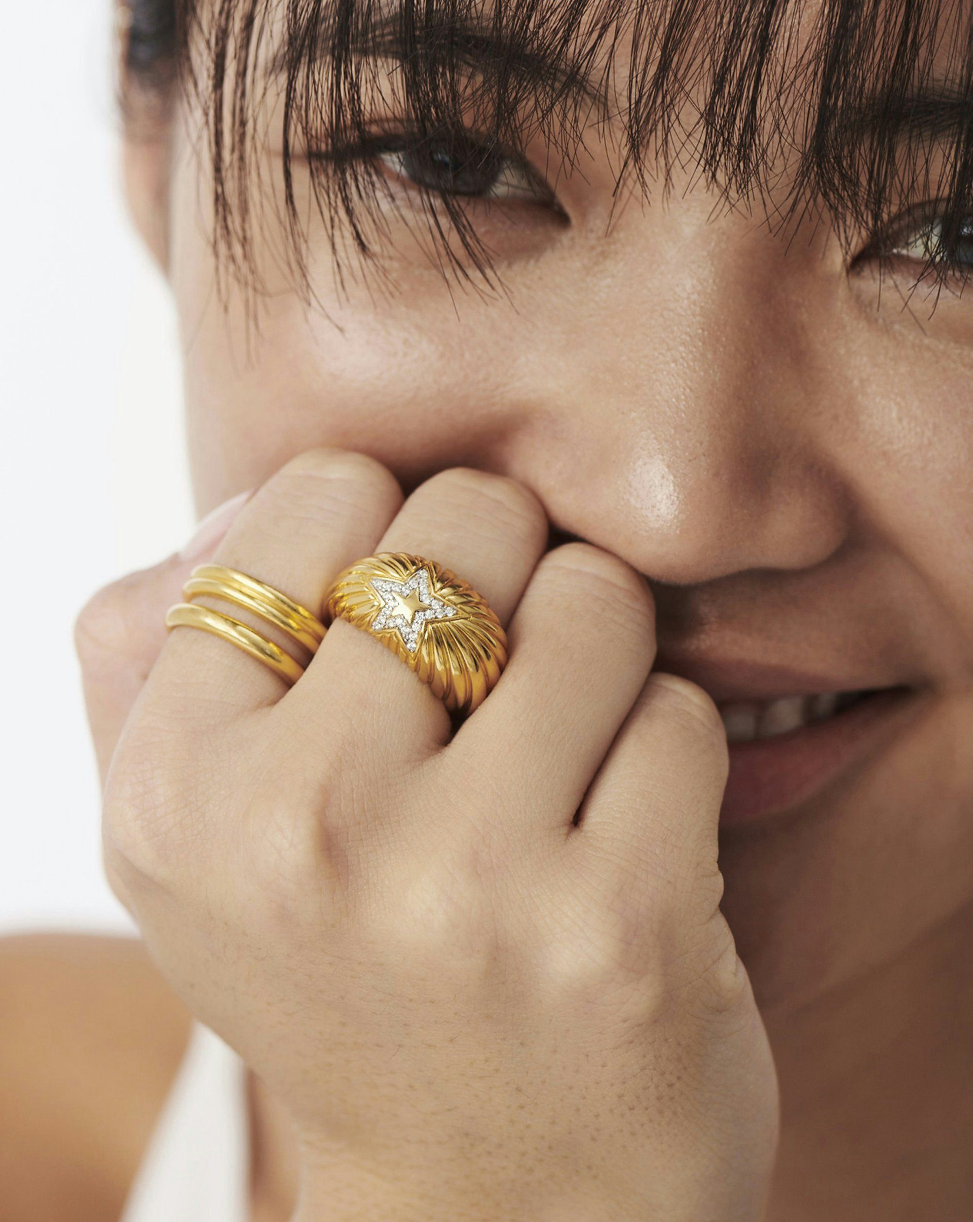 In jedem Geschenkset befinden sich je der Celestial Ridge Pave Star Dome Ring, die Celestial Mini Ridge Star Huggies und die Celestial Star Ridge Pendant Necklace! Das Stern-Design ist nicht nur perfekt für die Weihnachts- und Silvesterzeit, sondern auch, um im restlichen Jahr zu scheinen!