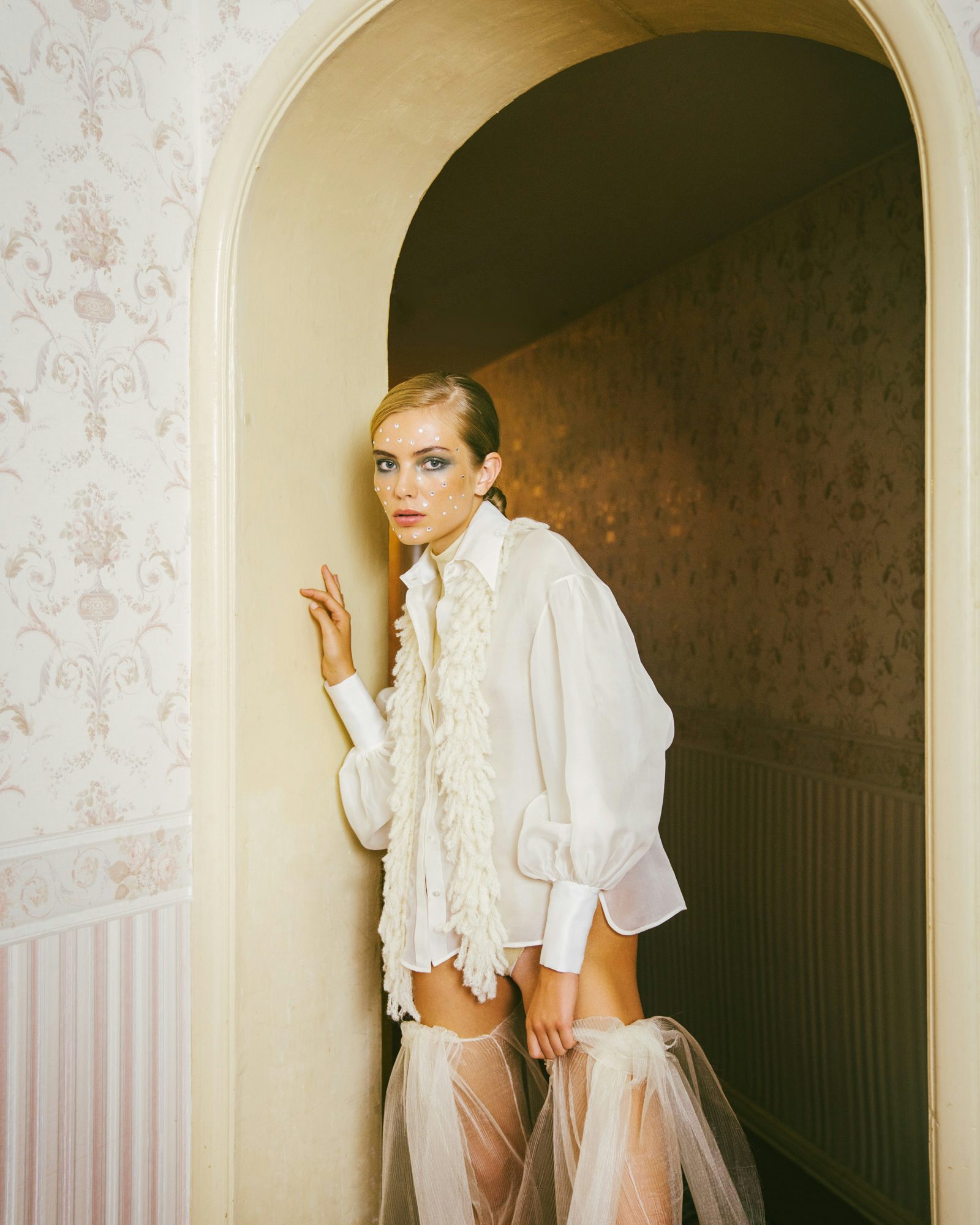 Body: Danny Reinke, Bluse: Greta Boldini, Strümpfe: Falke, Tüll-Stulpen & Pumps: Bajanova