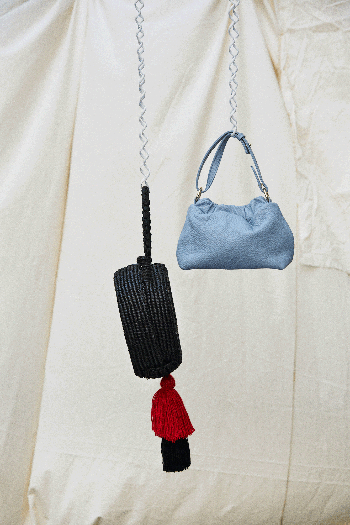 Es ist erstaunlich, aber gerade das XXS-Format der Taschen birgt schier endloses kreatives Potenzial. Während sich bei großen Tote Bags oder Schultertaschen das Designportfolio relativ schnell erschöpft, stehen uns bei kleine Taschen fast alle Türen offen – besonders, was die Tragevarianten angeht. Ob kleine Schlaufen wie bei Hillier Bartley, Jil Sander und The Row, Zugbänder, wie bei Attico und Staud oder feste Griffe und Ringe, wie bei Simon Miller, Mlouye und Jacquemus.