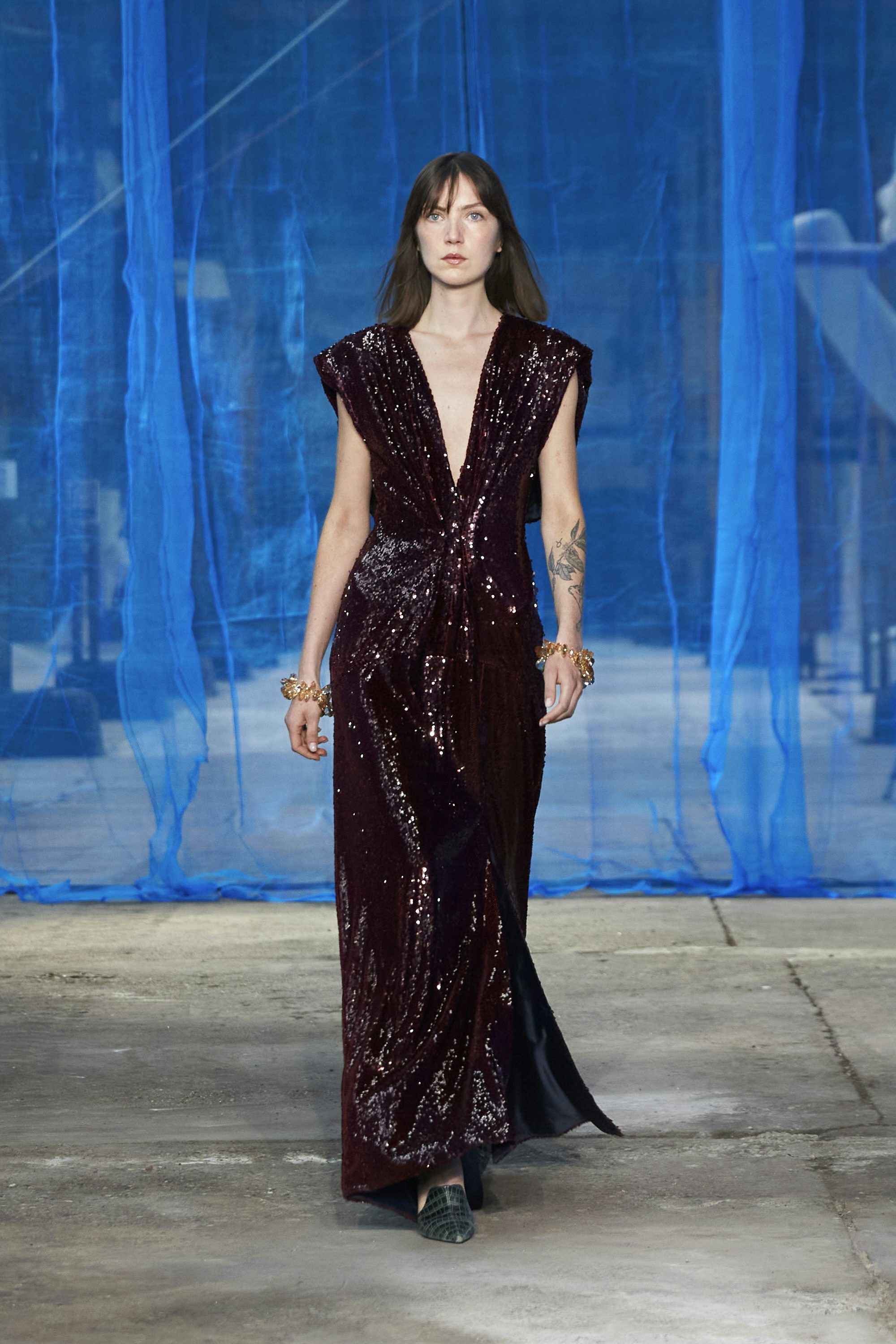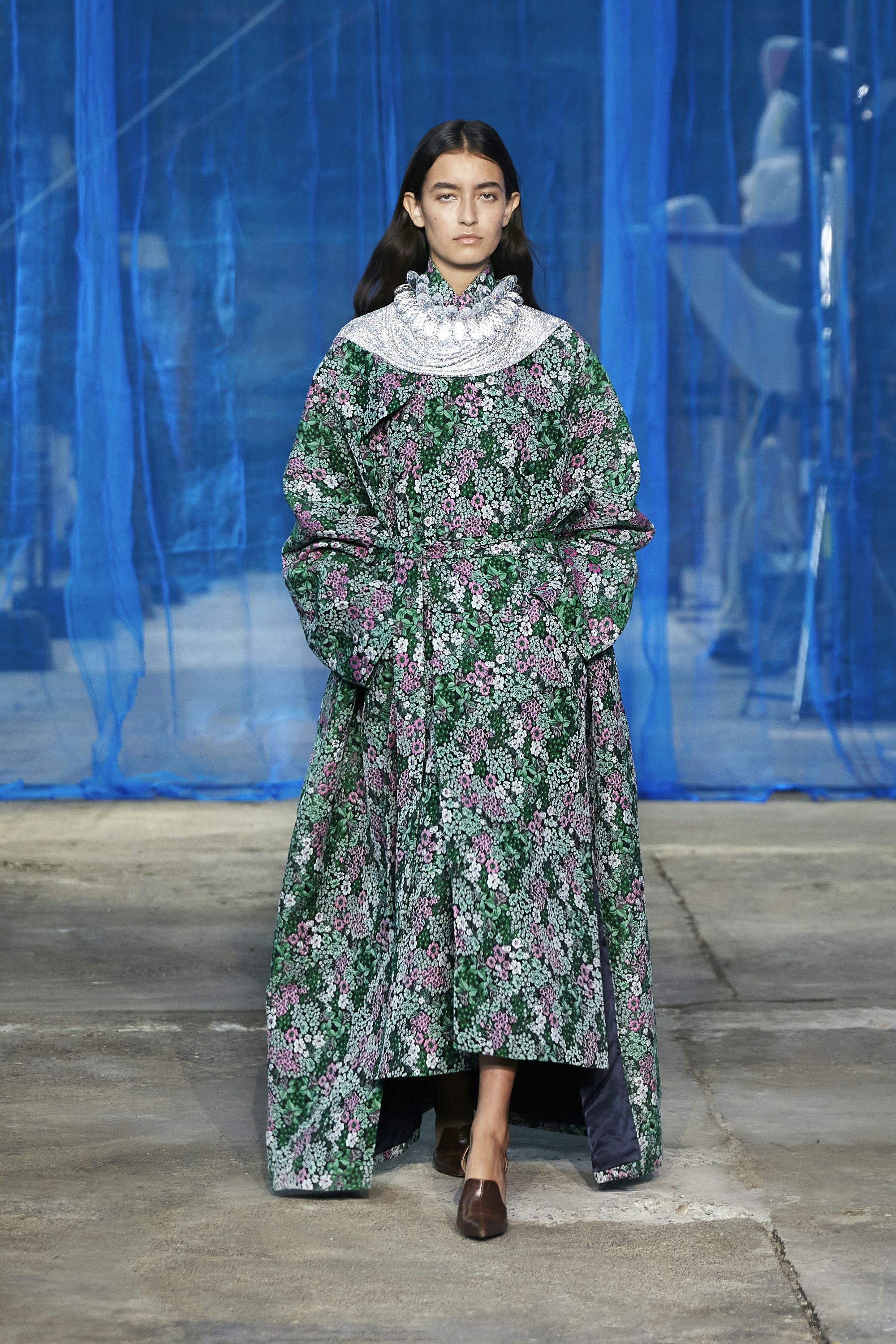 Und William zeigte mal wieder, was er am besten kann: eine zeitlose, elegante und so essenzielle Garderobe, dass jeder aus dem Publikum bei einem Teil dachte: Das muss ich haben! Voluminöse Schnitte trafen auf funkelnden Schmuck und klassisches Tailoring auf exzentrisches Brokat. Ganz sicher ein Bestseller: die ikonischen Fan-Bags in neuen Größen und Mustern.