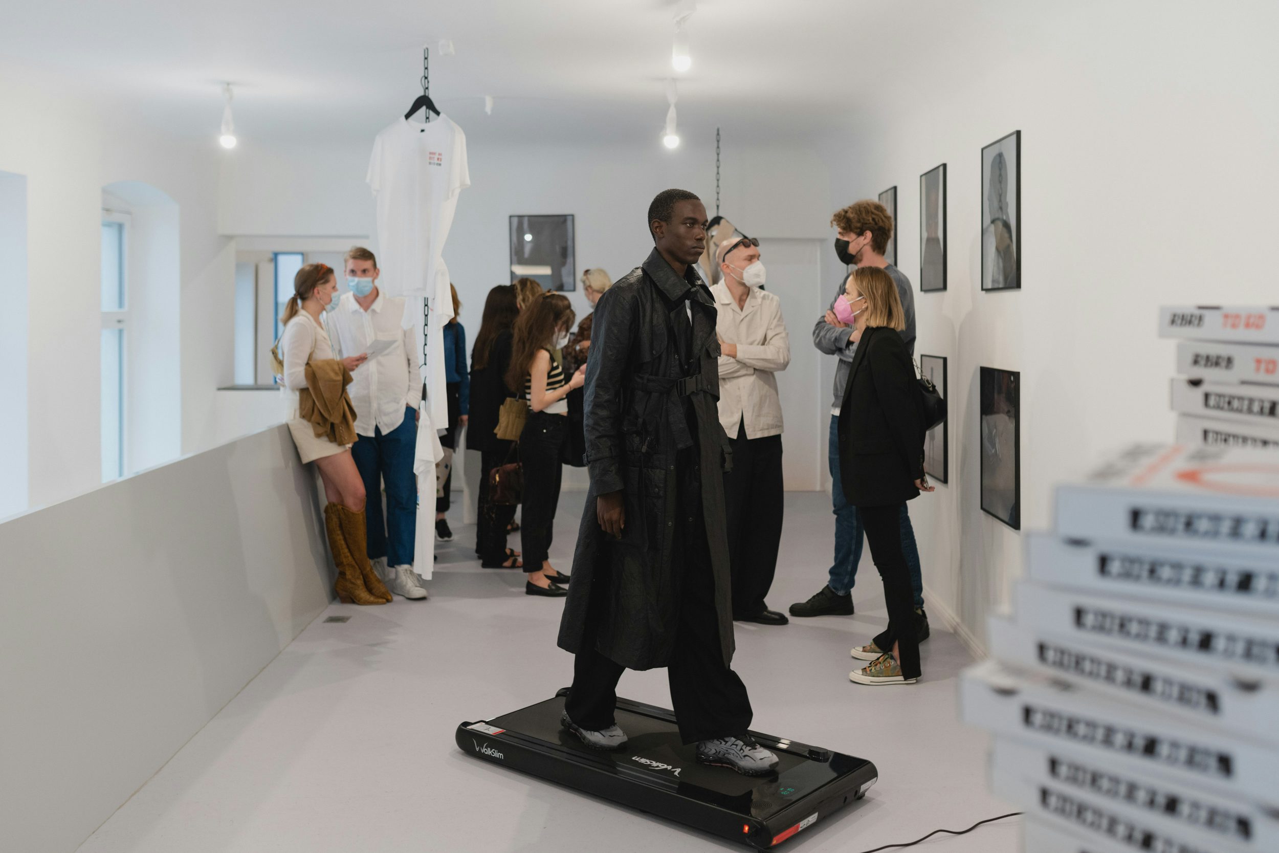Ausgestellt wurden 35 Designer*innen in und aus Deutschland unter dem Motto: „Committed to Responsibility“. Nachhaltigkeit war also der Fokus und das Gefühl hat man nicht nur in der Kuration der Brands, sondern auch der Ausstellung selbst. Die Figurinen hatten unterschiedliche Kleidergrößen und spiegelten mit verschiedenen Grautönen unterschiedliche Hauttöne wider. Mit dabei waren Größen wie William Fan, Horror Vacui, Aeyde, Odeeh, Lala Berlin, Lara Krude und Rianna + Nina, aber man konnte auch kleinere Brands wie Anna Auras, Diehm Bespoke, Société Angelique und Working Title Studios begutachten und dadurch besser kennenlernen.