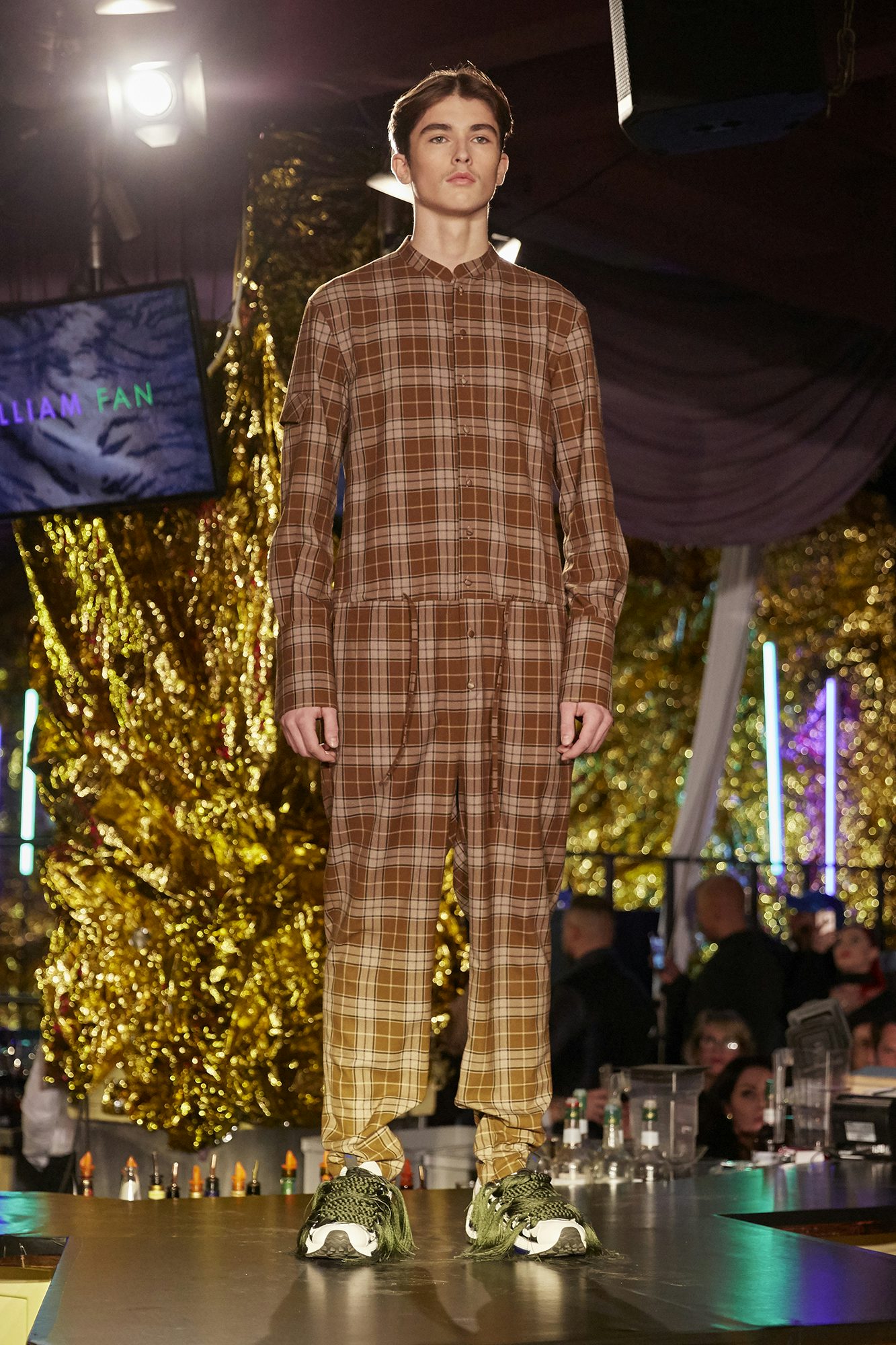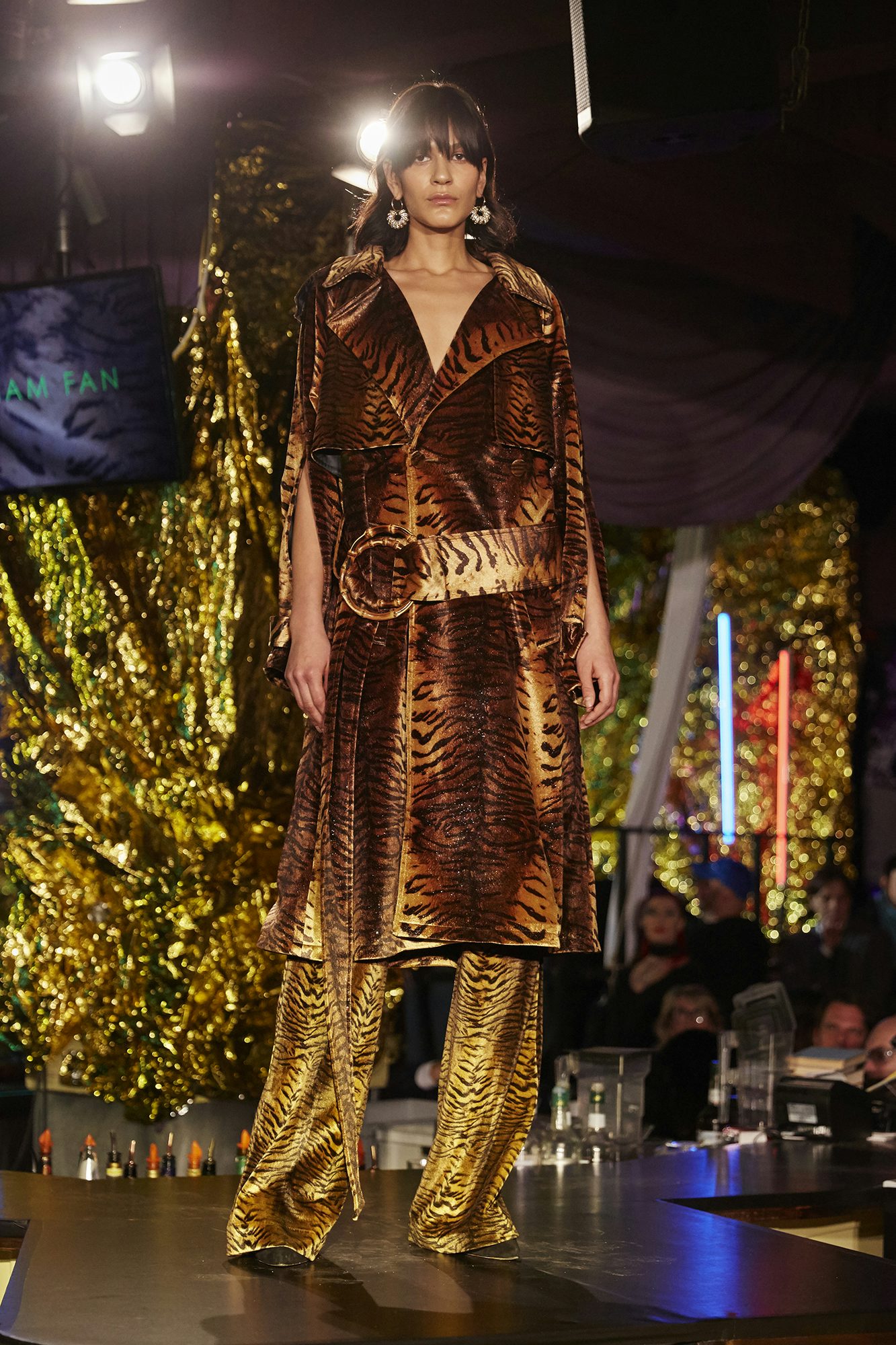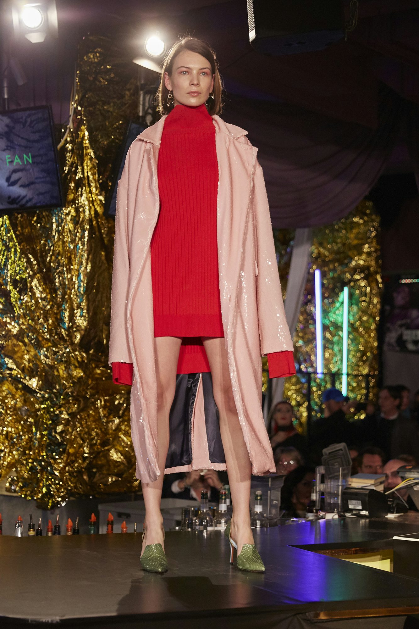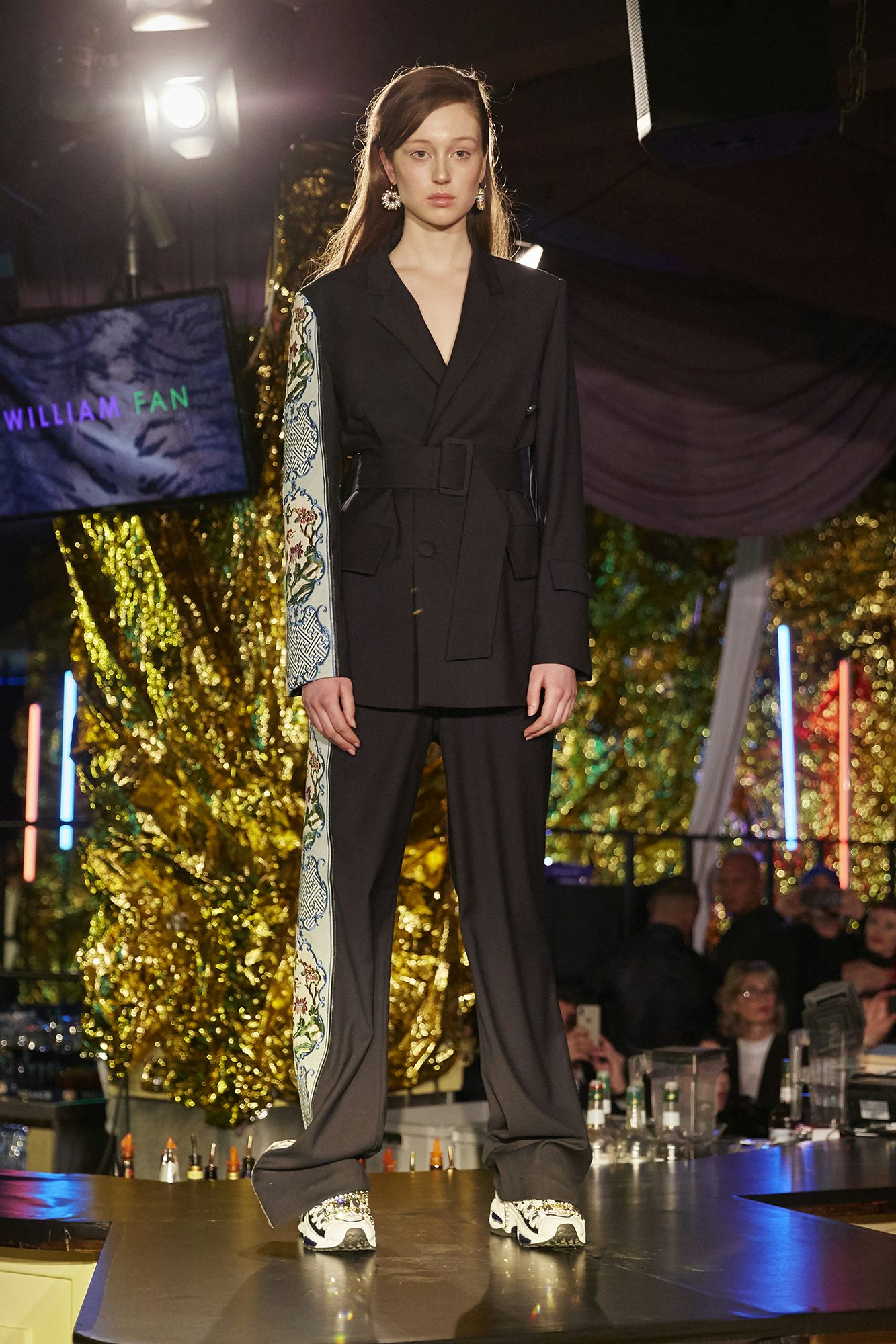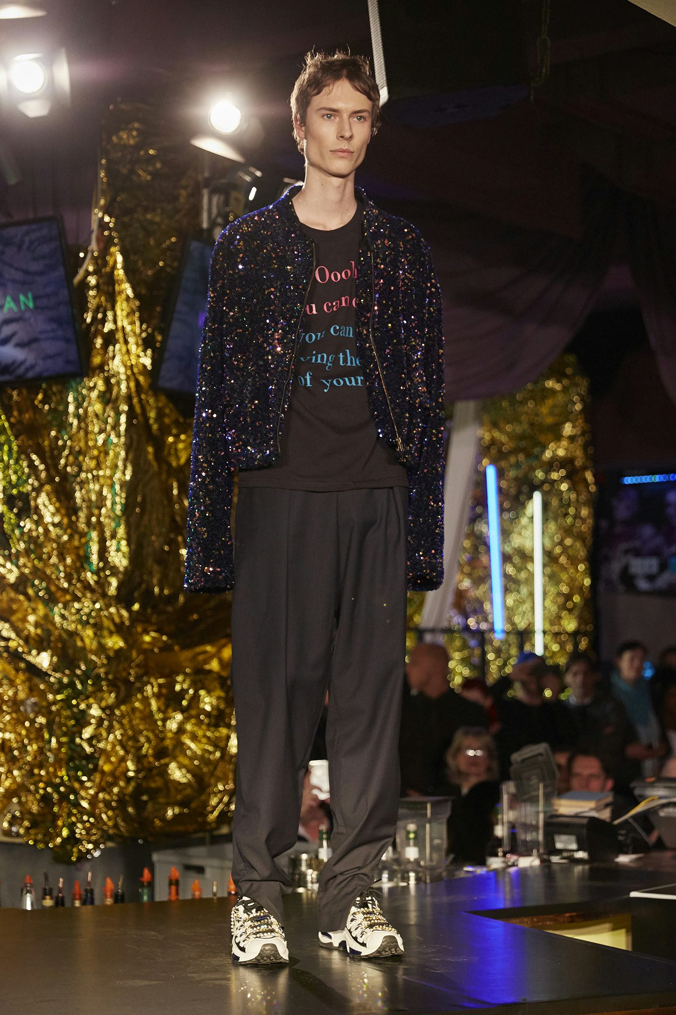 Ich möchte jetzt nicht sagen, dass man auf der rechten Spur immer am sichersten fährt. Schön konstant mit 120 Km/h, keine wilden Überholmanöver und mit eingeschaltetem Tempomat. Es fällt jedoch auf, dass die Designer*innen, die eine konsequente Strategie verfolgen und darauf Wert legen, dass ihre Mode nicht nur tragbar, sondern auch verlässlich ist, vor allem in Berlin die größten (und längsten) Erfolge feiern. Da wären zum Beispiel Malaikaraiss und William Fan, die seit vielen Saisons schon mit unaufgeregten, aber technisch und modisch ausgefuchsten Schnitten und Designs überzeugen – im Übrigen nicht nur die Gäste, sondern auch die Einkäufer*innen. Und darauf kommt es am Ende an. Beide haben zudem den Mut, auch mal unkonventionell zu werden, wenn es um die Präsentation der eigenen Mode geht. So lud William Fan seine Gäste dieses Mal unter dem Motto „It's Your Time to Shine“ in die Karaoke-Bar Knutschfleck am Alexanderplatz und ließ die Models forsch über den Tresen laufend seine neuen Entwürfe präsentieren.