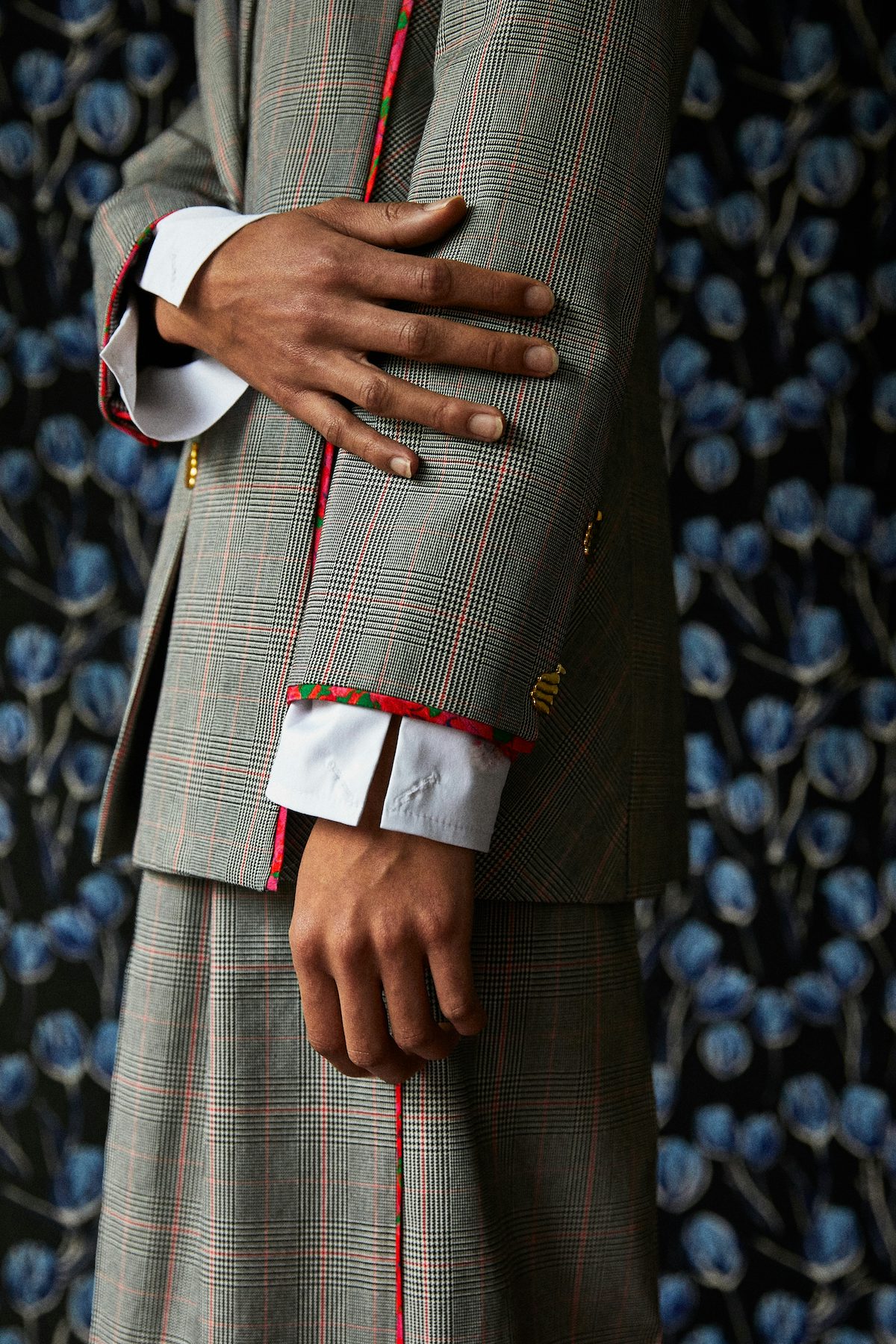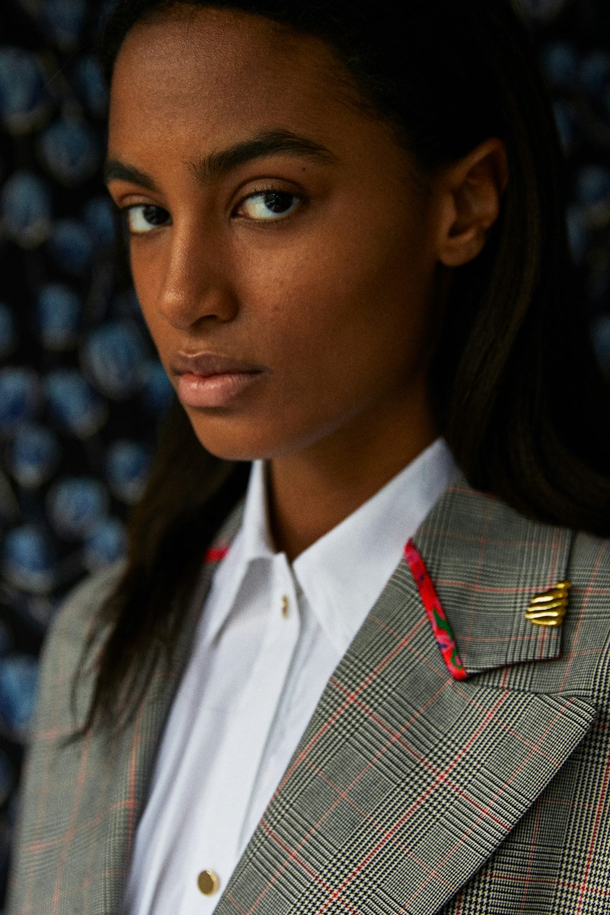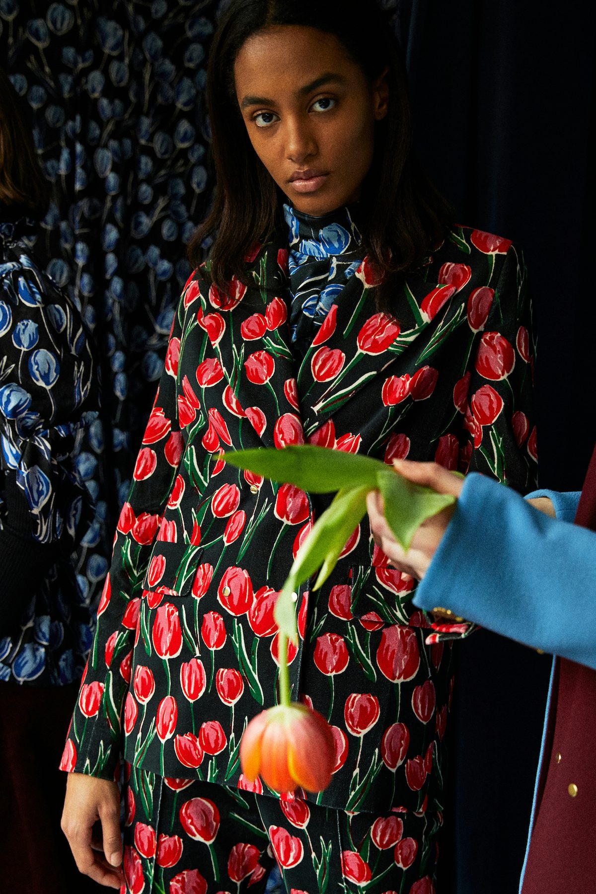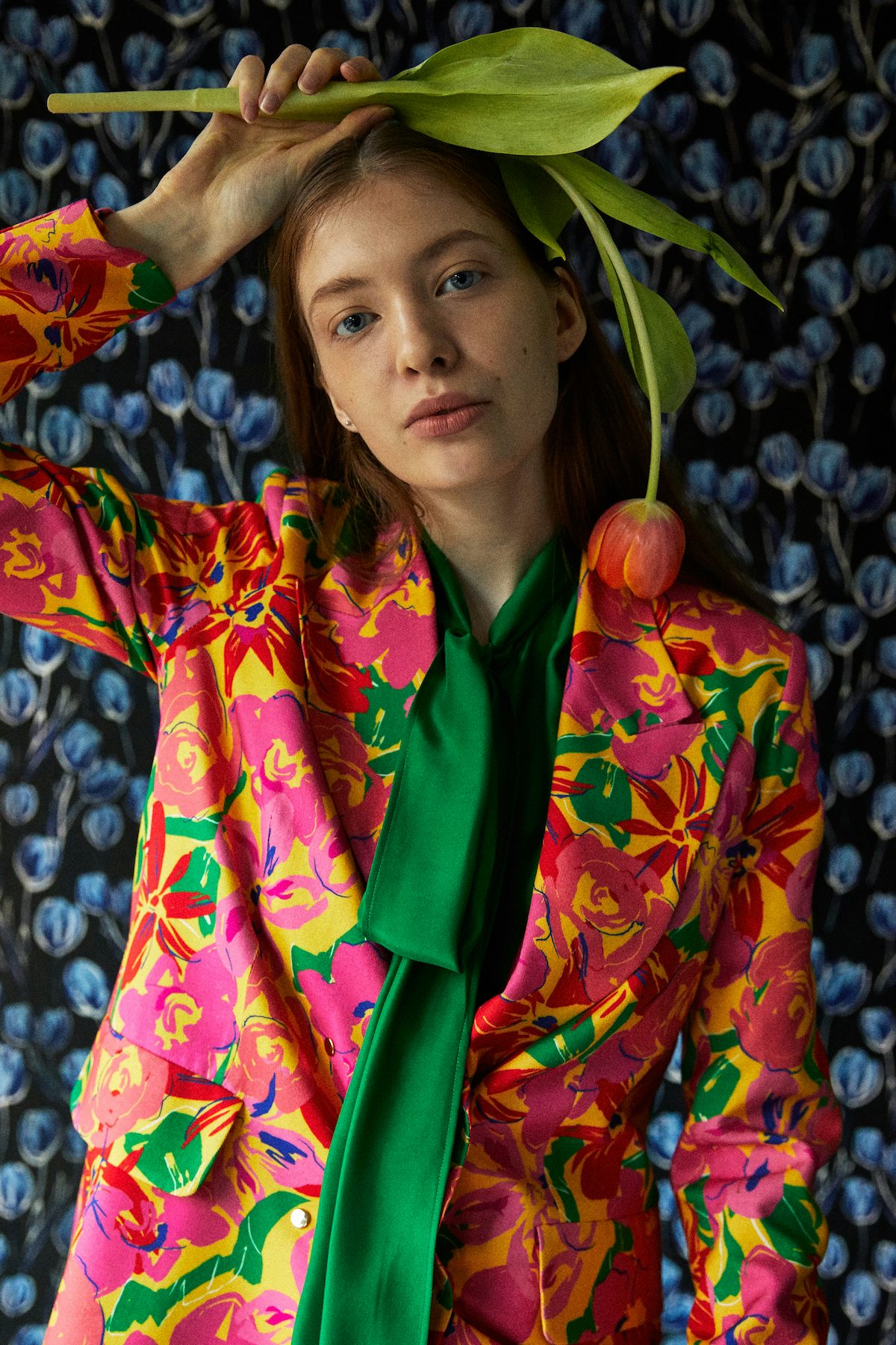 Blumen müssen überhaupt nicht prüde wirken, aber ja, sie können es. Ich versuche immer Prints zu designen, die niemals mit „Bad Taste“ in Verbindung gebracht werden können, wie z.B. helle und knallige Prints. Bei der Spring/Summer 2020 Kollektion habe ich im Vergleich zu sonst sehr kleine, feine Prints verwendet, aber es funktioniert, weil das Muster einfach schmeichelhaft ist. Aber ich bin der festen Überzeugung, dass man beim Styling von Blumenprints mit starken Kontrasten wie maskulinen Hemden und Blazern kombinieren muss, niemals mit einem prüden Pumps.