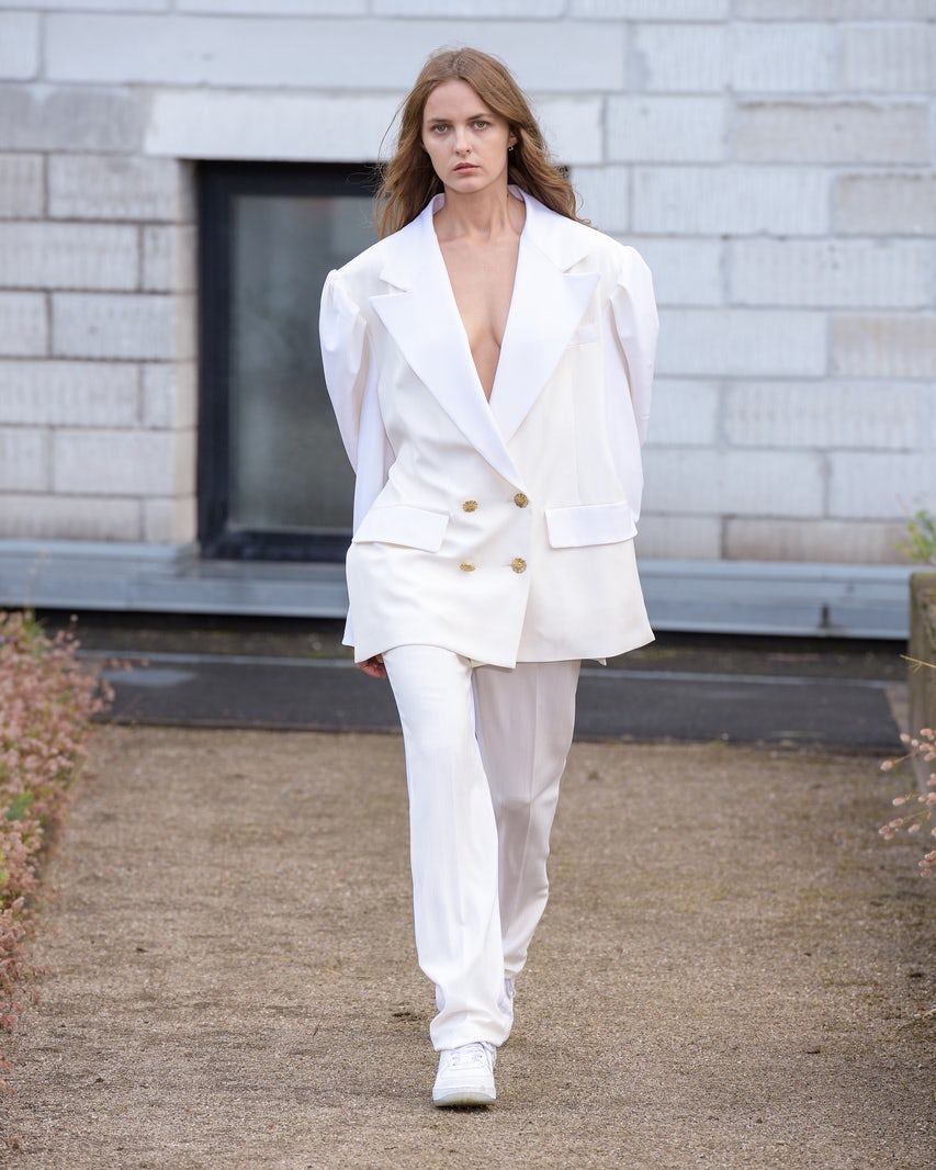 Ich habe fast ein Jahrzehnt nur in der Frauenmode gearbeitet, da war das eine ganz klare Entscheidung für mich und mein eigenes Brand. Ich denke jedoch, dass viele unserer Designs auch unisex sein können, wie zum Beispiel unsere Blazer und Jacken. Wir betonen das auch in unserer Show, denn obwohl wir ja eigentlich nur Womenswear machen, zeigen wir unsere Mode an männlichen und weiblichen Models.