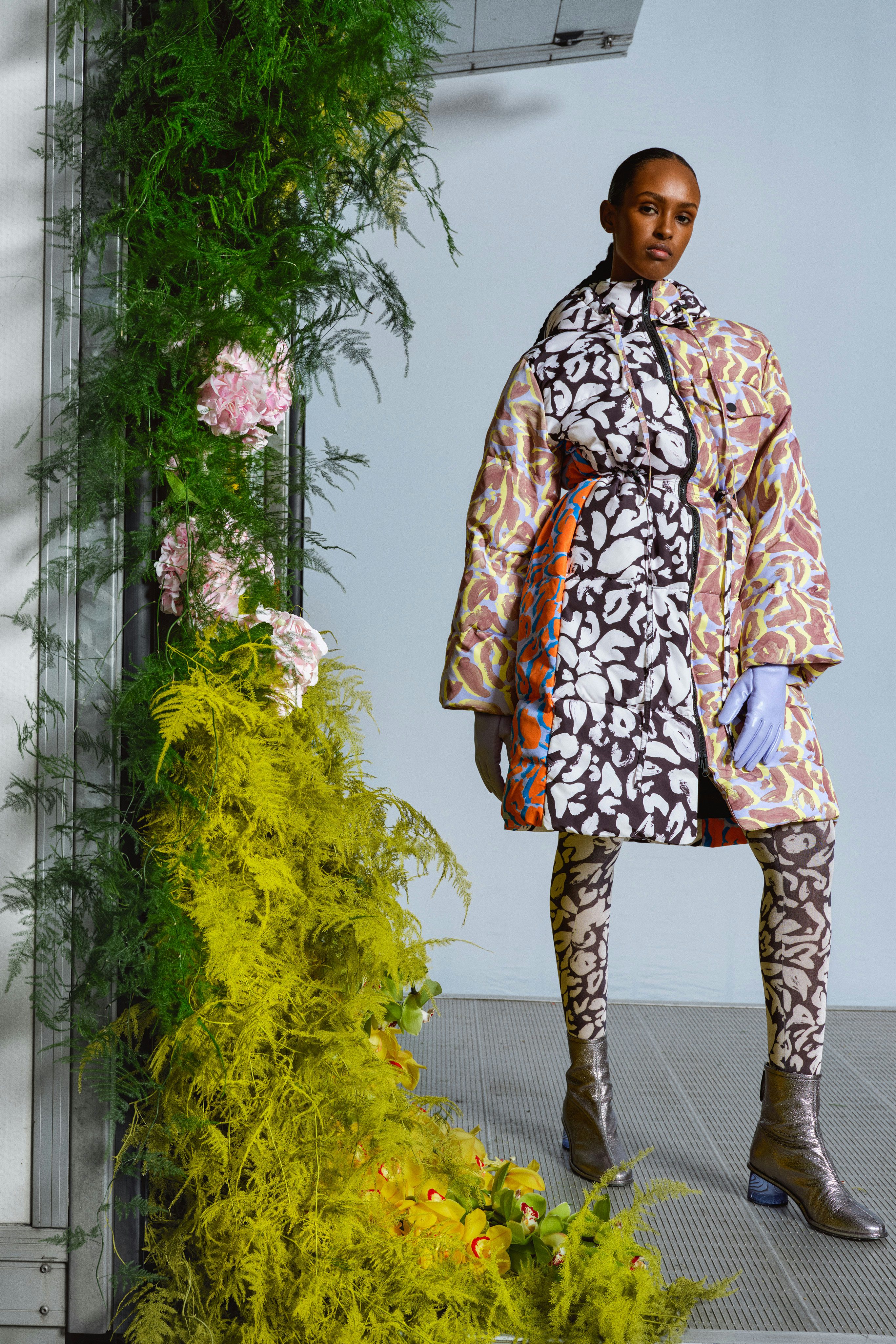 Meine Highlights der Kollektion: das zart violette Ensemble aus glänzendem Satin, Color-Blocking mit Mohnblumen-Print und der wild gemusterte Anorak, der jedem Wintermuffel die schlechte Laune austreibt