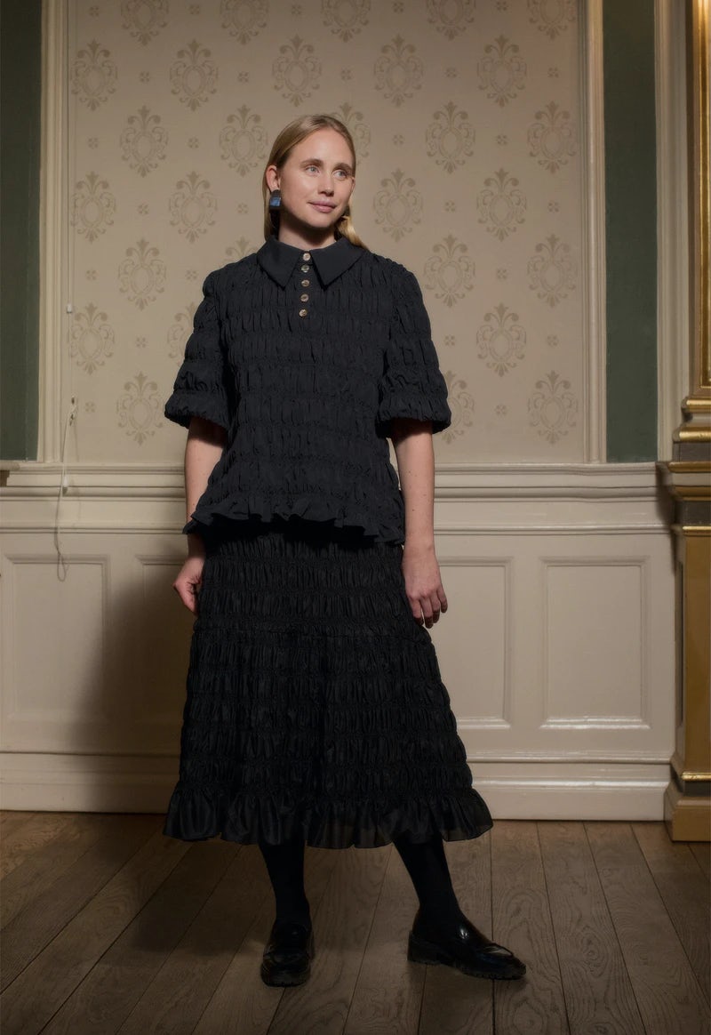 Wer Nynne noch nicht kennt, der sollte sich den Namen des dänischen Labels ganz groß ins Notizheft schreiben und nicht mehr vergessen. Nynne, das ist der Vorname der Gründerin, Nynne Kunde. Gleich nach ihrem Abschluss 2018 wurde sie mit ihrer ersten Kollektion als „Womenswear Designer of the Year“ ausgezeichnet und das absolut zu recht. Mit ihrer Mode vereint sie Handwerkskunst, starke Silhouetten und nordischen Pragmatismus.