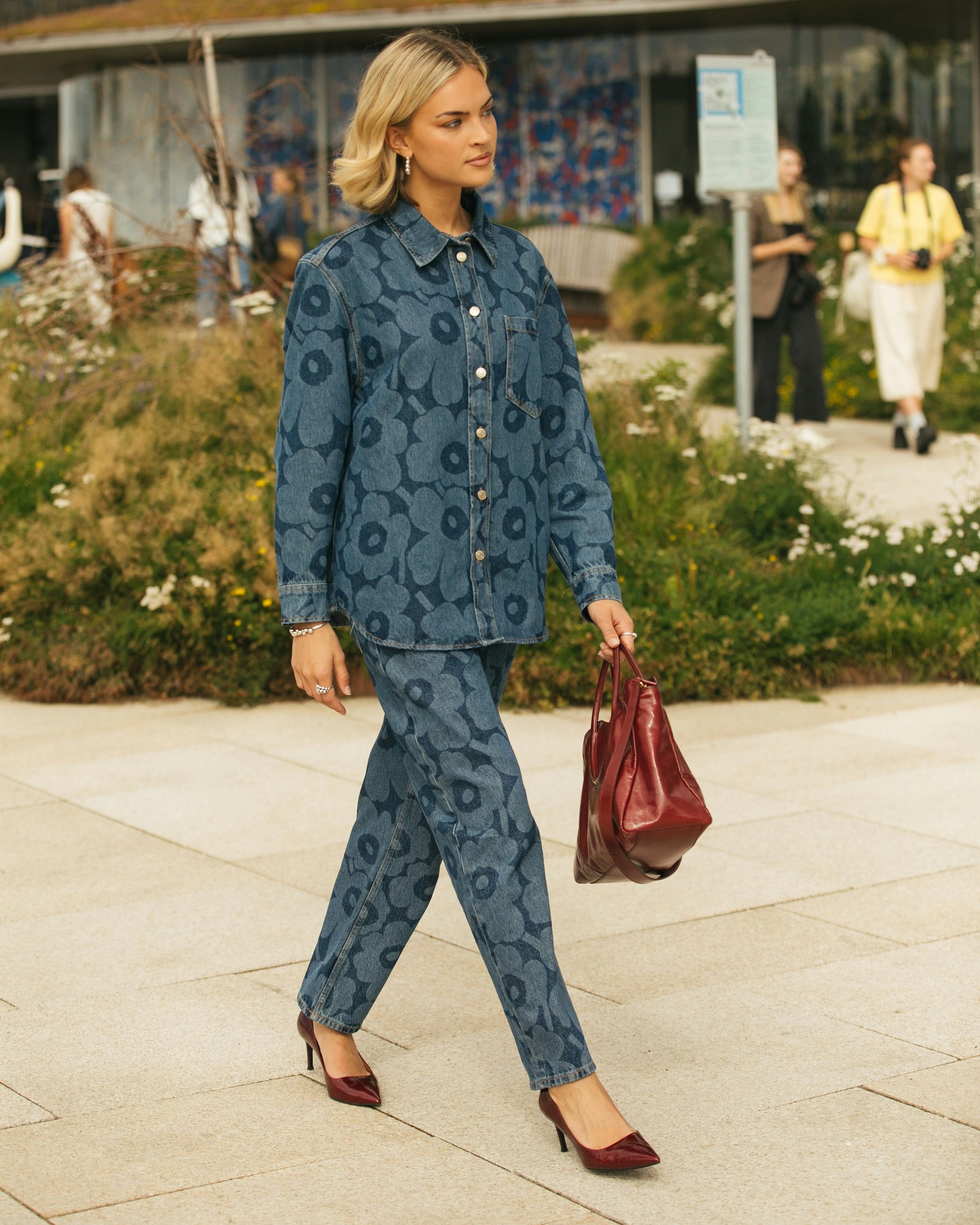 Es gab eine Jeans, die man überall in Kopenhagen sah – und das nicht nur in der Front Row bei der Show des Brands. Marimekko launchte während der Fashion Week ihre lang ersehnte Denim-Kollektion – und die Jeans wurde sofort zum meist getragenen Piece der Streetstyles. Ob als Allover-Look mit bordeauxfarbenen Accessoires, im Mustermix mit karierter Bluse oder unter einem rosa Hemdkleid, es scheint endlos viele Kombinationsmöglichkeiten zu geben. Schnell sein ist hier angesagt, denn sie ist bereits fast ausverkauft!