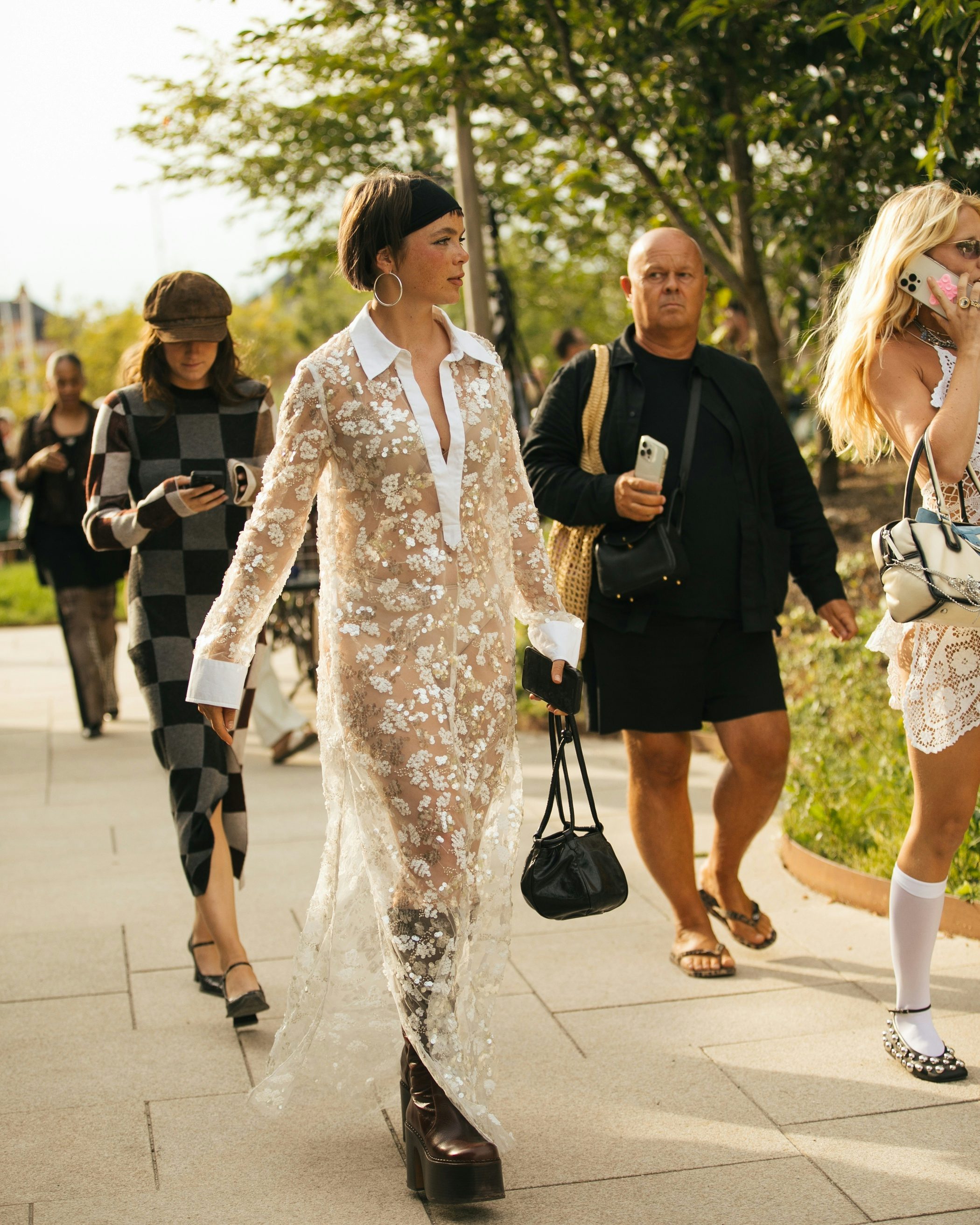 Was aber neu an diesem Trend ist, ist, dass man ihn seit dem letzten Sommer auch wirklich getragen auf den Straßen dieser Welt sieht. Den Beweis dafür liefern die Streetstyles aus Kopenhagen. Alles, was man braucht, ist einen schicken Schlüppi, den man der Wält präsentieren möchte. Die Light-Variante des transparenten Trends trägt Francesca Saffari mit ihrer Bluse über der Jeans. Abisola Omole trägt den See-through-Rock zum lässigen Tank, Amaka Hamelijnck hat Glück, dass die Bestickungen ihres hellblauen Kleids clever platziert sind.