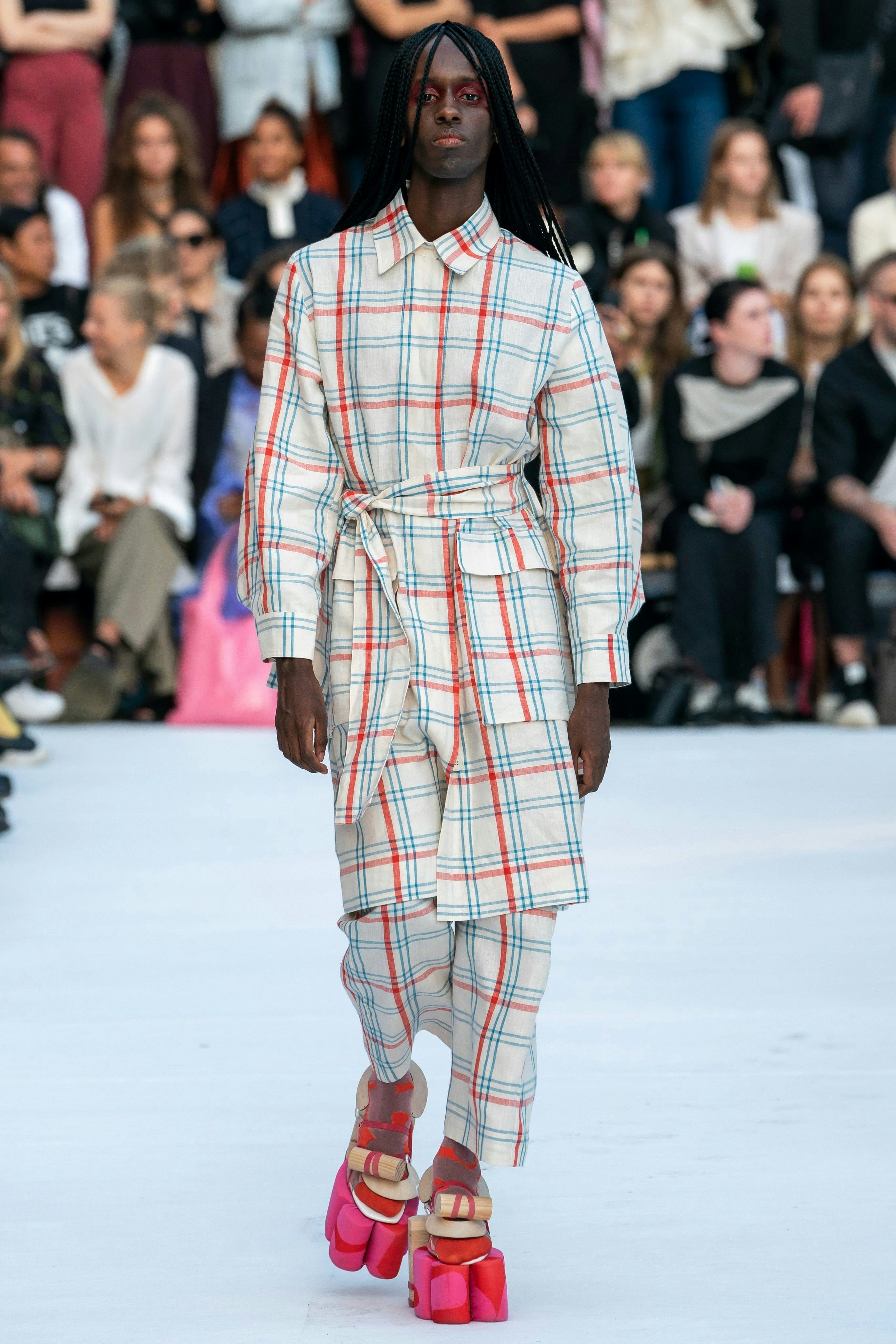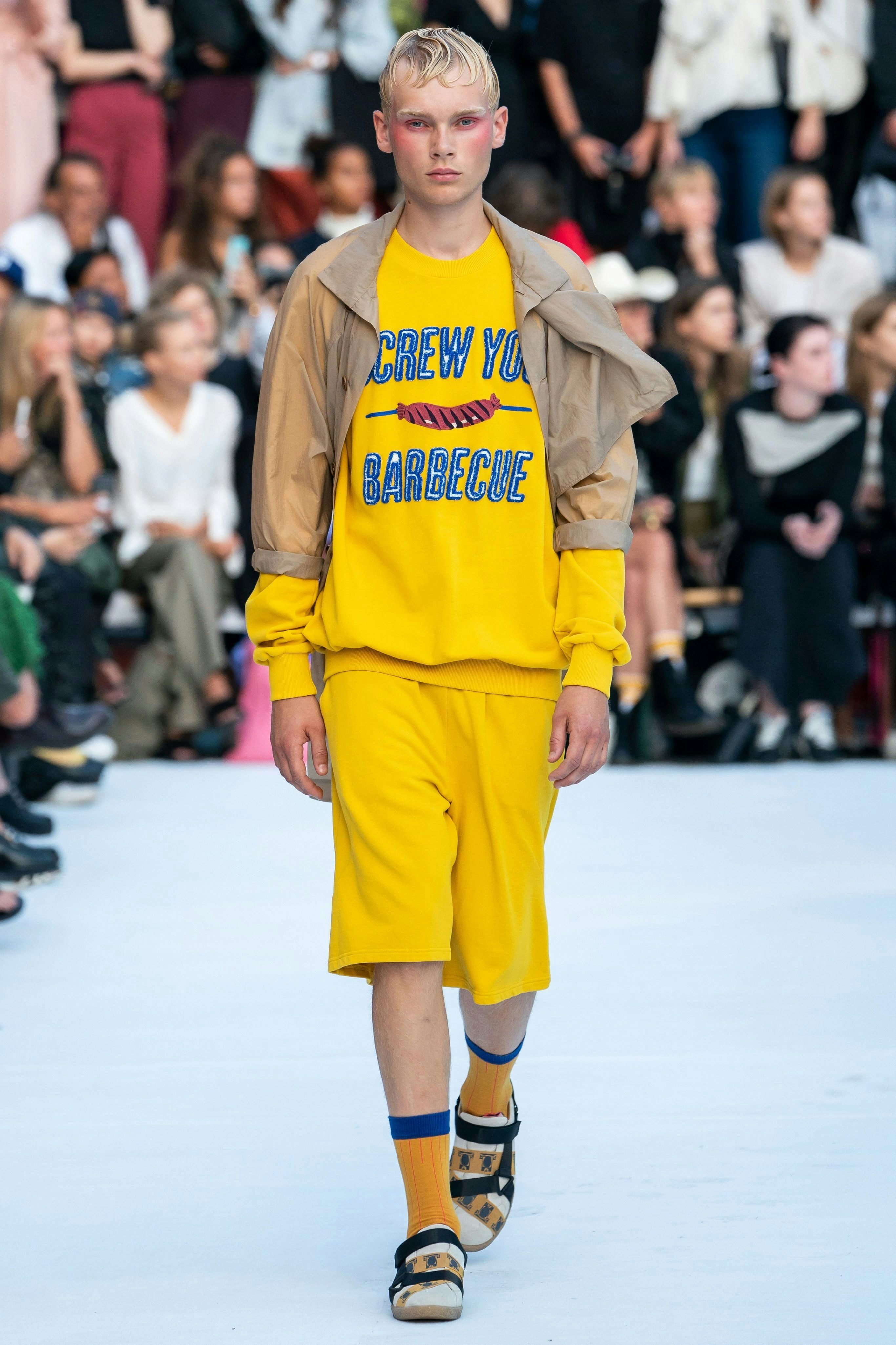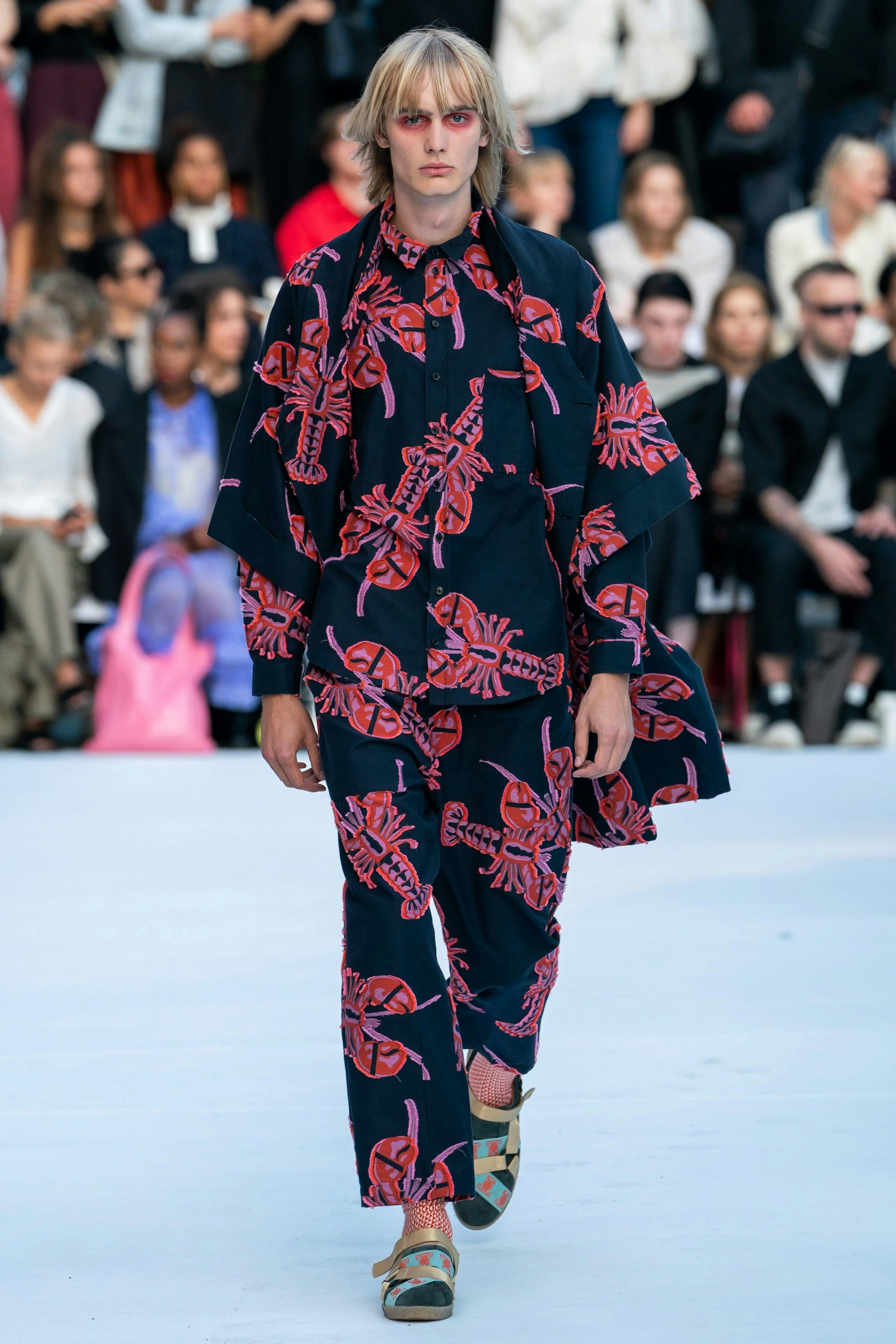 Hendrik Vibskov macht neben toller unisex Mode vor allem eines: Spaß! Und das ohne Pause und auch ohne Kompromisse seit fast 20 Jahren. Die SS20 Kollektion erinnert mich ein wenig an einen Strandausflug auf LSD. Kopfbedeckungen, die an Hummer erinnern, psychedelische Sonnenuntergänge über dem Meereshorizont und gekonnter Wet-Look. Diese drei Looks würde ich dem sicherlich nervenaufreibenden Trip dann allerdings vorziehen, ja.