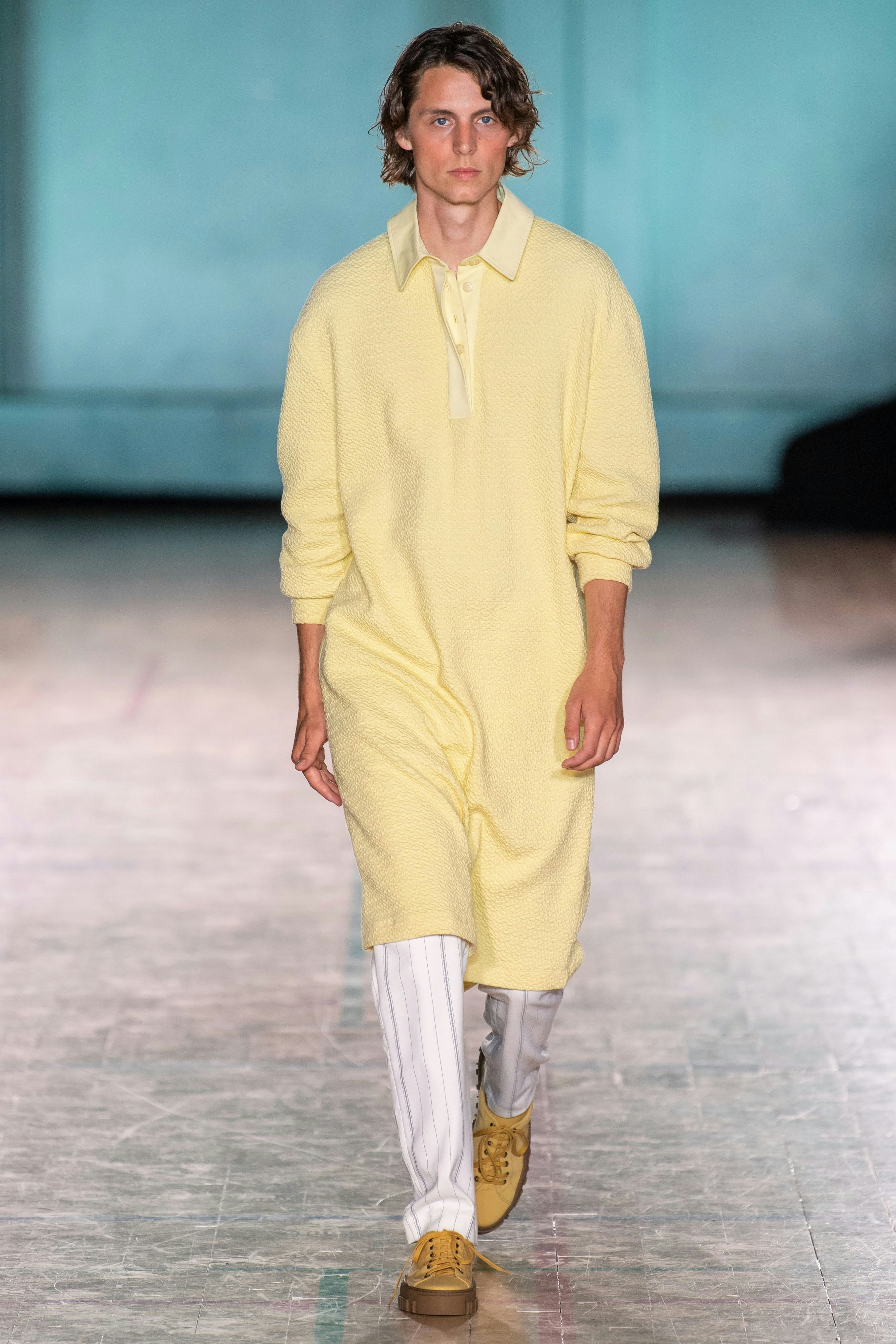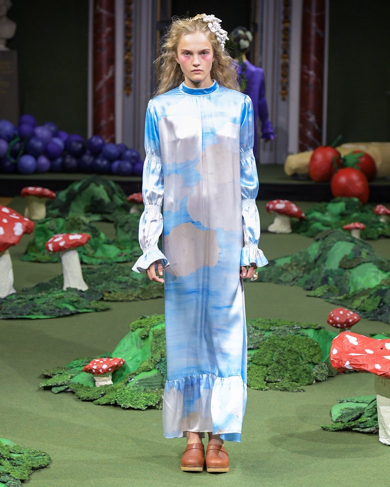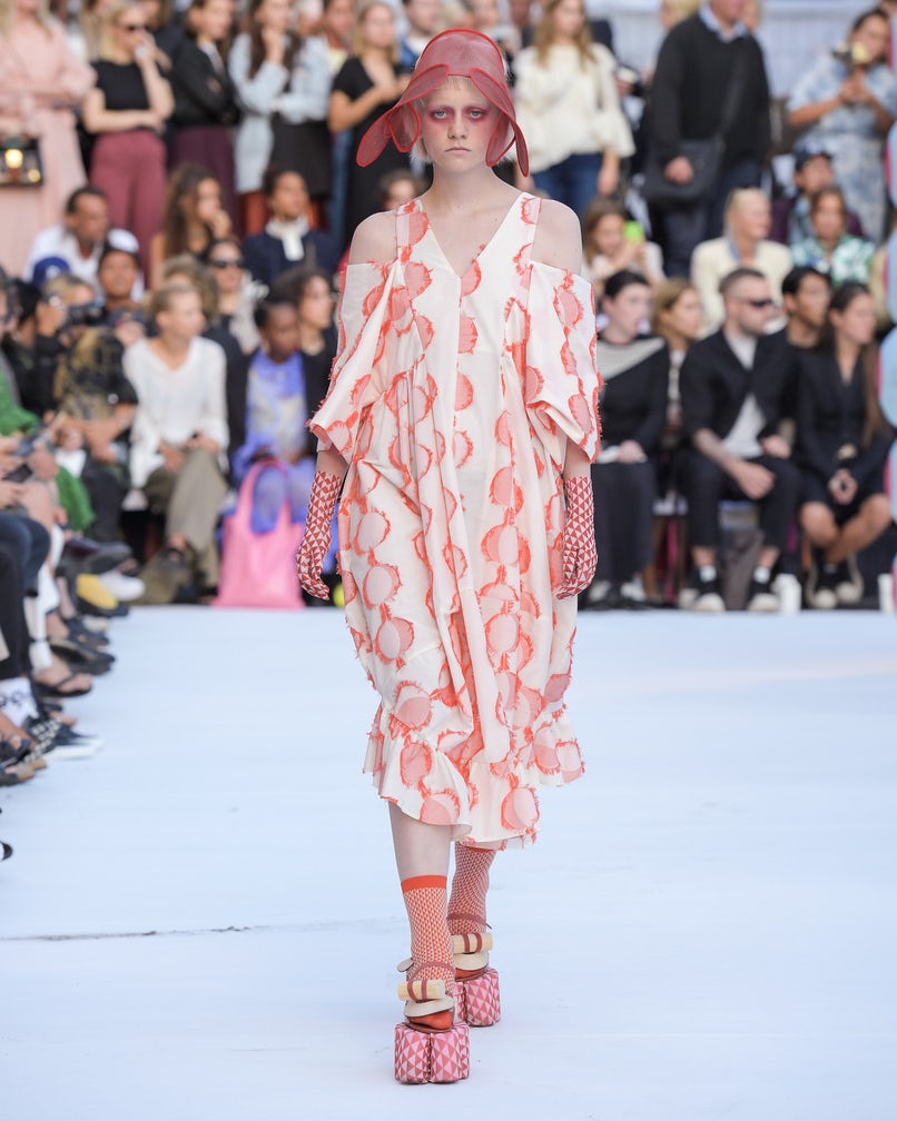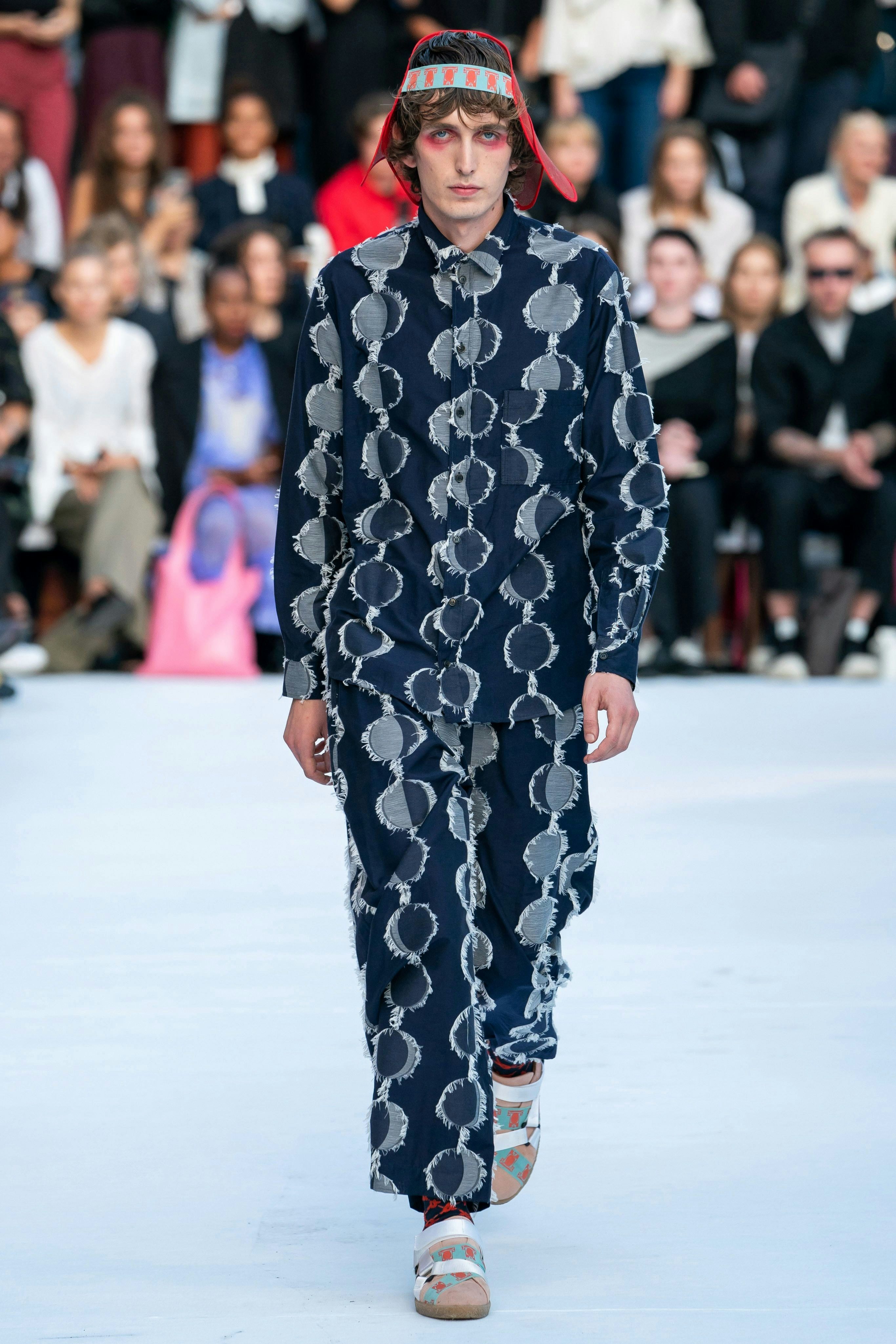 Hendrik Vibskov macht neben toller unisex Mode vor allem eines: Spaß! Und das ohne Pause und auch ohne Kompromisse seit fast 20 Jahren. Die SS20 Kollektion erinnert mich ein wenig an einen Strandausflug auf LSD. Kopfbedeckungen, die an Hummer erinnern, psychedelische Sonnenuntergänge über dem Meereshorizont und gekonnter Wet-Look. Diese drei Looks würde ich dem sicherlich nervenaufreibenden Trip dann allerdings vorziehen, ja.