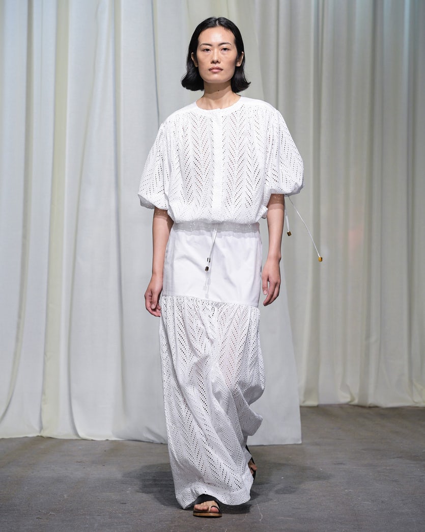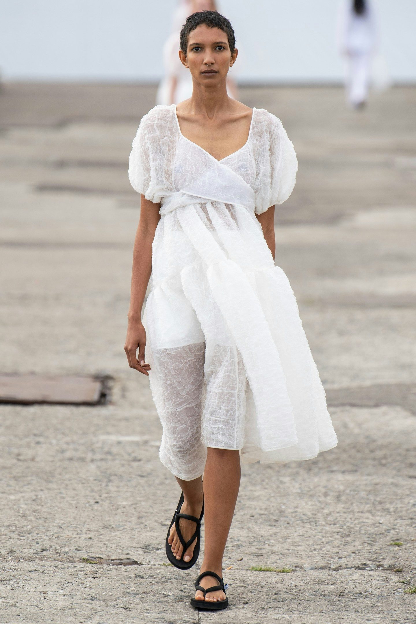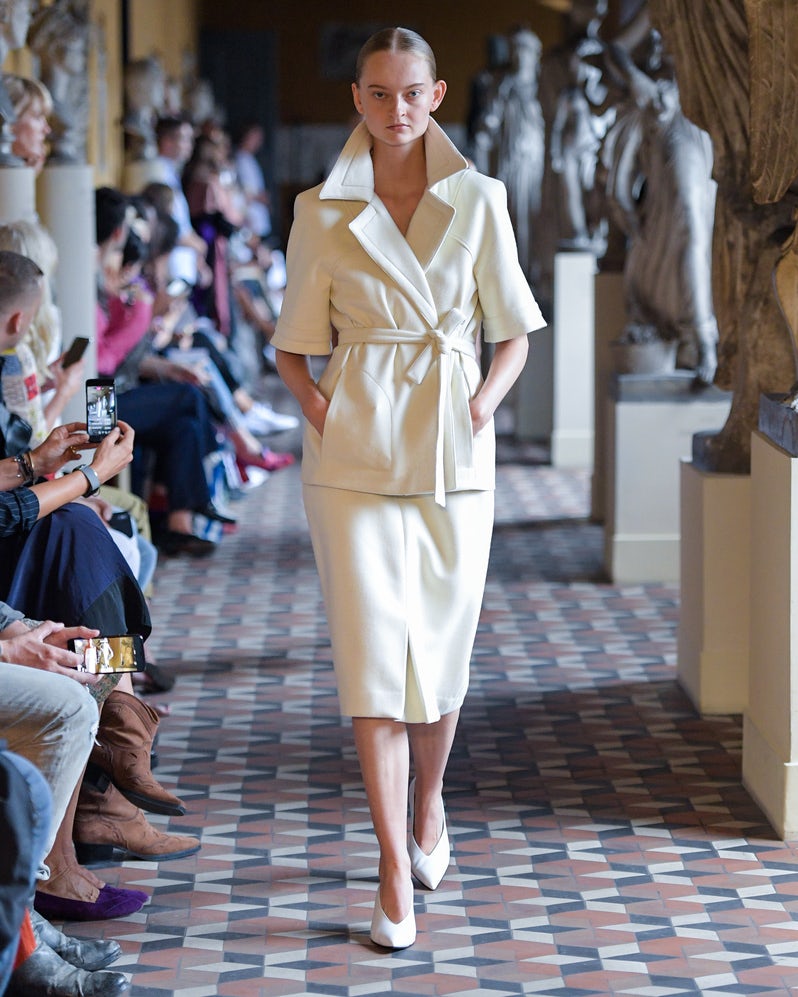 Hach, Cecilie Bahnsen. So nah und doch so fern … zumindest, was mein Budget angeht. Aber träumen ist erlaubt, und diesen Zustand habe ich während der kompletten Kollektionspräsentation nicht verlassen. Watteweiche Kleiderträume treffen für SS20 auf ausdrucksstarkes Tailoring. Und niemals habe ich den Powerlook so romantisch, dabei aber nicht weich oder mit gezogenen Zähnen erlebt. Wie ihr mich nächsten Sommer sehen werdet? Ganz in weiß / schwarz, mit sportlichen Zehensandalen, klar!