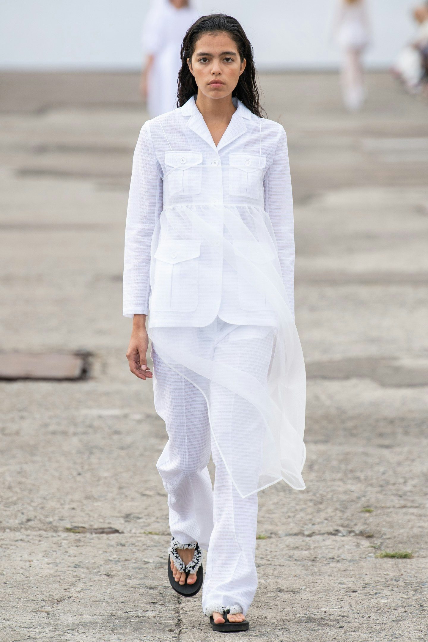 Brøgger ist Power, das wisst ihr seit unserem Interview. Der Blazer ist das Heropiece des dänischen Labels und gibt sich in vielen Varianten die Ehre für SS20. Warum nicht auch mal einfach in XXXXXXL – da passt sogar der Calmund rein. Gebrochen werden die betonten Schultern dann durch radikale Raffungen, die sogar Blumenprints das Prädikat „süß“ entreißen. Immer mit dabei? Das transparente Trägerkleid und ich wäre für jede spontane Cocktailparty gewappnet. Mitgedacht, liebe Julie!