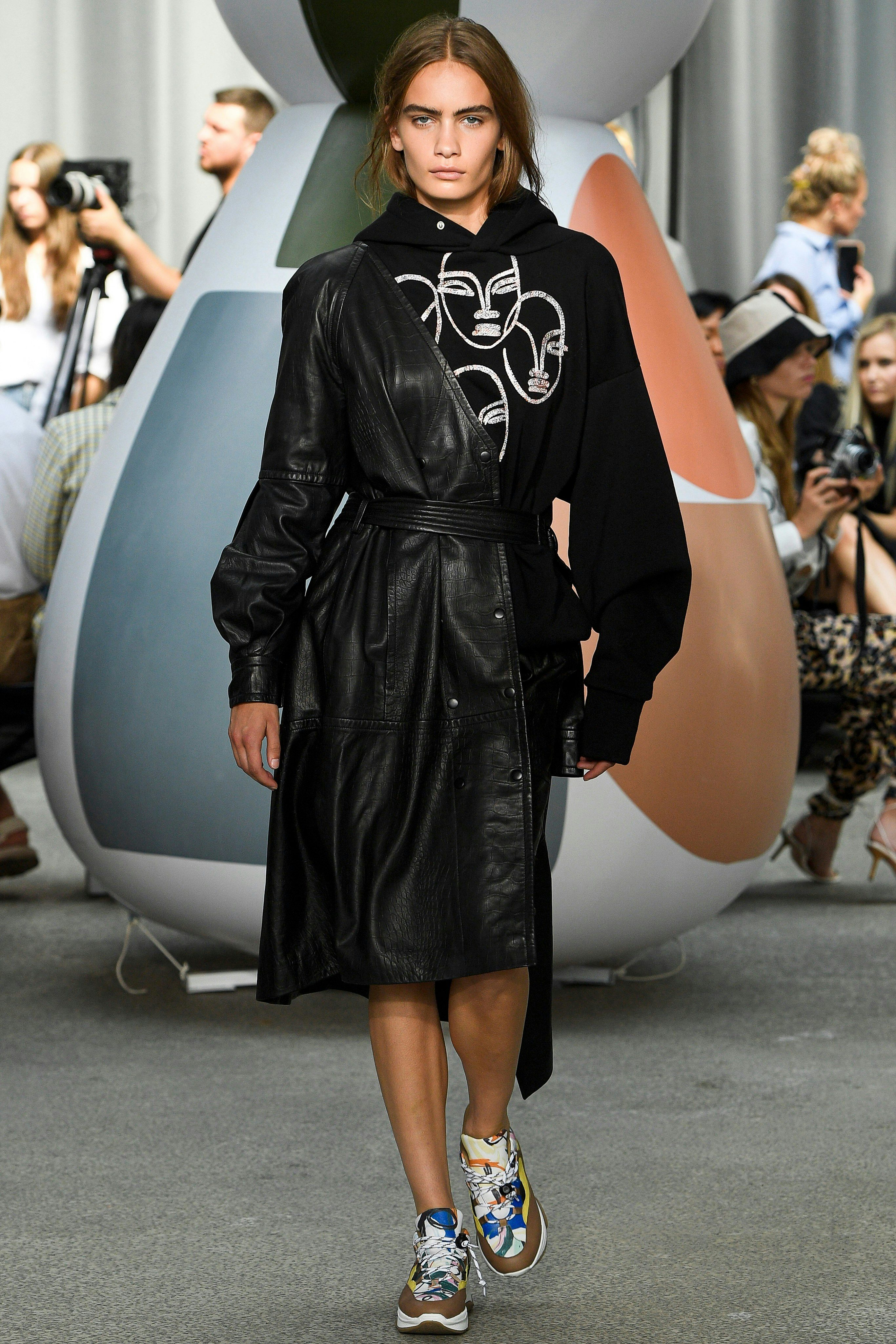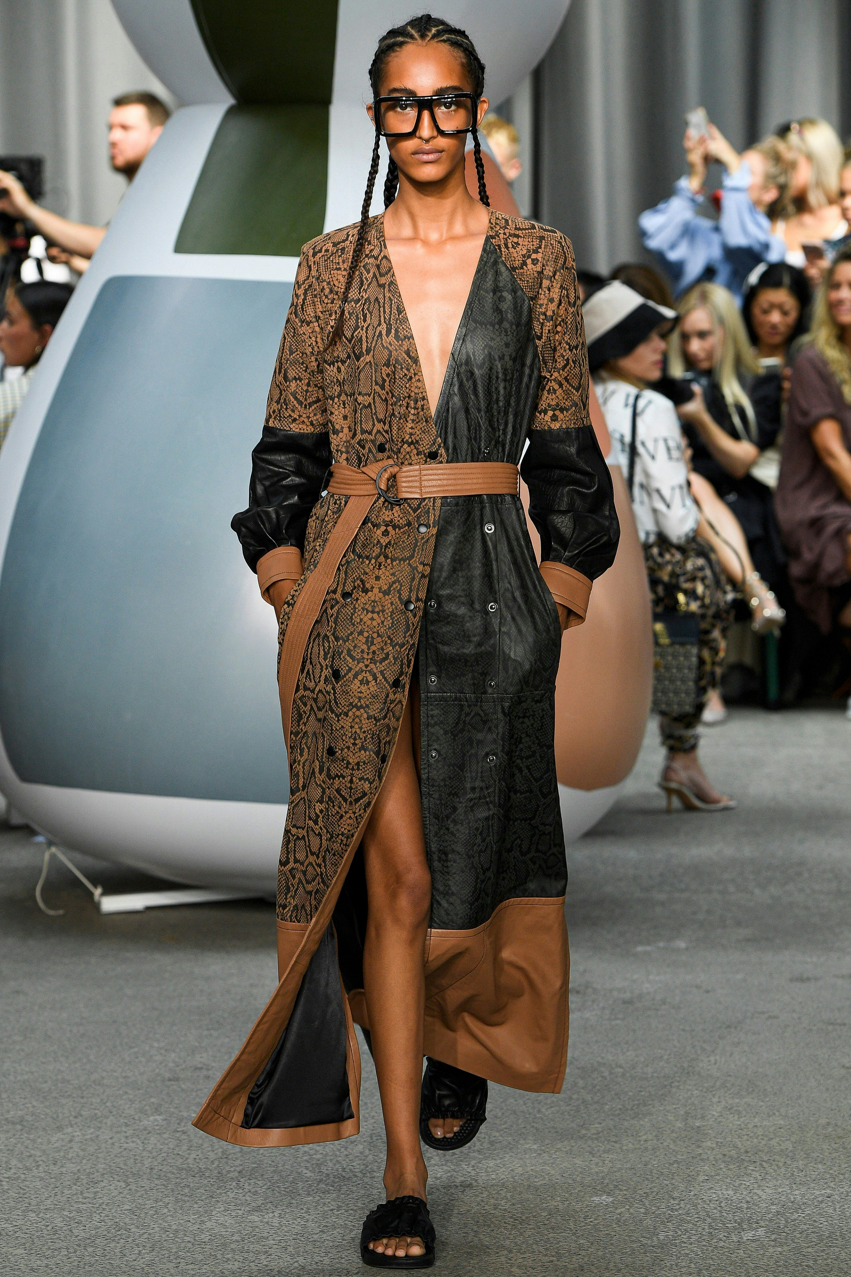 Stand kriegt genau die richtige Mischung aus „Matrix“ und das „Das fünfte Element hin“. Schwarzer Ledermantel, Snake-Print-Lederhose, damit würde ich auf eine Rave Party gehen – oder auf einen Kaffee mit Alexa Chung. Hm, lasst mich kurz überlegen. Ich entscheide mich dann für die letztere Version.