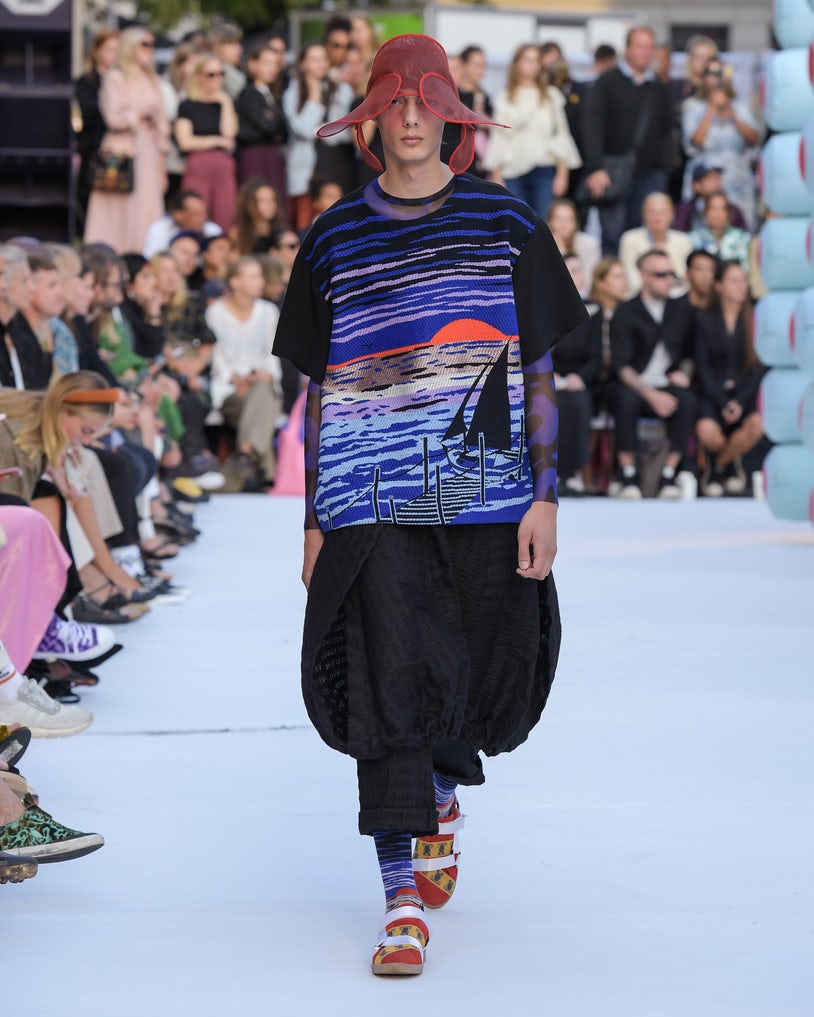 Henrik Vibskov ist einer der alten Hasen auf der Fashion Week. Seinen Abschluss machte er, na klar, auf dem Central Saint Martins College, bevor er 2001 sein gleichnamiges Label launchte. Seitdem bereichert er die Mode der Welt mit jeder Menge fantastischem Strick, grafischen Prints und Entwürfen, die jede Grenze zwischen Geschlechter verschwimmen lassen.