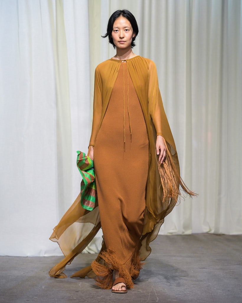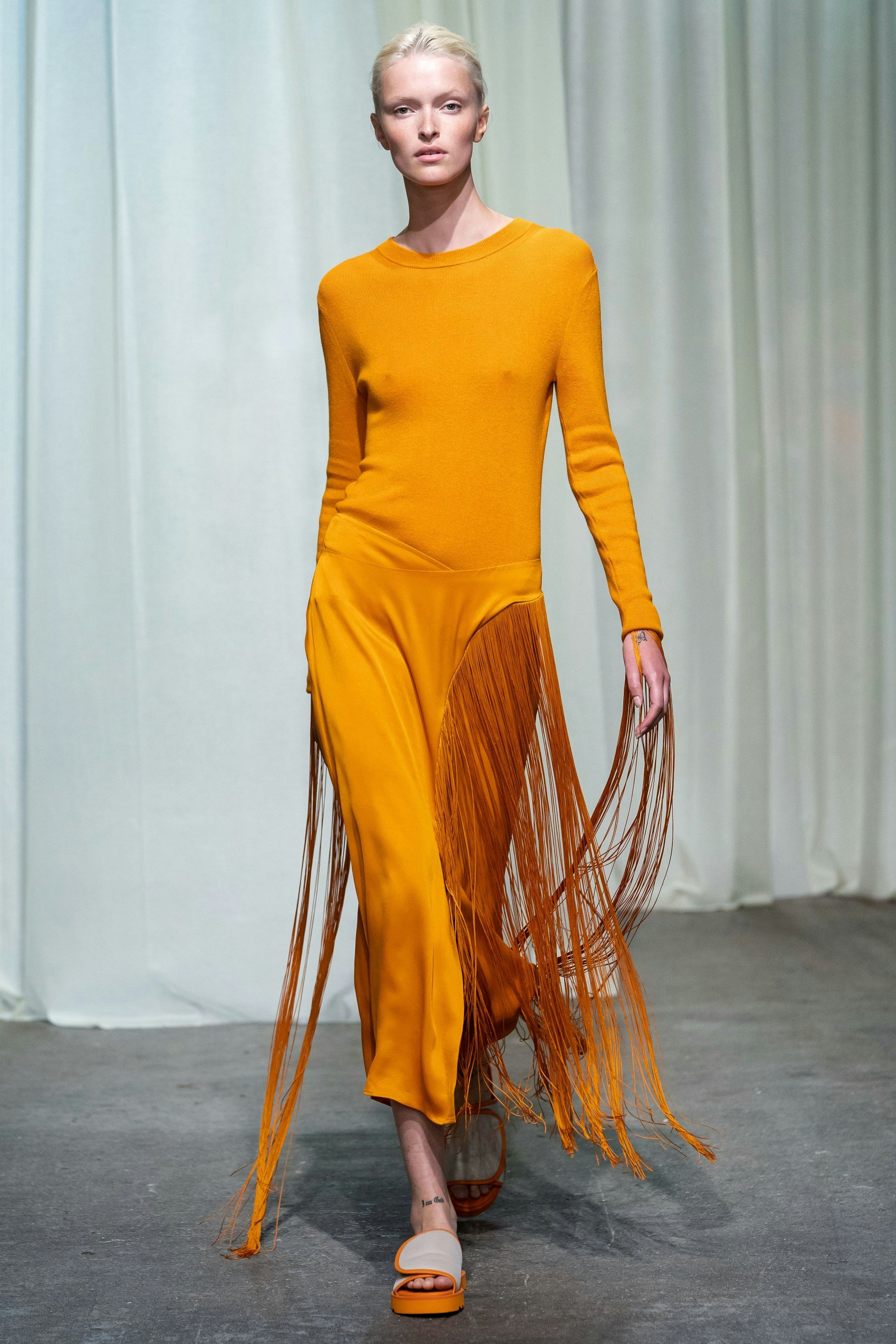 Rodebjer hat sich irgendwie einen festen Platz in meinem Herzen erschlichen – kurioserweise habe ich jedoch außer einem Paar Plateau-Sandalen nie etwas von der Marke besessen. Das könnte sich allerdings gerne ändern, hat mich Carin Rodebjers Comeback auf der CPHFW doch erneut daran erinnert, dass 1. ich Blassgelb eine wirklich tolle Farbe finde. 2. tiefergelegte Hüften niemals charmanter aussahen und man 3. sogar in Rostbraun aussehen kann, wie eine griechische Gottheit.