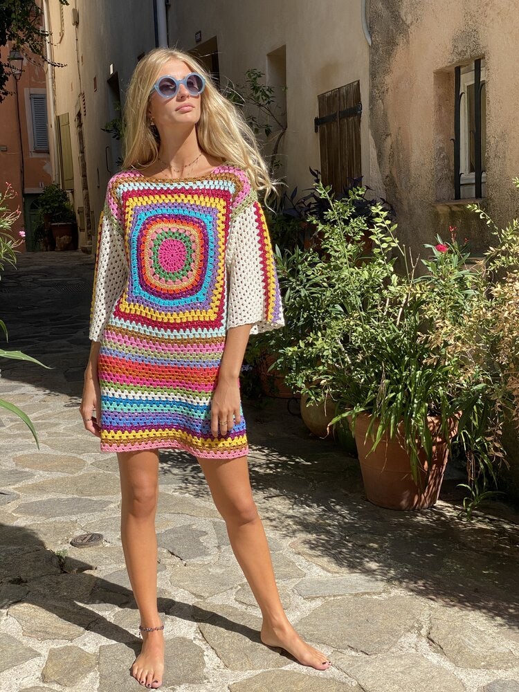 Anders als andere Trends verschwand die Häkelmode auch nicht im Krieg oder in den konservativen 50er-Jahren. Doch die Sixties waren das Jahrzehnt, in dem Häkeln seinen Boom erlebte. In den Sechzigern wurden nicht nur Anziehsachen gehäkelt, nein, Kissenhüllen, Decken, Tischdecken, nichts war sicher vor den Häkelnadeln der Handarbeitsbegeisterten. Ende der 60er-, Anfang der 70er-Jahre wurde dann auch das „Granny Square“ auf Deutsch „Häkeln im Quadrat“, angesagt, also die bunten, psychedelischen Häkelmuster in vielen aneinander gehäkelten Quadraten, die wir alle kennen (und lieben!).