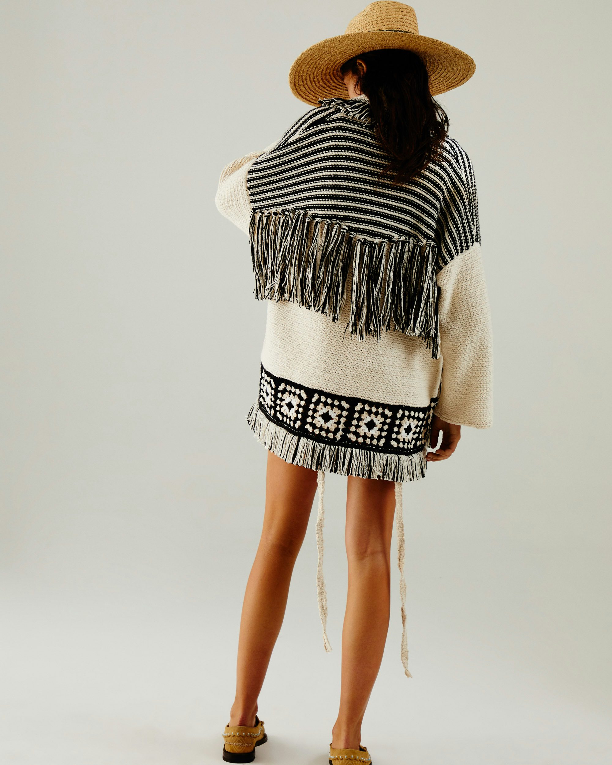 Alanui beobachte ich schon länger, allerdings ist das Label aus Italien ebenso eine echte Investition. Bekannt geworden sind die Geschwister Nicolo und Carlotta Oddi mit Cardigans aus den edelsten Materialien, oft Cashmere. Dann kostet so eine dicke, weiche und kuschelige Strickjacke aber auch schon mal knappe 2000 Euro. Dabei vereint alle Designs eins: Sie sind unisex, knopflos, haben einen Fransenrand und werden mit einem Gürtel geschlossen. Aif dieser Grundlage launcht Alanui jede Kollektion und entwickelt sie immer weiter. Und klar, auch Alanui ist kein typisches Häkellabel, aber in ihrer aktuellen Kollektion fließen immer wieder gehäkelte Styles ein, es gab auch schon Strickjacken mit Granny Squares in den vergangenen Kollektionen. Schaut mal auf Vestiaire Collective vorbei oder im Sommer- oder Wintersale, da kann man die luxriösen Styles oft etwas günstiger bekommen.