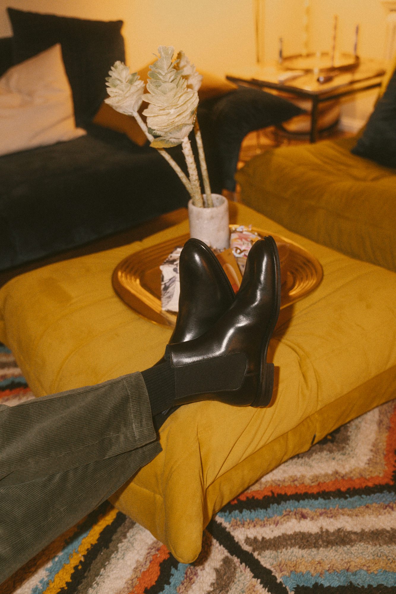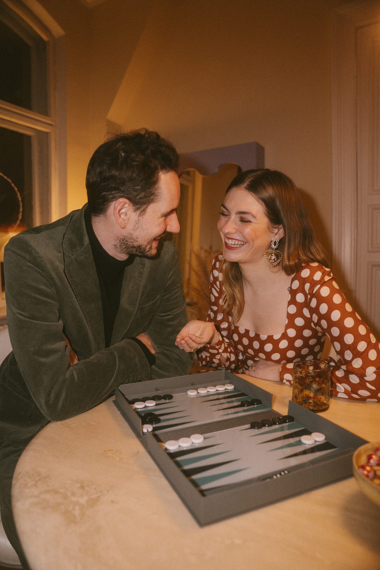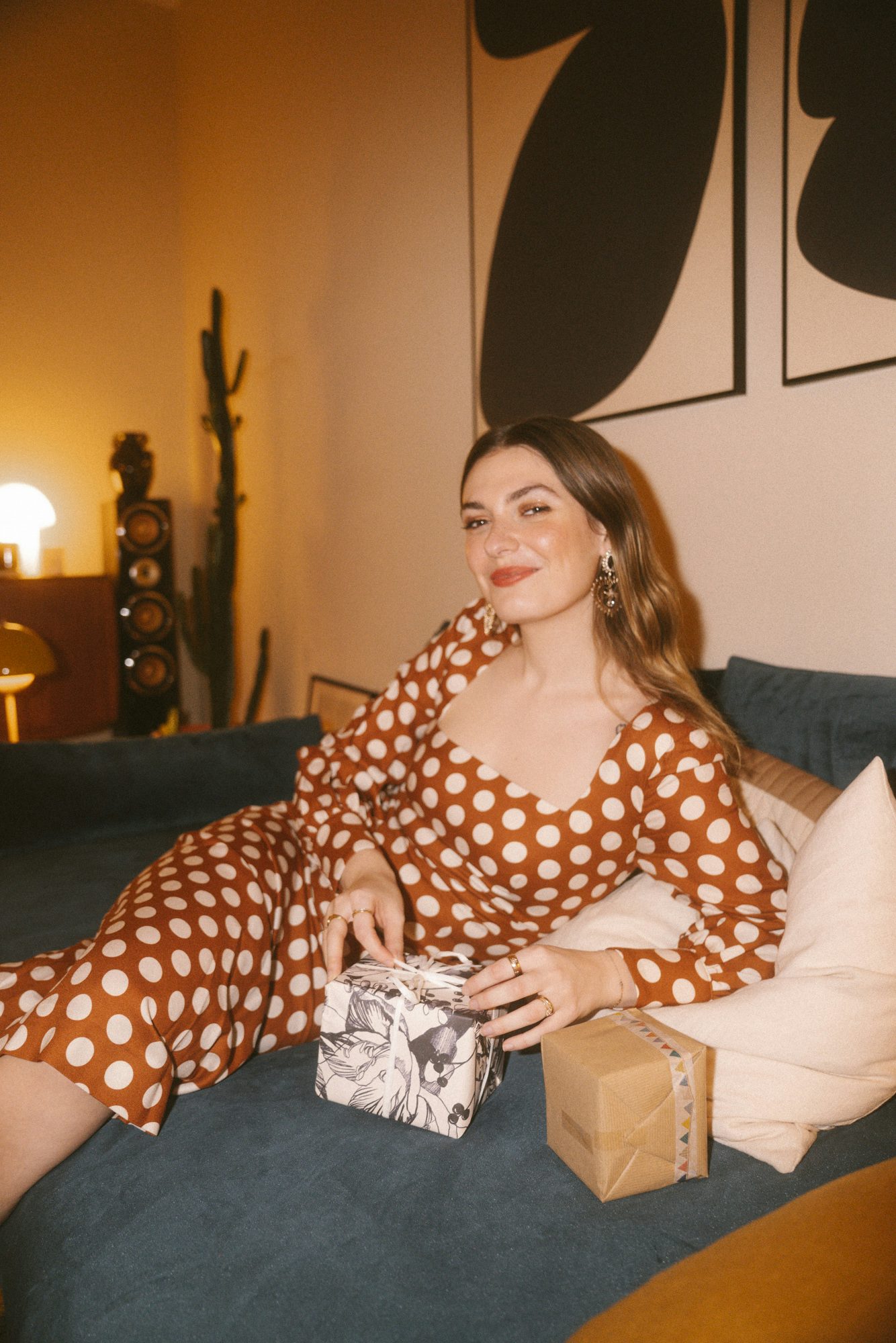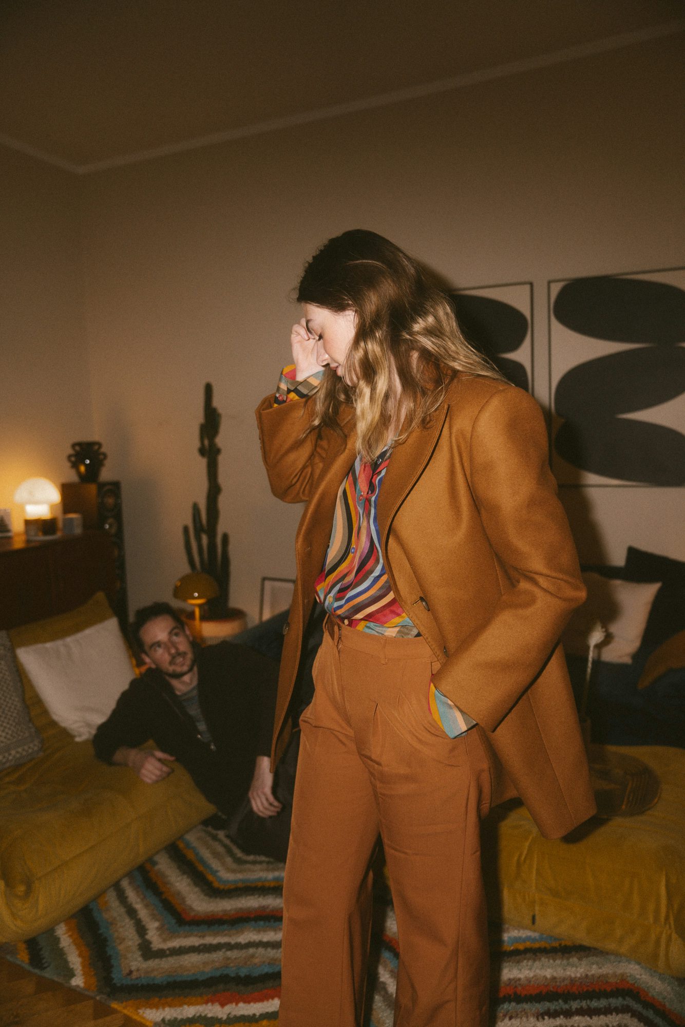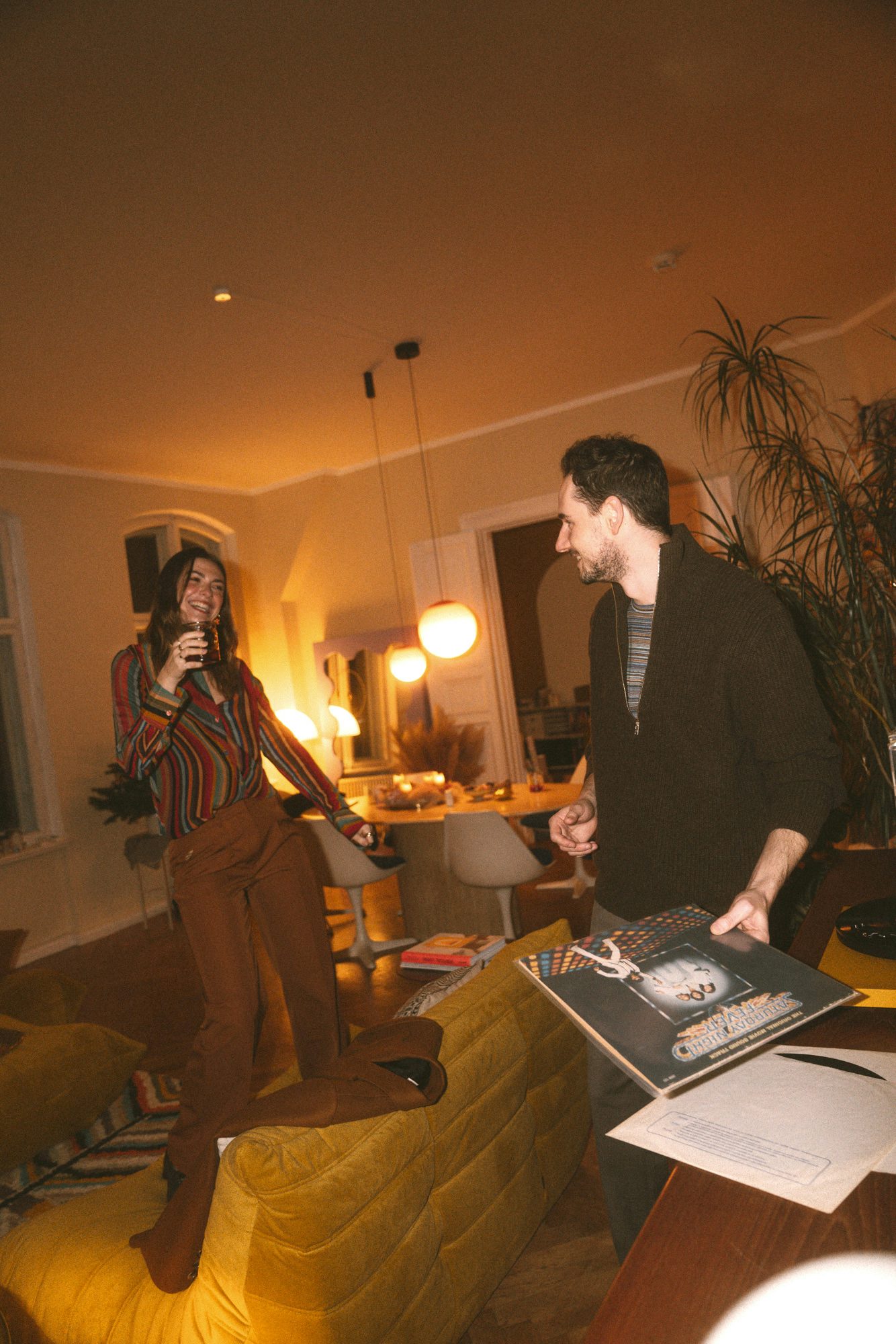 Und auch outfittechnisch haben wir beschlossen, dass dieses Jahr alles anders wird und jeglichen Samt, Weihnachtsmotive, Zopfstrick und Pailletten verbannt. Stattdessen gibt es Wohlfühllooks von Zalando Designer für die Feiertage und ein eleganteres Outfit für den Heiligabend selbst. An den Festtagen sehen wir die engste Familie in Berlin – und spielen stundenlang Phase 10, Lukas in einem casual Strickpullover von Closed und Filippa-K-Hose (mit Gummizug!) und ich in einem Seventies-Ensemble von meiner Lieblingsdesignerin Alexa Chung. In dem Hemd von Paul Smith muss man mich auf unserem Teppich erstmal finden!