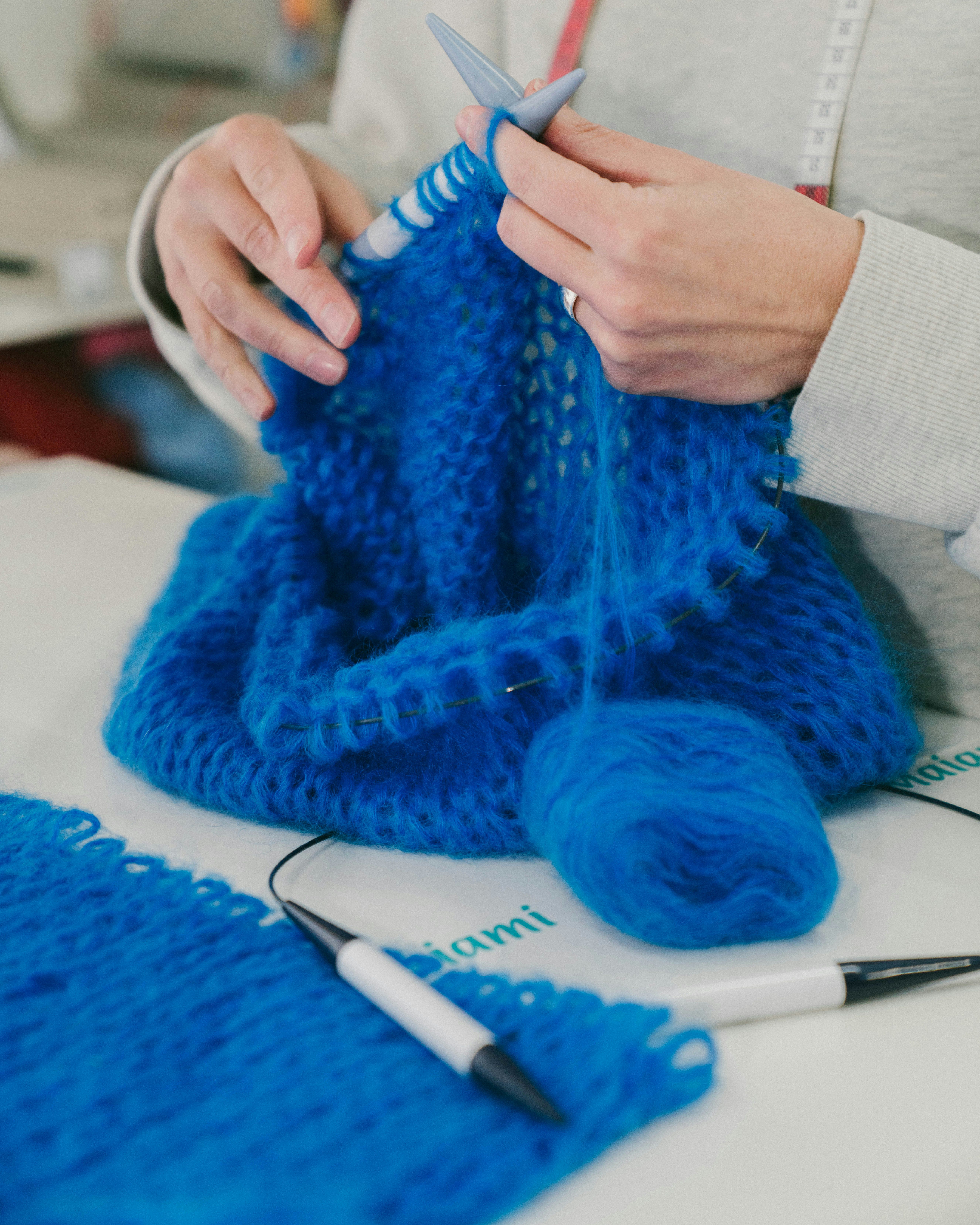 Wir alle sehen uns nach mehr Nachhaltigkeit in unserem Leben: Wir mixen unsere Gesichtsmasken selbst aus Jogurt und Honig und kaufen keine industriell verarbeiteten Lebensmittel mehr. Doch wie sieht es mit der Mode aus? Wenn wir mal ehrlich sind, handgefertigt wird ein Bruchteil der Kleidung, die auf dem Markt ist. Das machen Fließbandproduktionen, Trendwellen und unser enormer Wegwerfwahn unmöglich. Wissen wir überhaupt noch, wie das mit der Mode mal alles angefangen hat? Mit einem Zeichenbrett, viel Kreativität und geschickten Händen in Ateliers. Die Fertigung per Hand ist der Grundstein der Mode. Bei Maiami ist genau das heute immer noch der Standard. Jeder Pullover des Berliner Labels wird von Hand gestrickt, perfektioniert und kontrolliert – und geht vom Berliner Atelier mittlerweile hinaus in die ganze Welt.