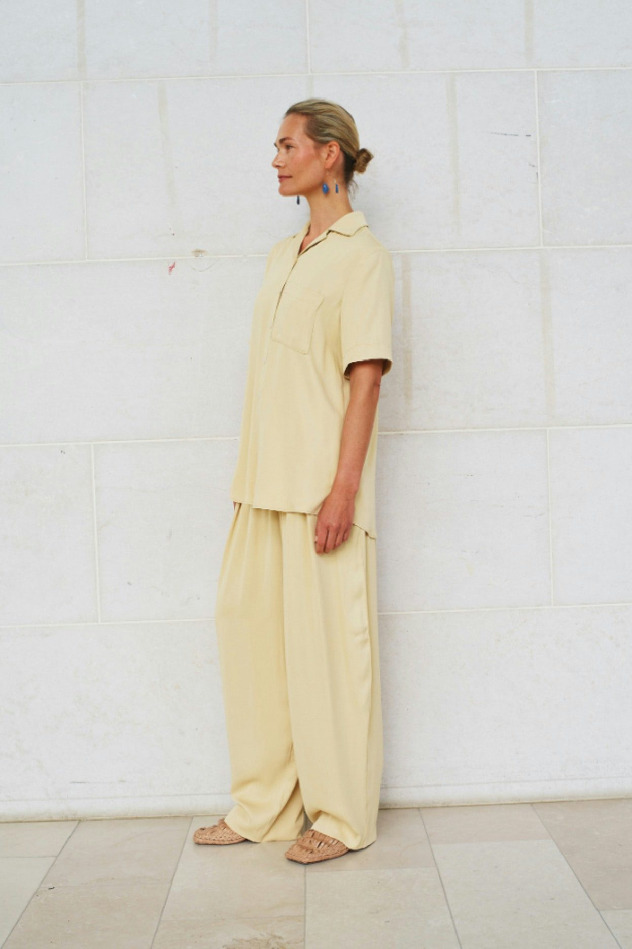 „Indem ich eine Zeit erforsche, die vor meiner Geburt lag, ist die Ästhetik fast wie aus der Zeit gefallen – sie ist irgendwie abstrahiert; als ob ich eine Erinnerung wiedergeben würde, die ich nie wirklich hatte. Nur Fotografien und einige geschätzte alte Ausgaben von „Good Housekeeping!“ haben es uns ermöglicht, wieder in die Welt einzutauchen, in der meine Mutter ein so erfolgreiches Berufsleben geführt hat. Wir haben das, was wir an diesem imaginären Ort gefunden haben, genommen und neu gestaltet.“, so Julie Brøgger über die neue Kollektion.