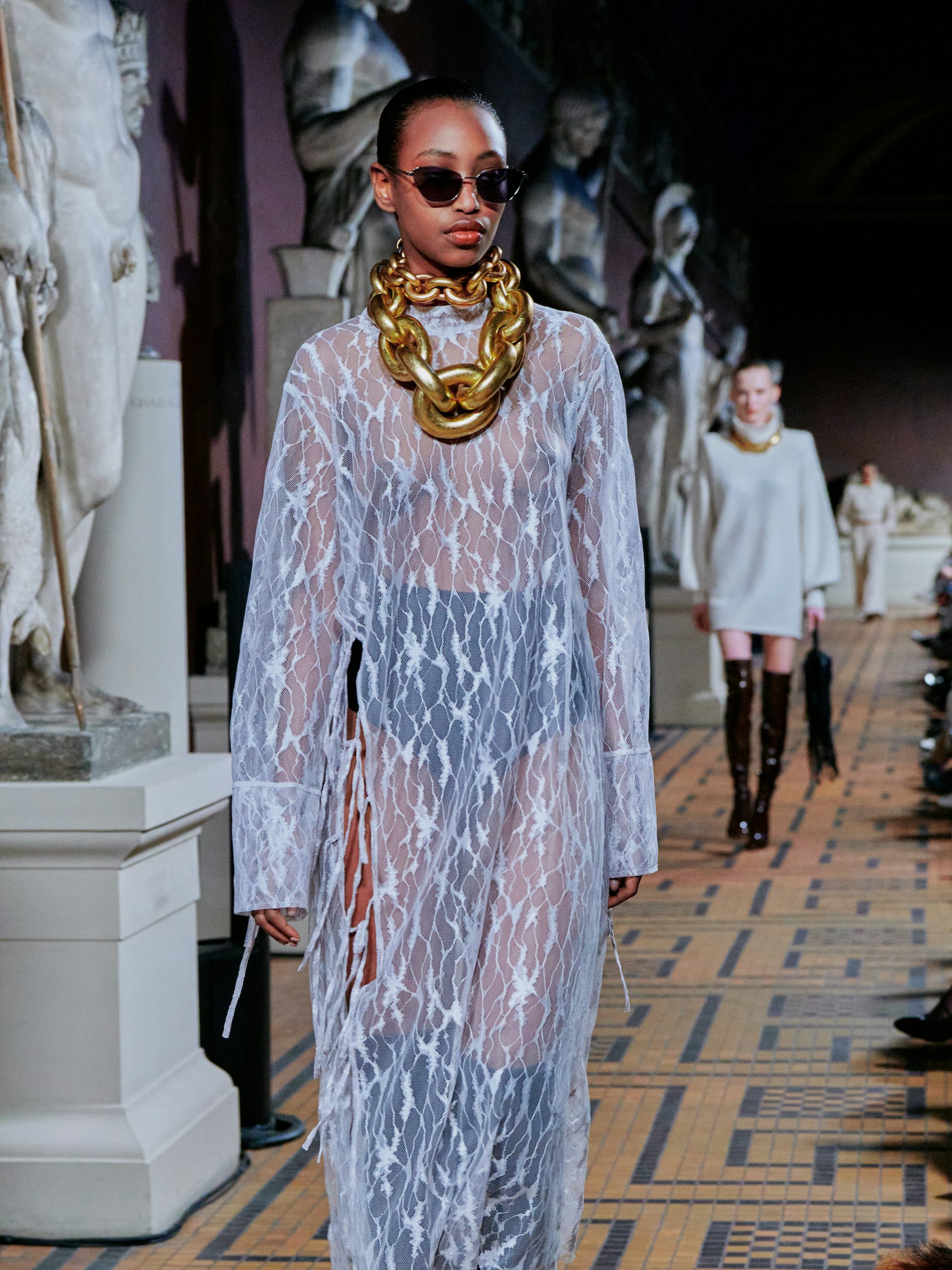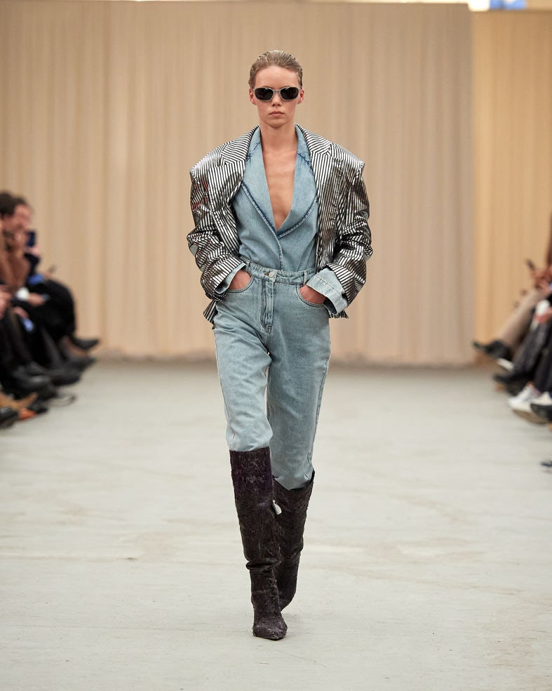 Ähnlich wie Double Denim ist auch der Transparenz-Trend nicht neu, sondern kommt, ob Sommer oder Winter, seit Saisons immer wieder auf die Laufstege. Ja, die Looks sind einfach wahre Showstopper, ob mit Nipple Pasties oder ohne. Da Meta ja gerade sein striktes Nippel-Verbot für Frauen überdenkt, scheint das der perfekte Zeitpunkt für ein Revival zu sein.