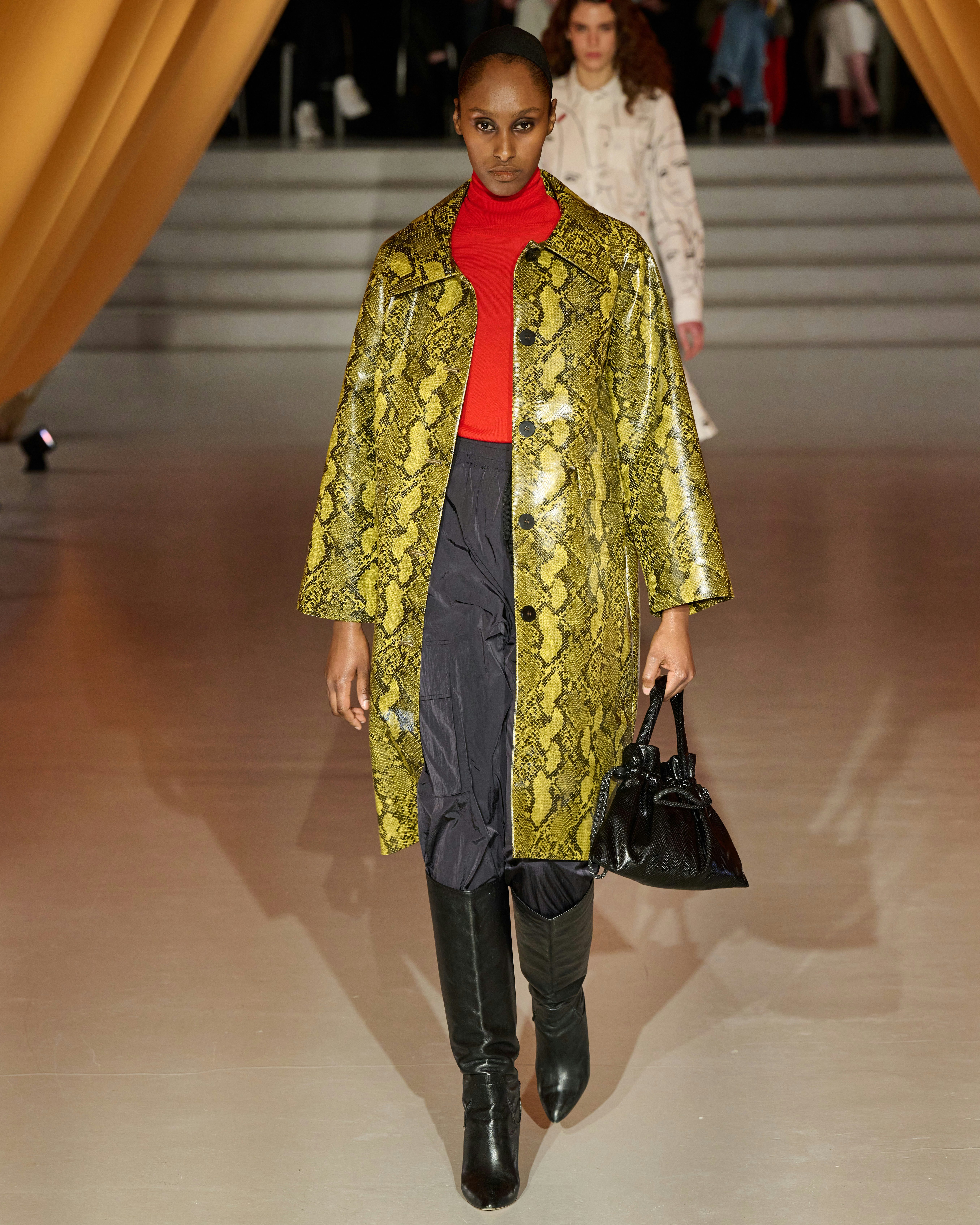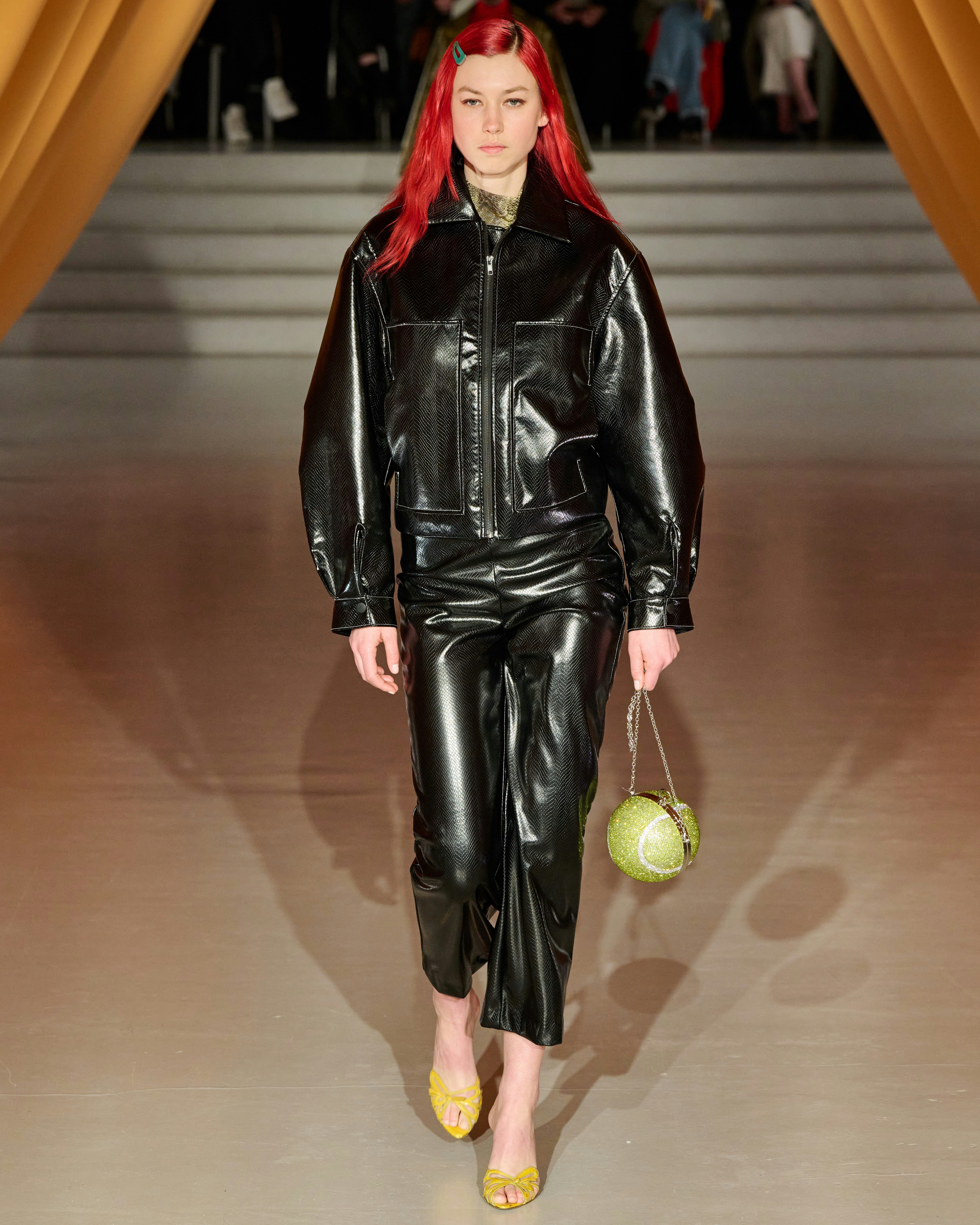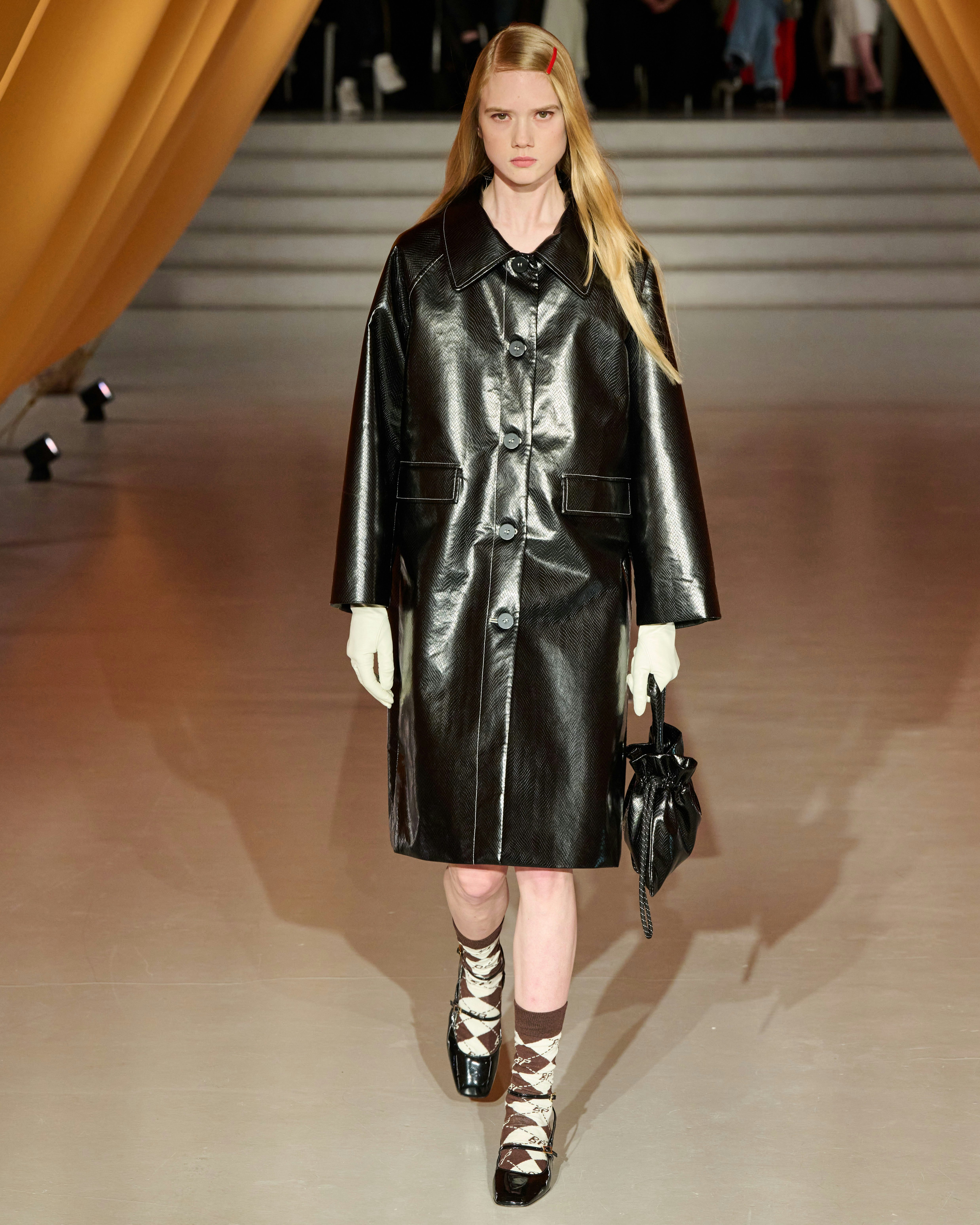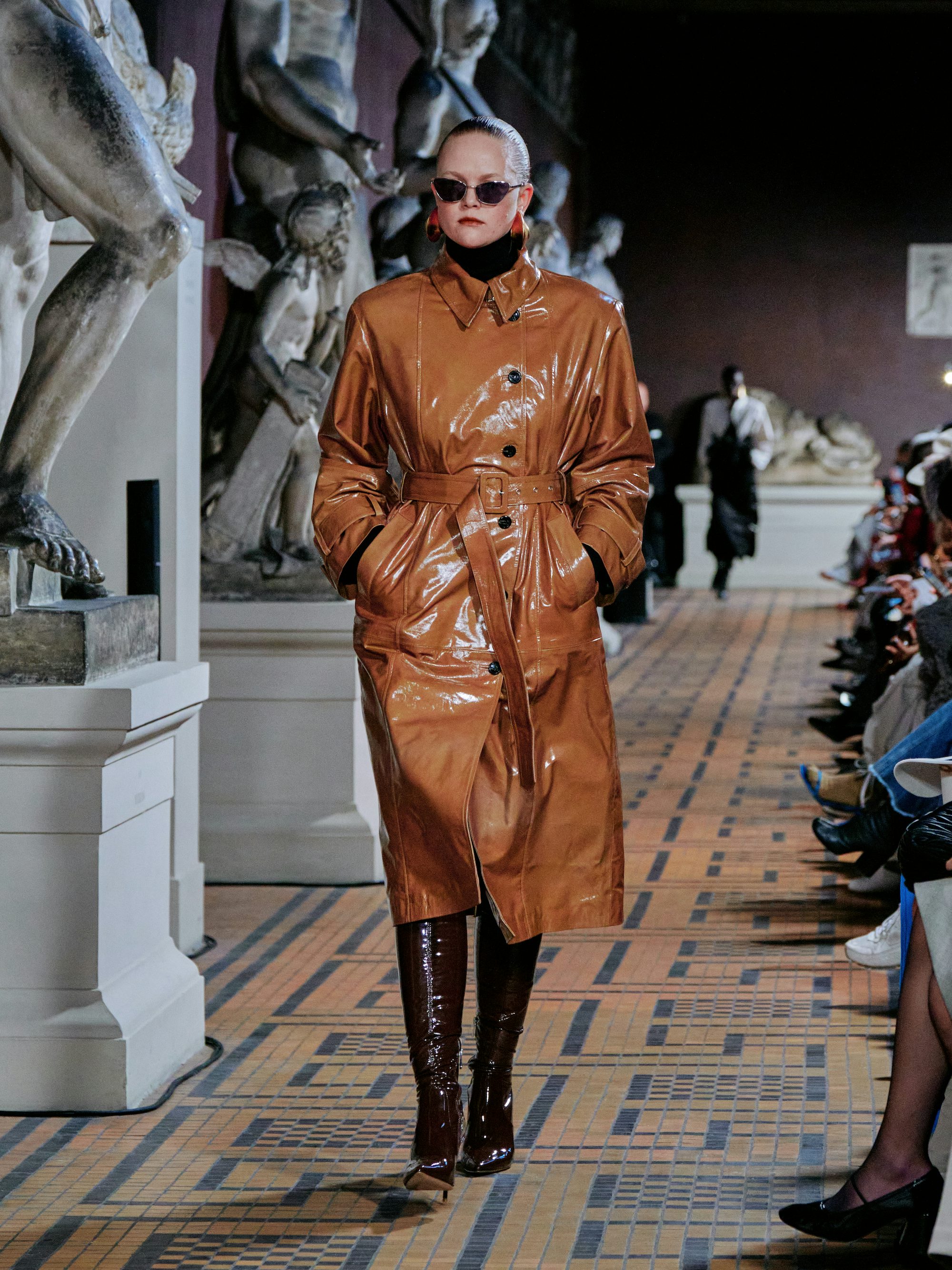 Verkehrssicherheit wird in Kopenhagen ganz großgeschrieben, anders geht es auch nicht, bei der Fahrrad-Autobahn in der ganzen Stadt. Ob sich die dänischen Designer*innen wohl deswegen überlegt haben, dass glänzende Lack- und Ledermäntel im kommenden Winter wieder en vogue sind? Könnte sein ...