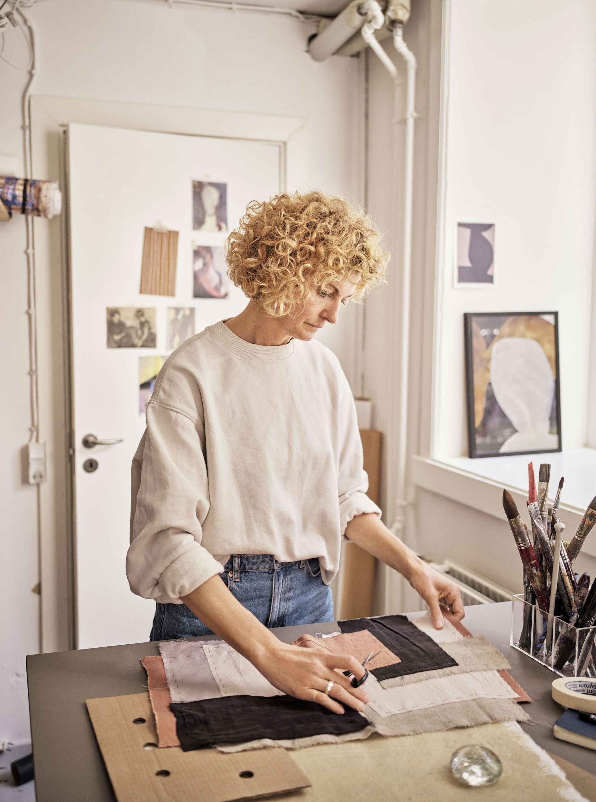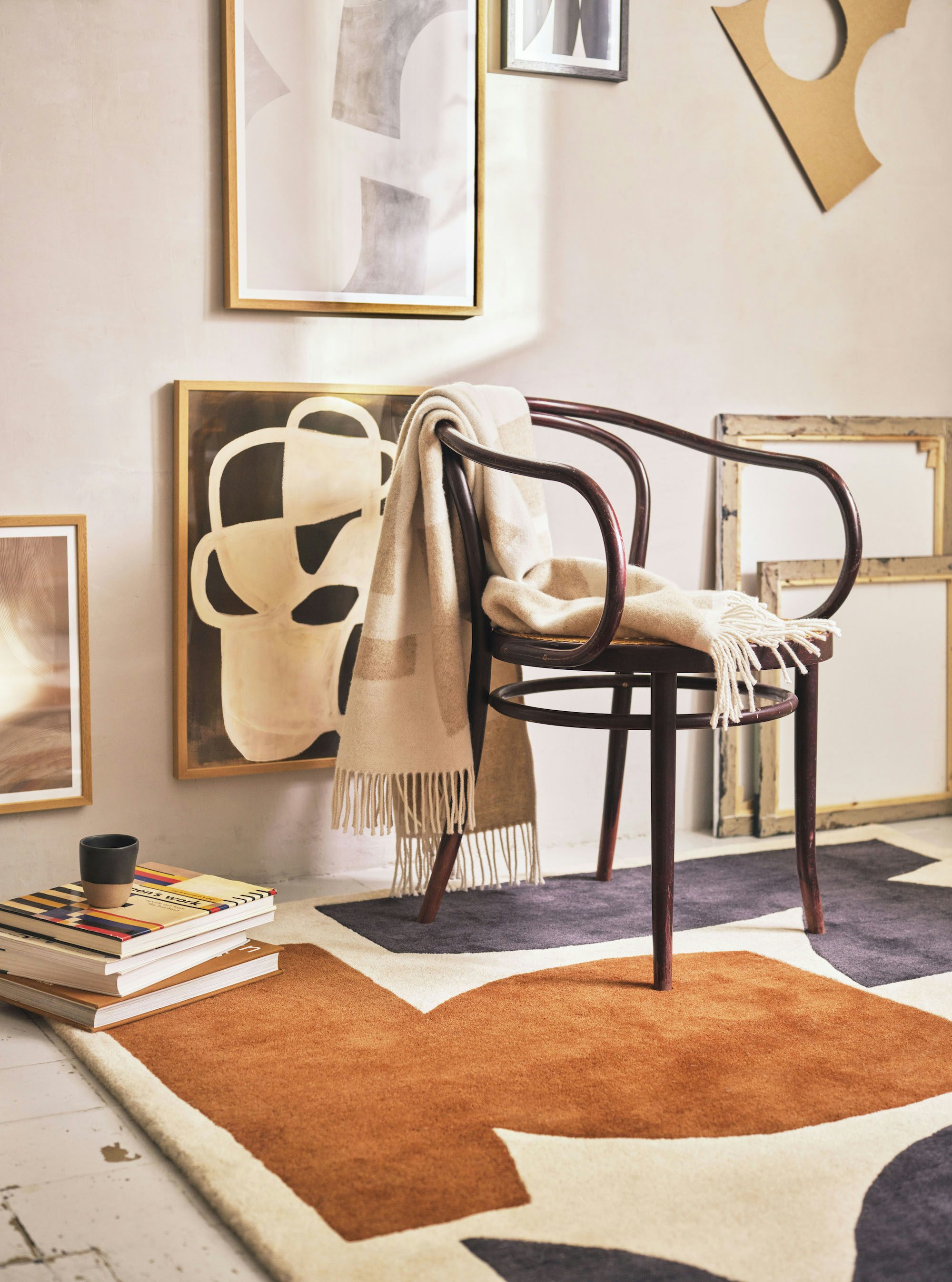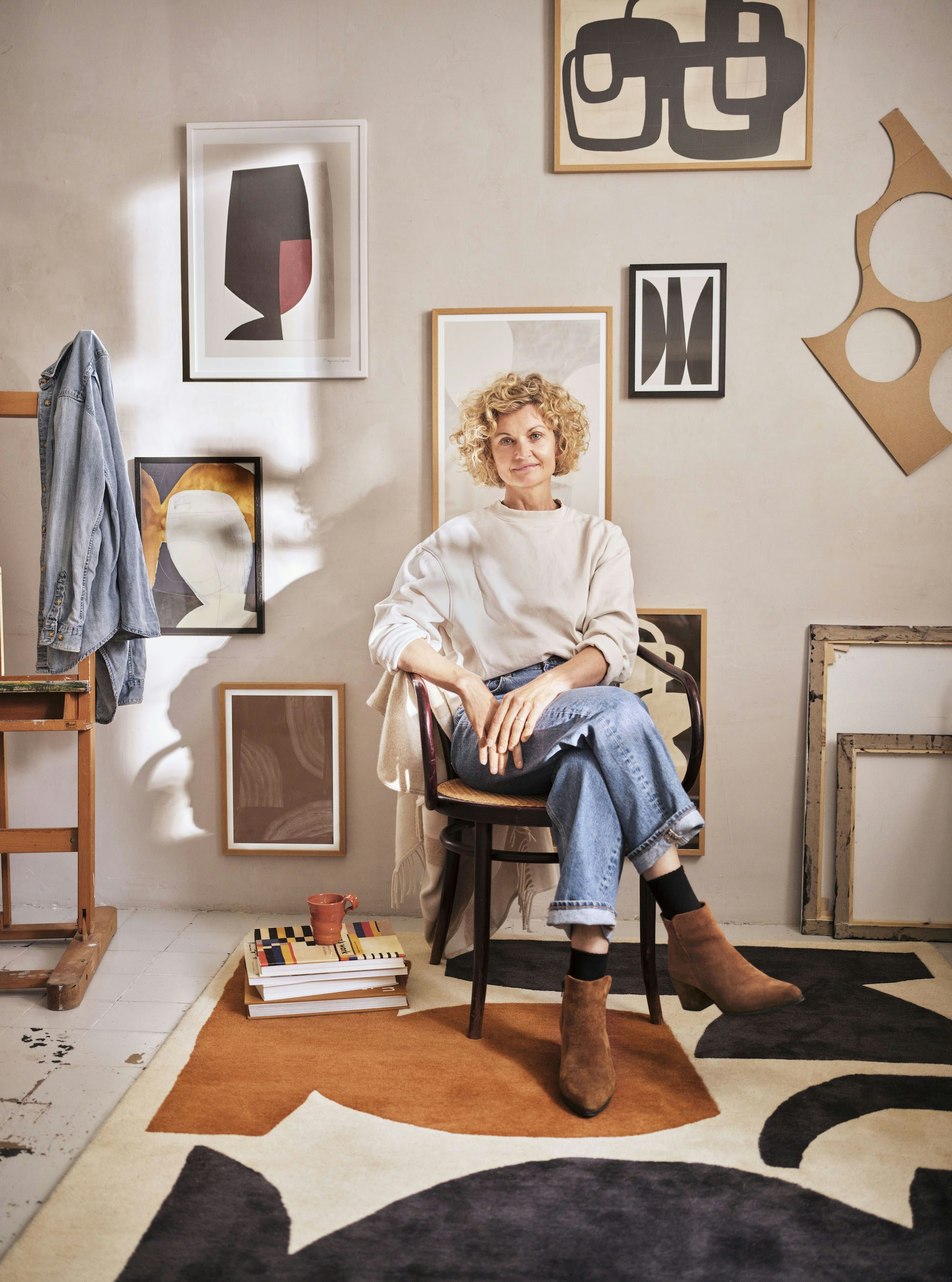 Ihr ahnt nicht, wie sehr ich mich gefreut habe, als ich erfahren habe, dass Made.com jetzt gemeinsame Sache mit Berit Mogensen Lopez macht. Ich verfolge die Laufbahn der dänischen Künstlerin nämlich schon länger und träume vielleicht schon seit Monaten von einem Bild von ihr über unserer Couch. Sie ist bekannt für abstrakte Formen, warme Farben und lässt sich nicht nur auf Leinwände festlegen, sondern arbeitet auch mit Teppichen, Stoffen, Drucken und Collagen.
