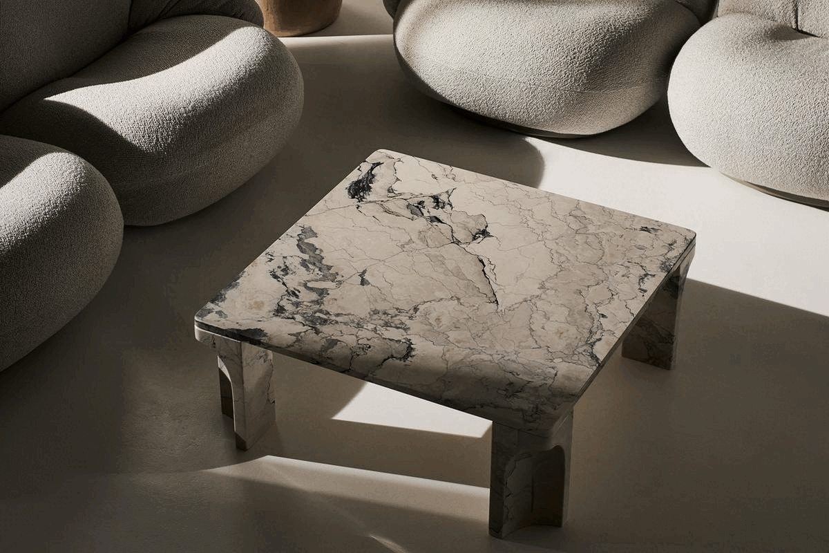 Man muss das Rad nicht neu erfinden, sondern nur neu kombinieren. Das hat sich GamFratesi auch gedacht und für Gubi einen so formschönen Coffee Table designt, dass ich hin und weg bin. Dafür haben sie griechische Architektur-Elemente, nämlich den Rundbogen, mit einer cleanen Platte aus Travertin oder Kalkstein kombiniert. Klar, Travertin kennt man, aber Kalkstein, auf Englisch Limestone, ist gerade das Material, das ihr euch merken solltet – und das Marmor hoffentlich bald eine Verschnaufpause gönnt.