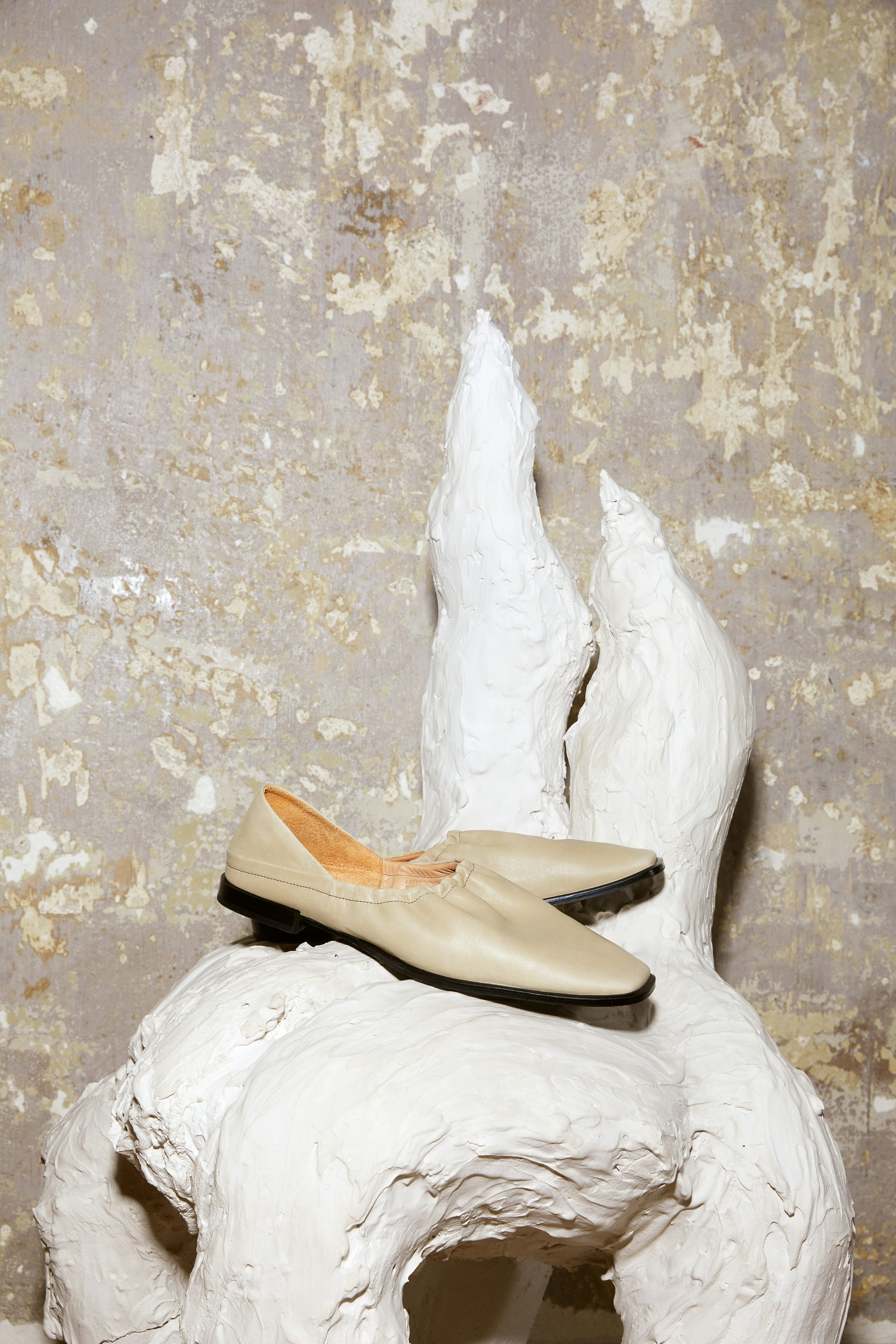Die Kollektion Atelier by Vagabond umfasst minimalistische, hochwertige Pieces für den Alltag. 13 unterschiedliche Styles, mit Plateau, flach, Slip-Ins und Pumps, alle mit Lederfutter und handgefertigten Laufsohlen. Die Formen und Silhouetten sind modern, die Farbpalette ist in neutralem Cremeweiß, Schwarz und Beige gehalten, mit farblichen Akzenten in Pistazie.