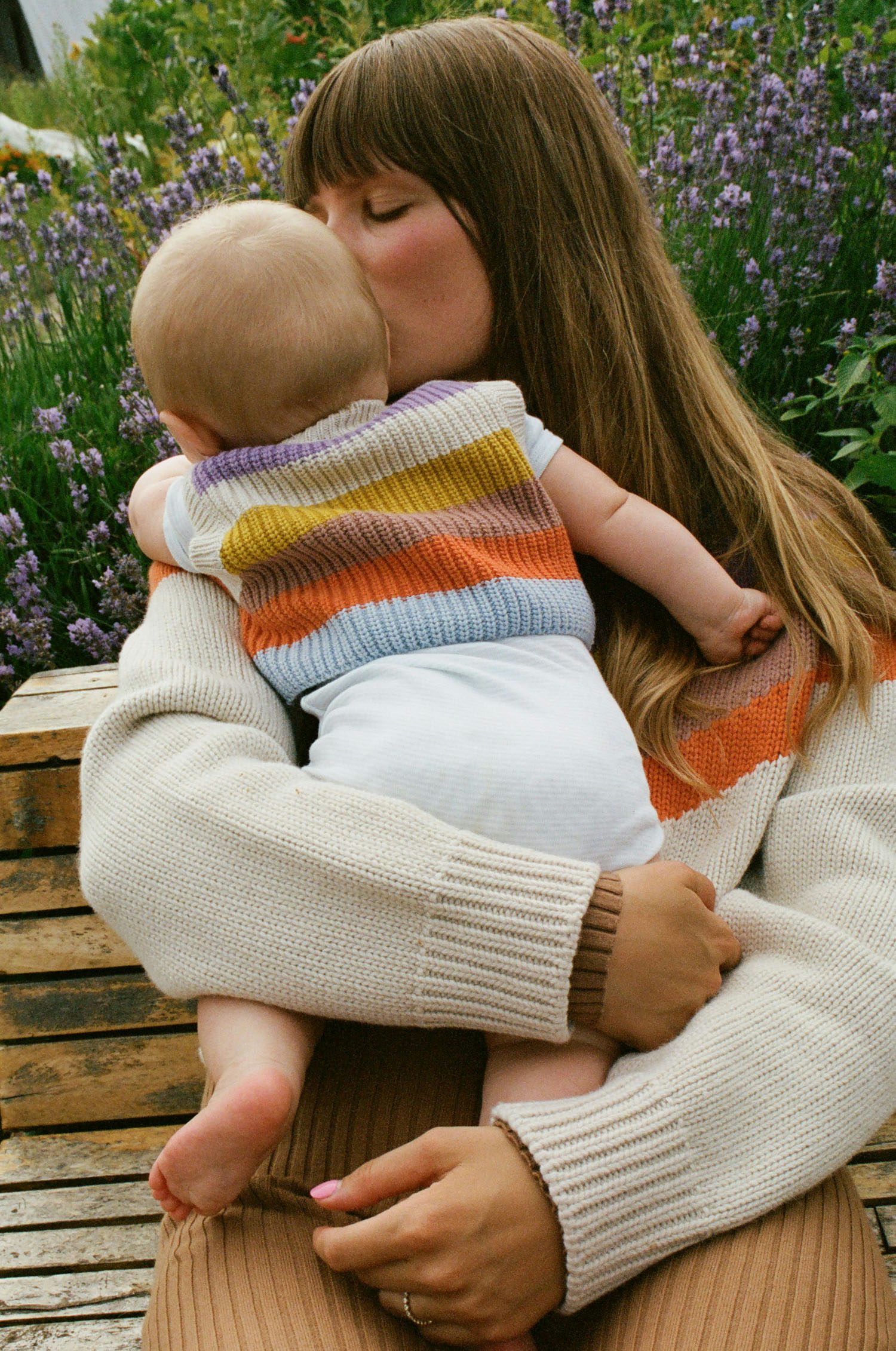 „Ich liebe Farben und greife bei der Kleidung meiner Kinder immer zu fröhlichen Styles“, erklärt Caroline. Und ebenso wichtig wie die gute Laune sind ihr auch weiche Materialien, weil sie empfindlich auf kratzige Stoffe reagiert. Also wurden vor allem natürliche Fasern wie Kaschmir, Wolle und Viskose verarbeitet.