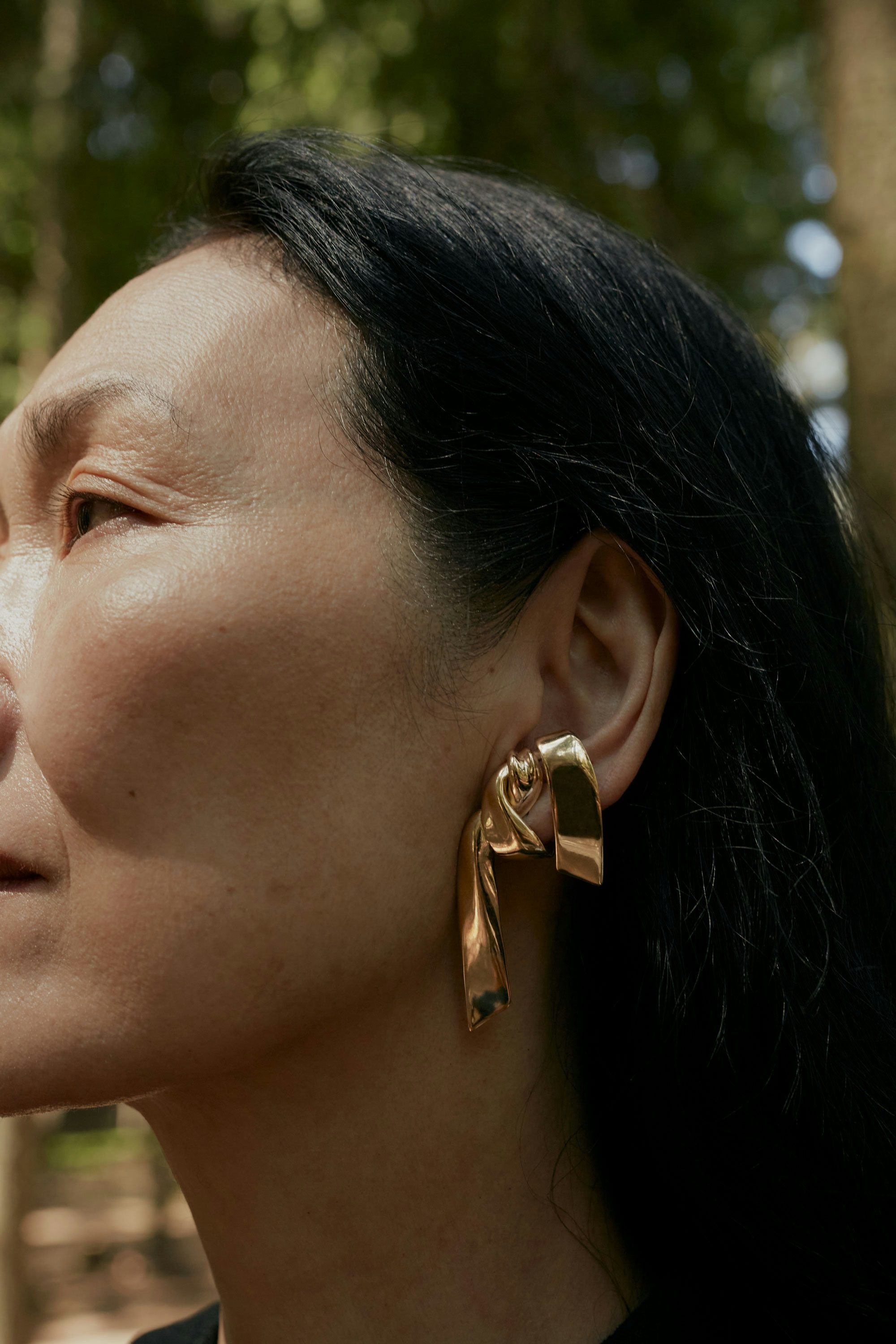Was beide Designs eint, ist, dass sie auf zwei unterschiedliche Varianten, nämlich einmal als kleine Mini-Creole und einmal als größerer Statement-Ohrring getragen werden können.