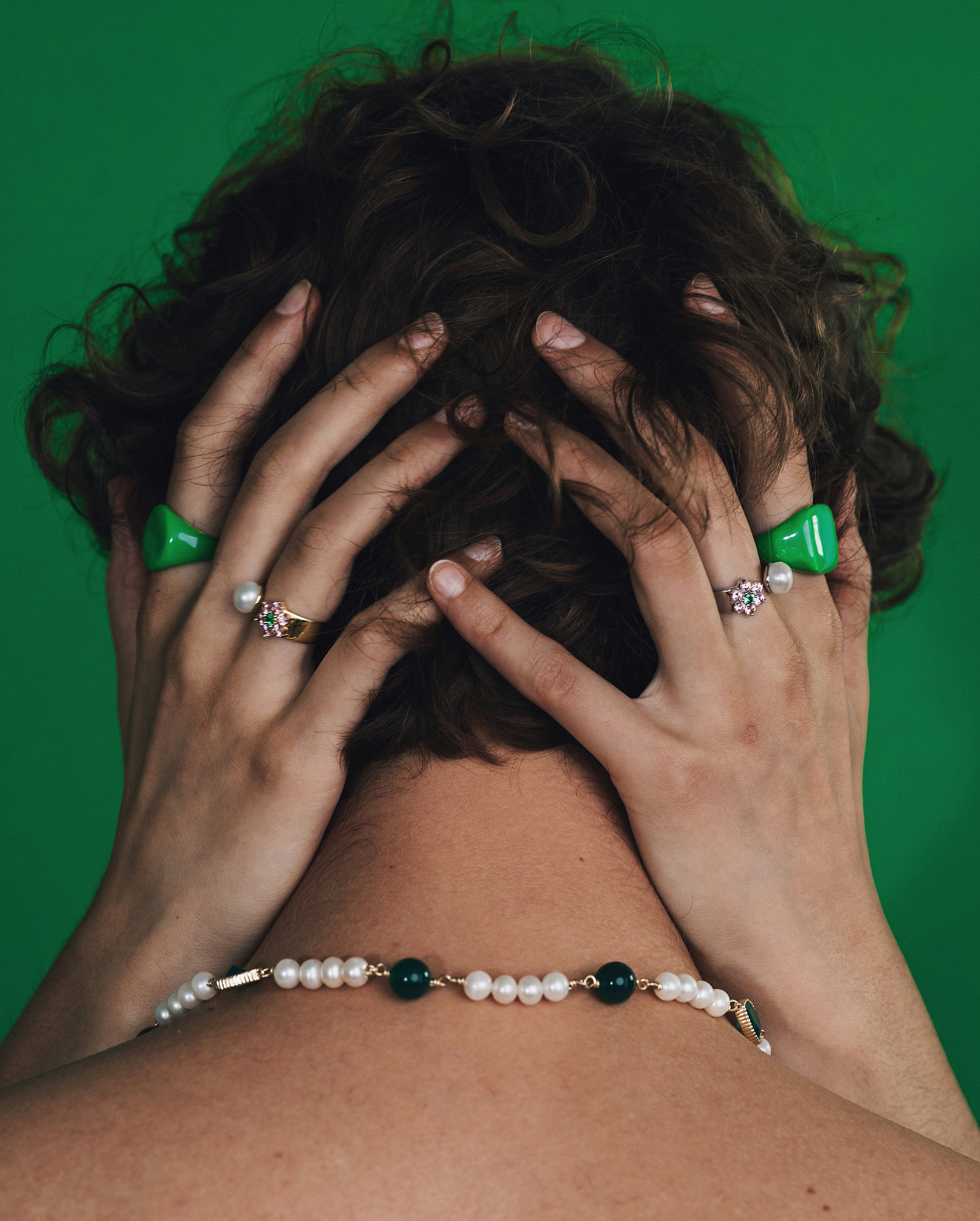 Die erste Kollektion lancierte sie im November 2020 die erste Kollektion, jetzt ist schon die dritte Schmuckkollektion auf dem Markt und der Fokus ist und bleibt bei der Farbe, die dem Label auch seinen Namen gegeben hat: Grün!