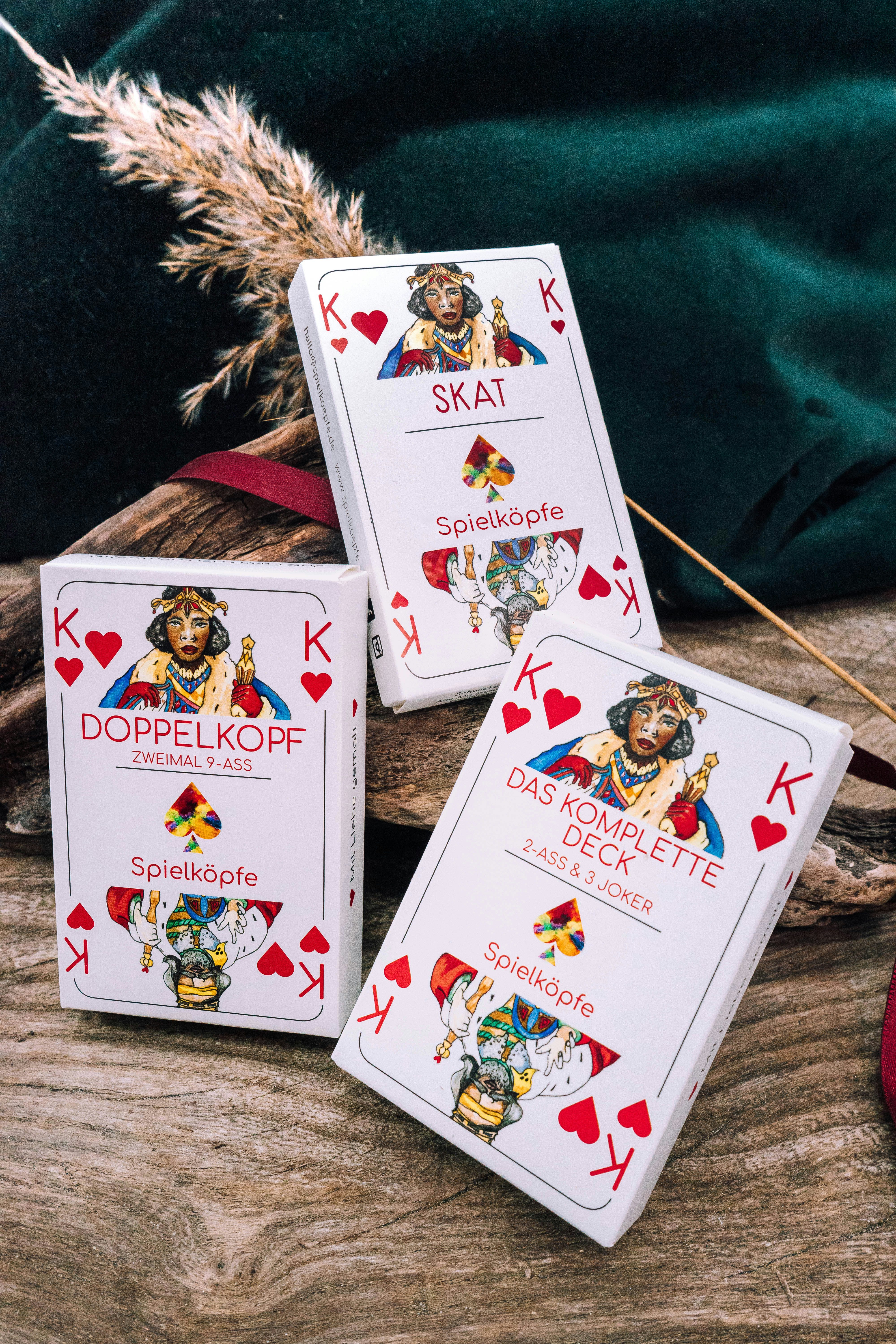 Das Portfolio der 2019 gegründeten Marke umfasst Skat-, Doppelkopfkarten, das komplette Deck, dass man z.B. für Rommé doppelt benötigt und eine Solitär App, die im Google Play Store und im Apple Play Store verfügbar sind.