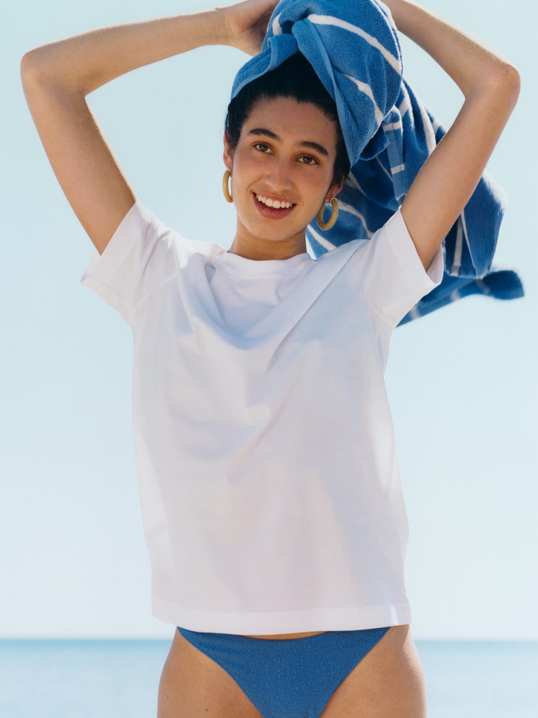 Die neue Kollektion ist gemacht für heiße Tage und laue Nächte – für Strandspaziergänge, Poolpausen und kleine Fluchten vom Alltag. Die Preise starten bei 9 Euro für Accessoires und enden bei 150 Euro, und spätestens beim Anblick der raffiniert-schlichten Bademoden-Silhouetten weiß man: Das Packen für den Urlaub wird dieses Jahr besonders einfach.