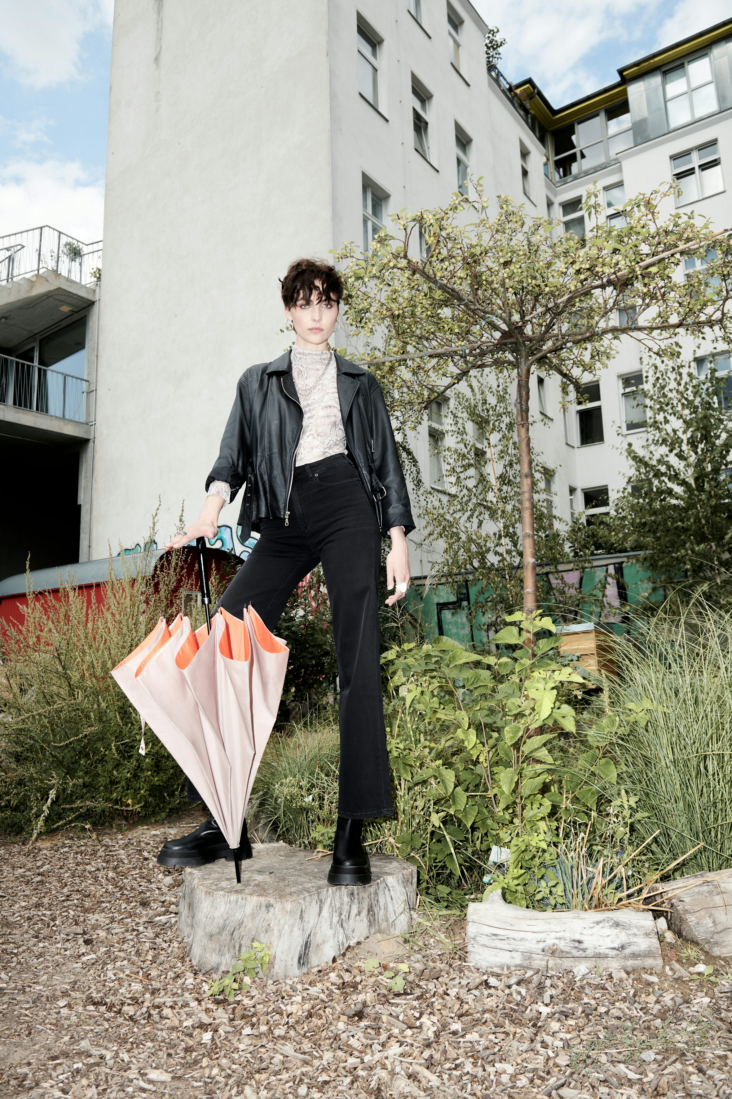 Clara: Es gibt schon noch Ideen. Wir hatten ursprünglich mal ein Band, damit man sich den Schirm umhängen kann. Das hatten wir dann am Ende nicht mehr als praktisch empfunden für den Stabschirm aber ich kann mir schon vorstellen, dass wir das für den Knirps nochmal in Erwägung ziehen. Wie die Xouxou-Handytaschen, so ein Off-White-mäßiges Band, mehr in die Accessoire-Richtung zu gehen. Manchmal ist ein Schirm ja blöd zu verstauen. Vielleicht müssen wir auch nochmal in die Produktentwicklung gehen, was die Stabmaterialien angeht. Um etwas zu finden, langfristig, was noch nachhaltiger ist und natürlich die gleiche Stabilität aufweist.
