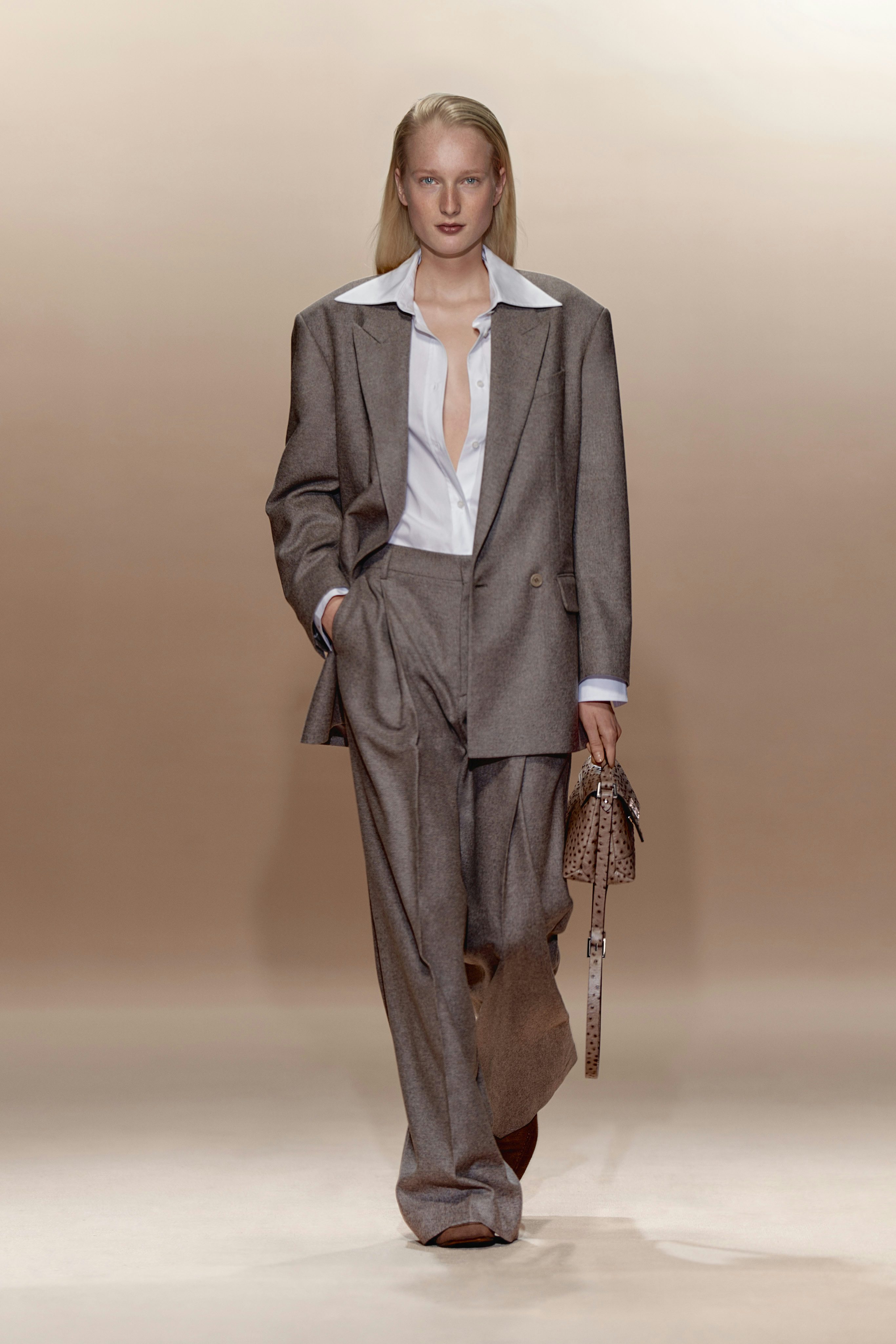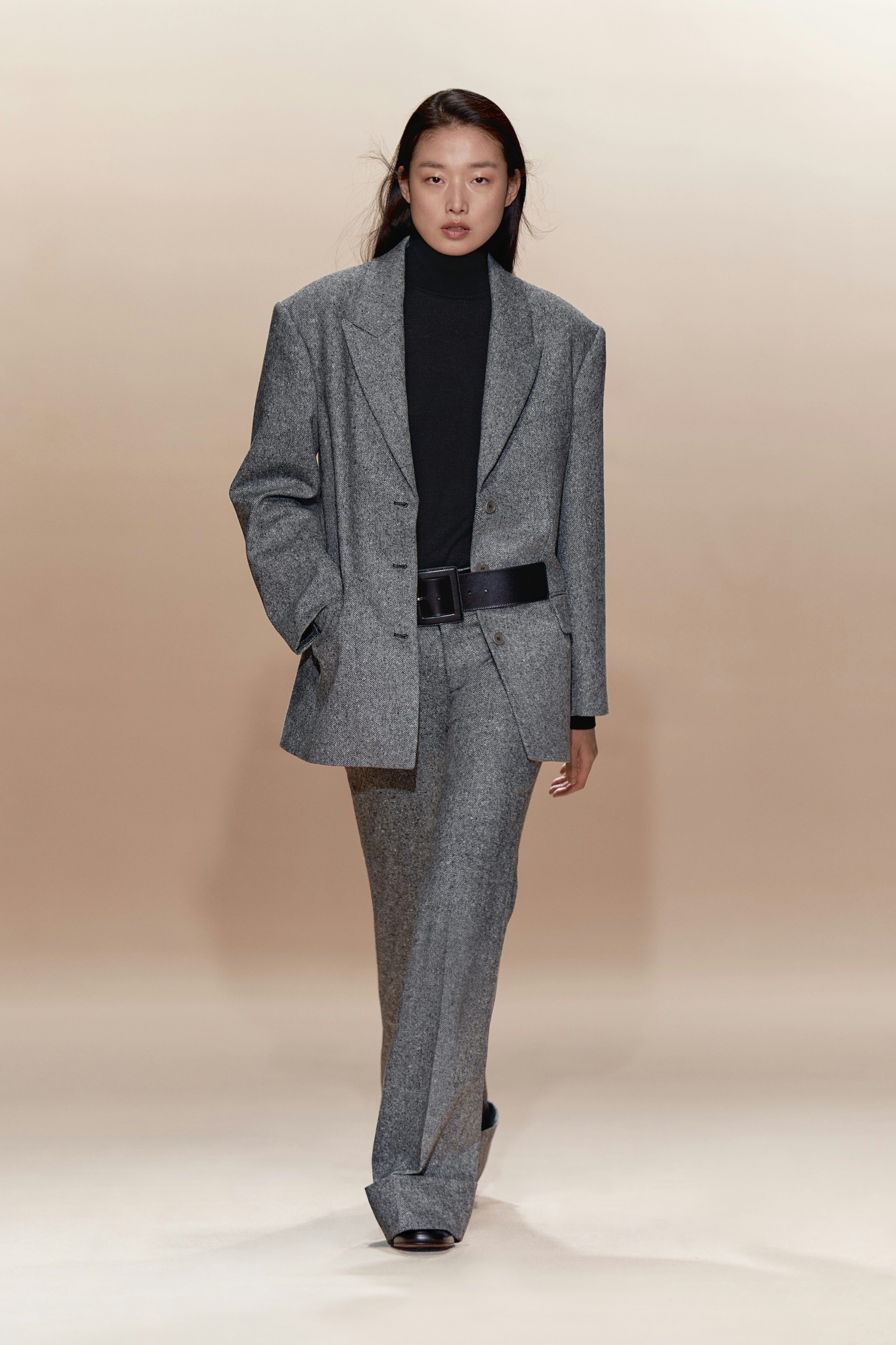 Dabei steht natürlich der Anzug im Rampenlicht, ebenso die dazugehörige weite Silhouette und markante Details wie Schulterpolster, Männerhemden, breiten Gürteln und Strickwaren mit Krägen.