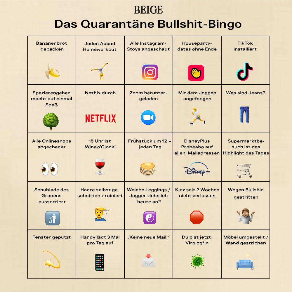 Beige feels: Das Quarantäne Bullshit-Bingo