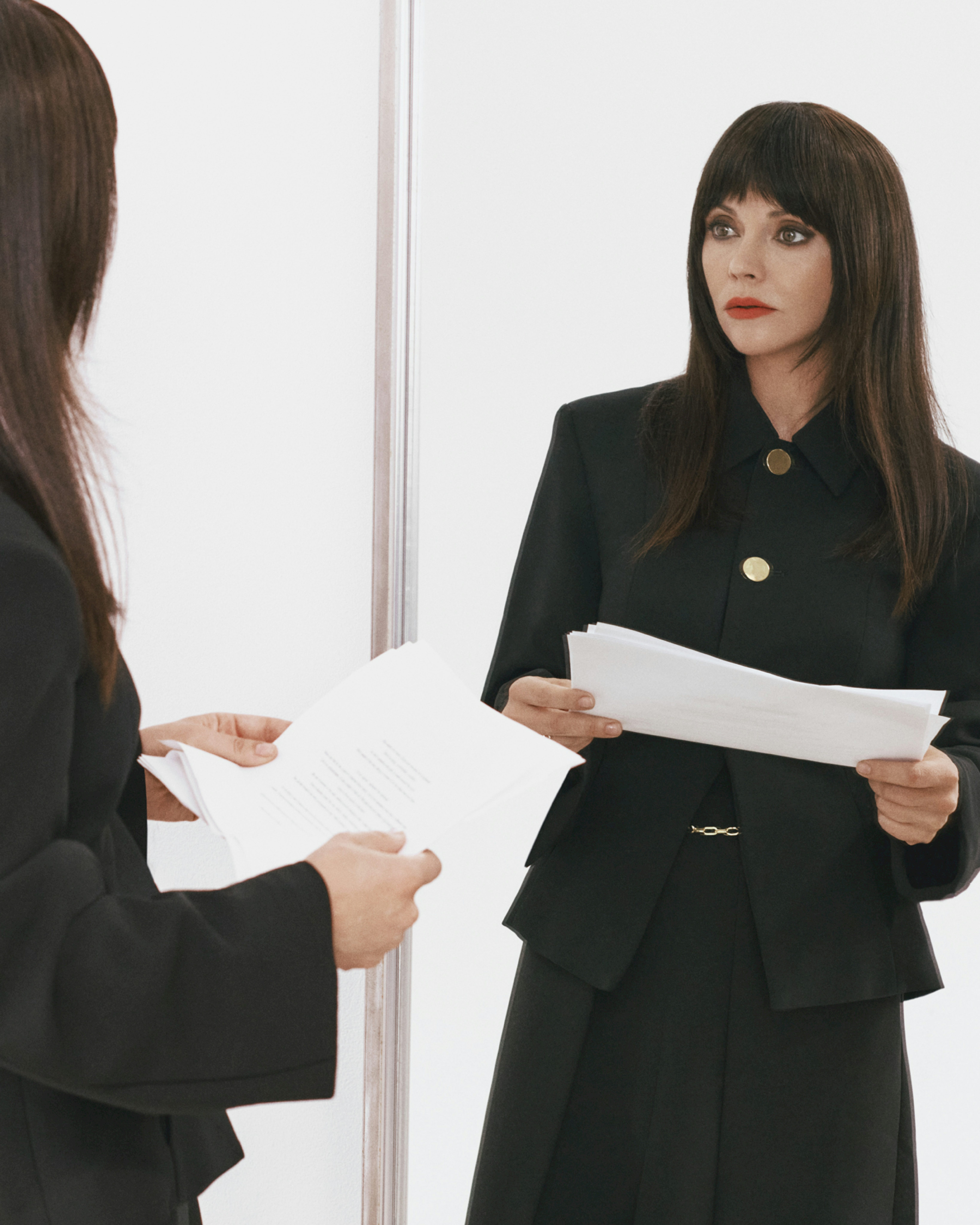 Im Hause Ganni stehen gerade viele Veränderungen an. Statt auf der Kopenhagen Fashion Week wird ab sofort in Paris gezeigt, statt Emma Chamberlain ist jetzt Christina Ricci das neue Gesicht der Brand. Ein bisschen erinnert die neue Herbst-Kampagne mit der Hollywood-Schauspielerin an die Arbeiten von Cindy Sherman: Es wird immer die gleiche Frau porträtiert, aber immer hat sie eine neue Persönlichkeit und sieht anders aus. Genau das macht Ganni eben auch aus: Auf der ganzen Welt gibt es Ganni Girls, aber keines gleicht dem anderen.