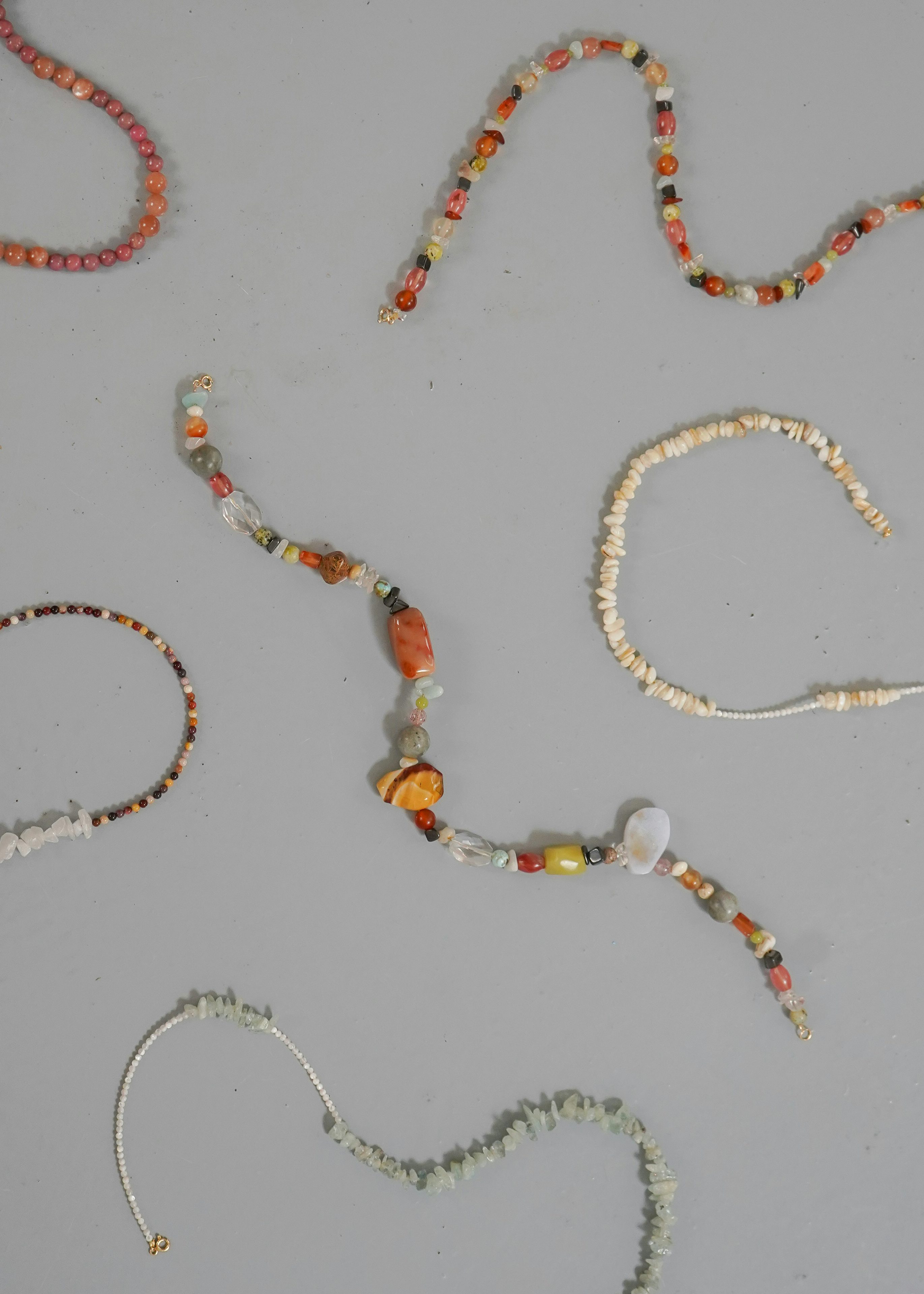 Manche davon sind sehr verspielt und knallig, andere wiederum halten sich zurück und sind etwas eleganter. Das schönste Detail: Trine hat die Ketten nach Stränden rund um die Welt benannt, die sie besucht hat und die für sie eine besondere Bedeutung haben. Meine Favoriten: Secret Beach und Carmen Beach!