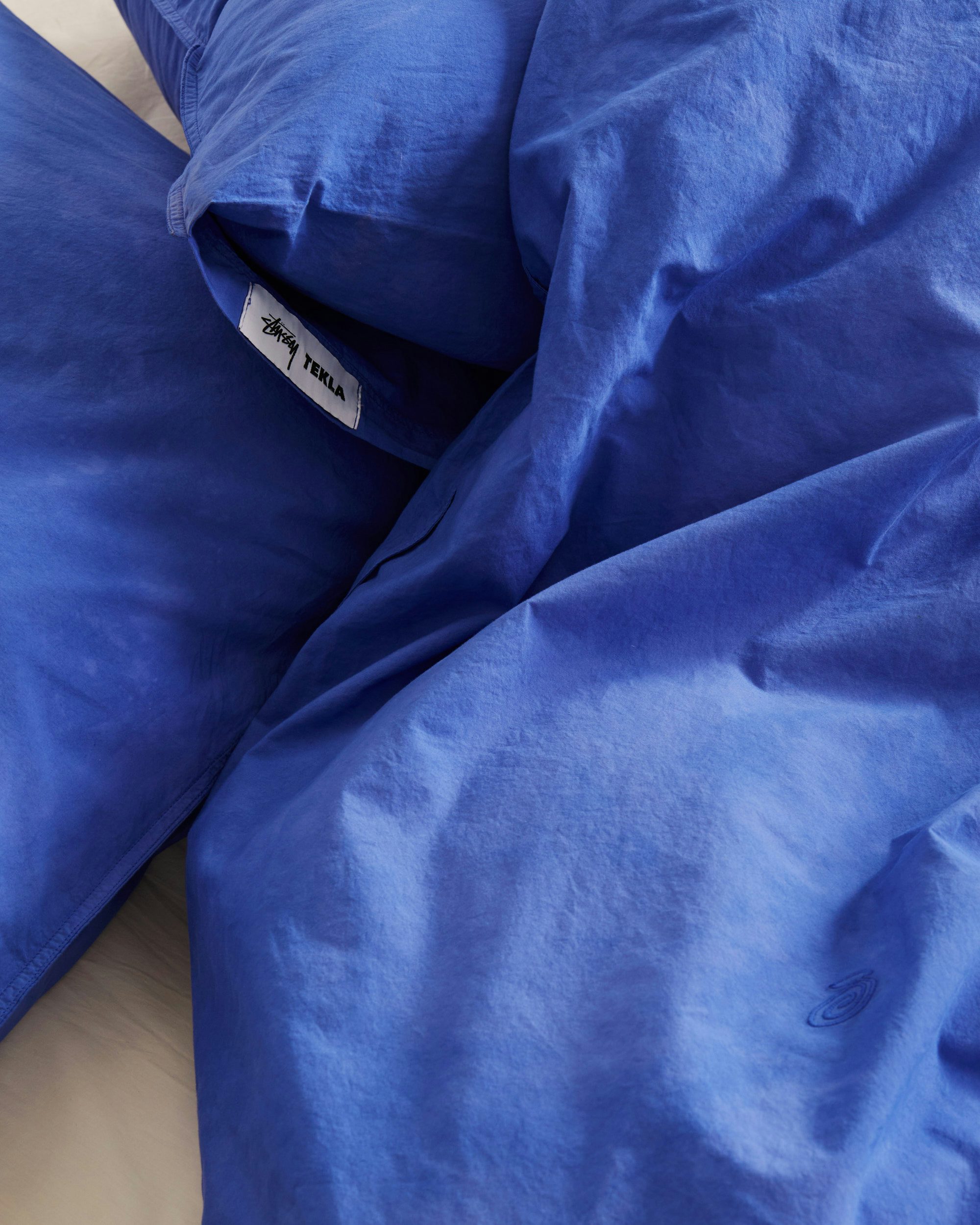 Es gibt Pyjamas und Bettwäsche, Handtücher und Strandtücher in knalligem Blau und mit einem Jacquard-Muster. Die Kollektion ist ab dem 17. Juni in ausgewählten Stüssy Stores, online und im Dover Street Market erhältlich.