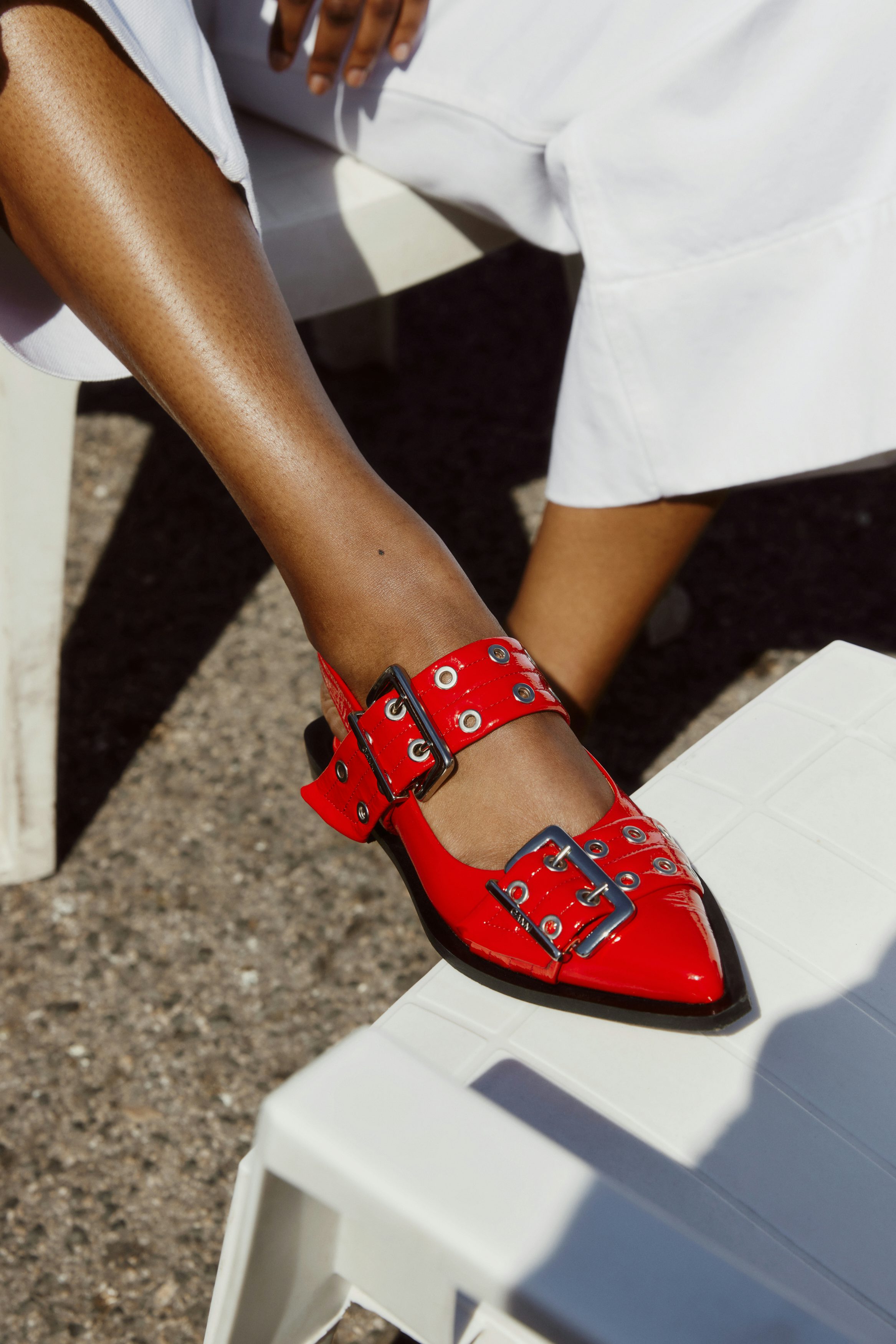 Mit dabei sind schlichtere Baumwoll-Kleider in typischer Ganni-Manier, aber auch exzentrischere Looks mit Mermaid-Pailletten oder auffälligen Farben und Mustern. Immer noch nicht hinweg bin ich außerdem über die spitzen Ballerinas mit den auffälligen Schnallen, die scheinen einfach jedes Kleid cooler zu machen – und wandern damit auf meiner Wunschliste weiter nach oben. Weitere Favoriten von mir findet ihr hier: