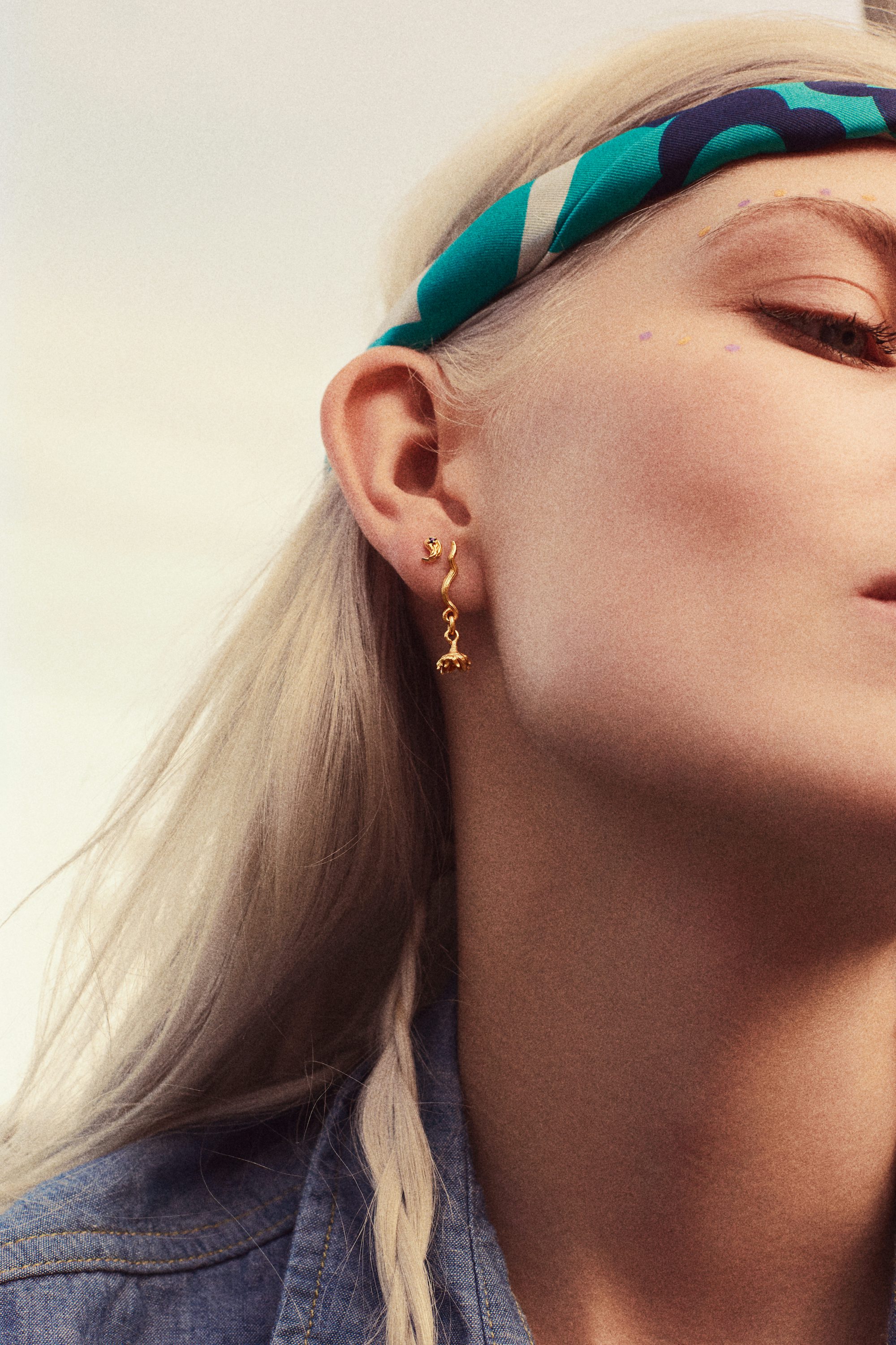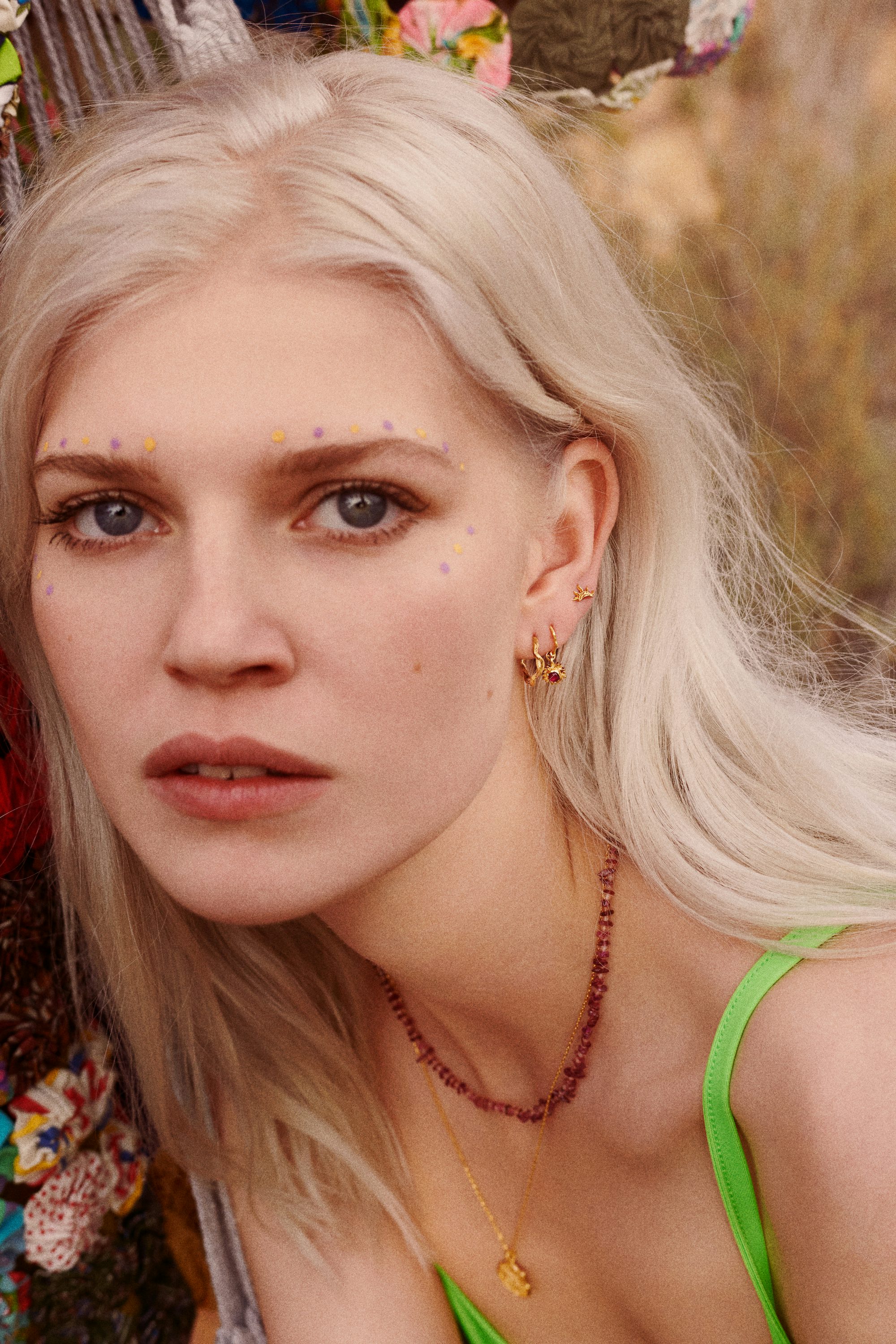 Meinen Test bestanden hat Maanesten, das Brand aus Dänemark mit seinen Designs, das spirituelle mit ästhetischen Ansprüchen vereint. Und mit seiner neuesten High Summer Kollektion haben sie sich einen Platz in meinem Hippie-Herzen gesichert. „Die Idee hinter der Kollektion war, die schwesterliche Verbindung zwischen der Sonne und den Sonnenblumen zu erforschen“, sagt Trine Kristoffersen, die Chefdesignerin von Maanesten. Herausgekommen sind jede Menge Ohrringe, Ketten und Ringe mit Süsswasserperlen und Edelsteinen wie Turmalin, Mondstein und Citrin.