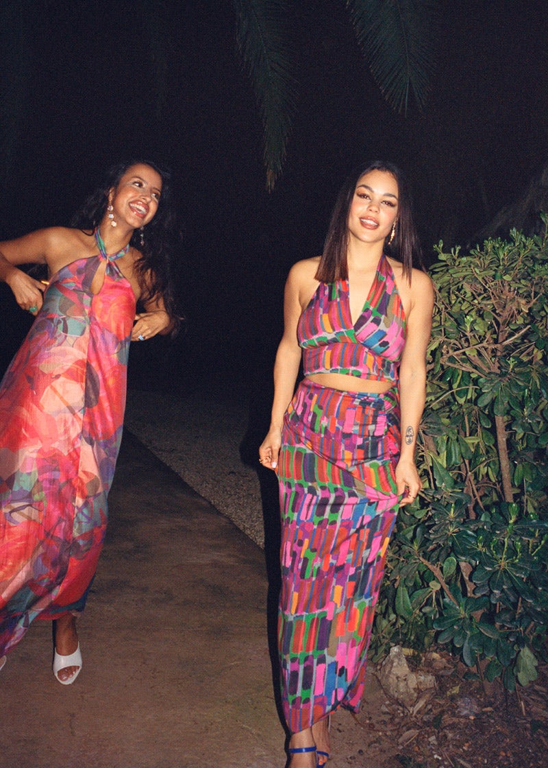 Ist es eine Pucci-Kampagne aus den Sechzigern, geshootet in einem Haus in Los Angeles? Nein, es ist die neue Mango-Kollektion! Und die hat es in sich! Denn hier werden bunte Party-Prints mit Pailletten, Knallfarben mit Metallic und moderne Mini-Skirts mit cropped Blazern kombiniert. Das Ergebnis? Dolce Vita at its best!