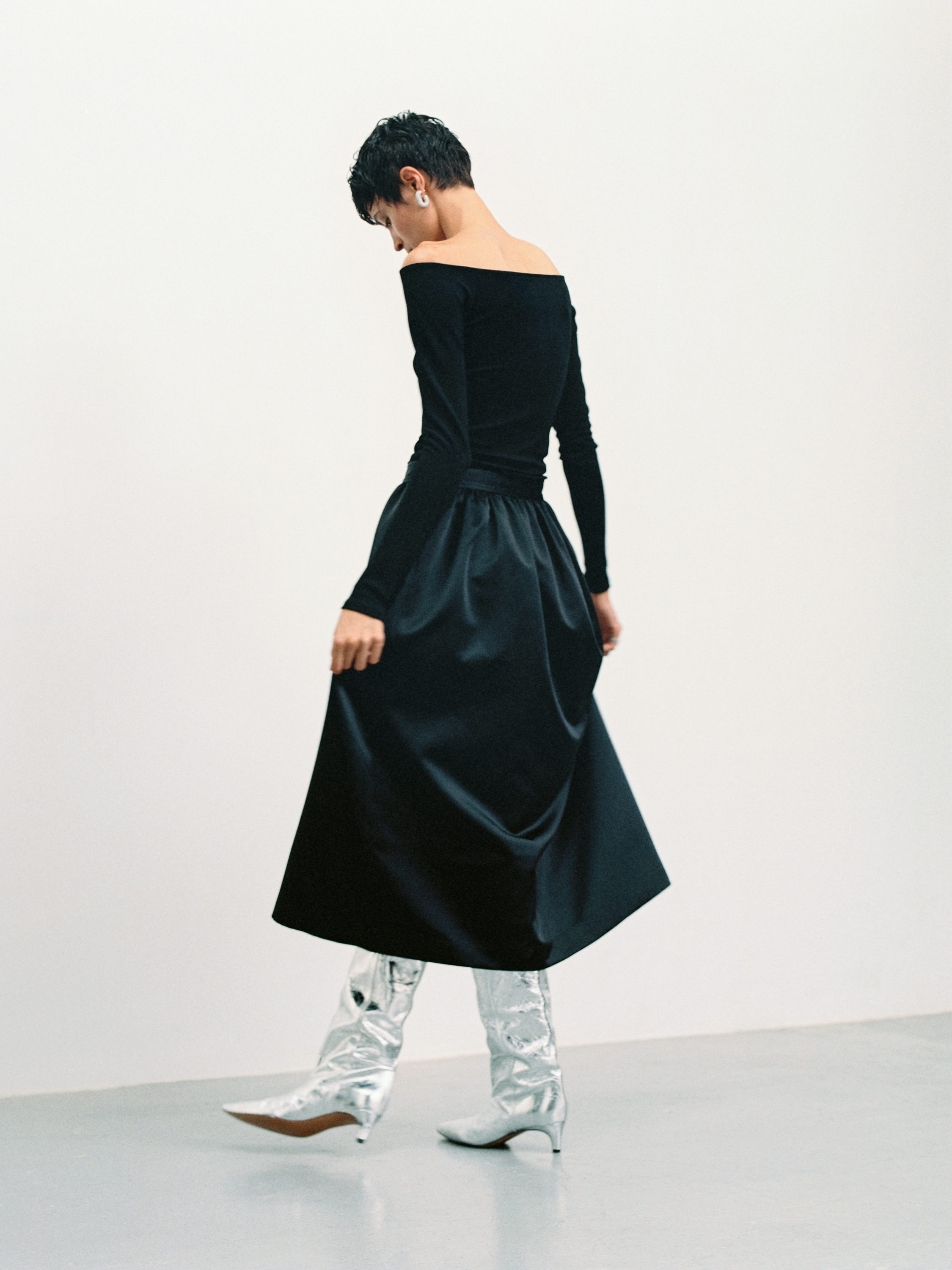 Kein Wunder also, dass auch Closed mit ihrer Eveningwear-Kollektion auf weniger angesagte Teile wie Allover-Pailletten-Looks oder Knallfarben setzt, sondern den Fokus auf glänzende Materialien wie Cupro, Viskose, Seide und Leder verlagert. Das Ergebnis sind Pieces, die ihr 365 Tage im Jahr tragen könnt – und damit immer glänzt!