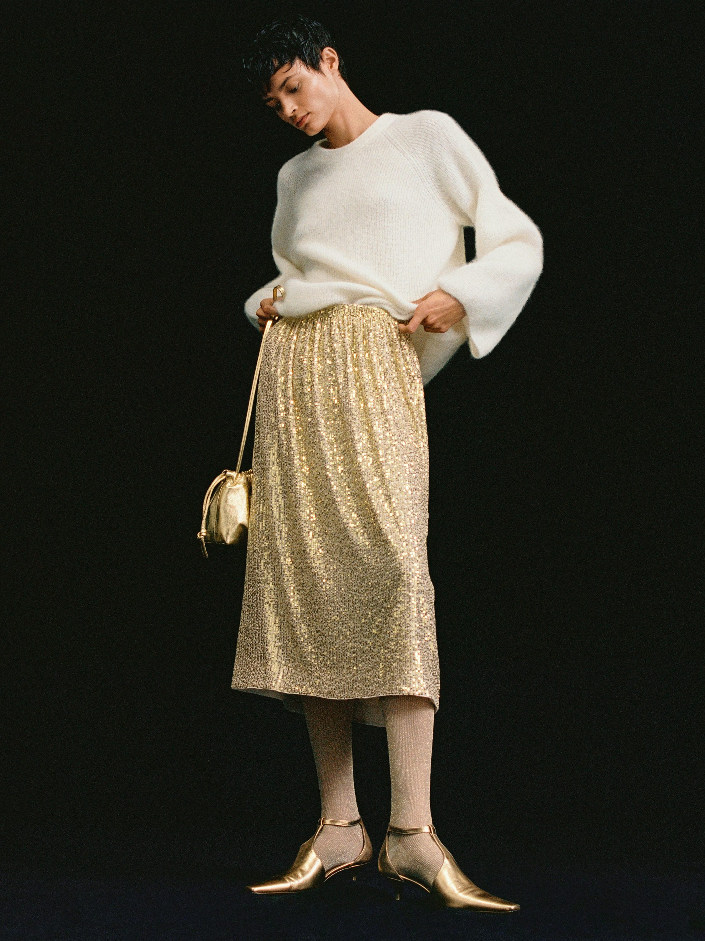 Auf meiner Liste mit feierlichen Party-Looks sind einige Brands, die ich euch unter anderem hier vorstelle, ganz oben. Arket gehört eigentlich in jeder Saison, ob Bademode, nachhaltige Daune oder eben auch Eveningwear dazu. Besonders die Glitter-Taschen haben es mir angetan, da habe ich nämlich noch eine Lücke in meiner Sammlung!