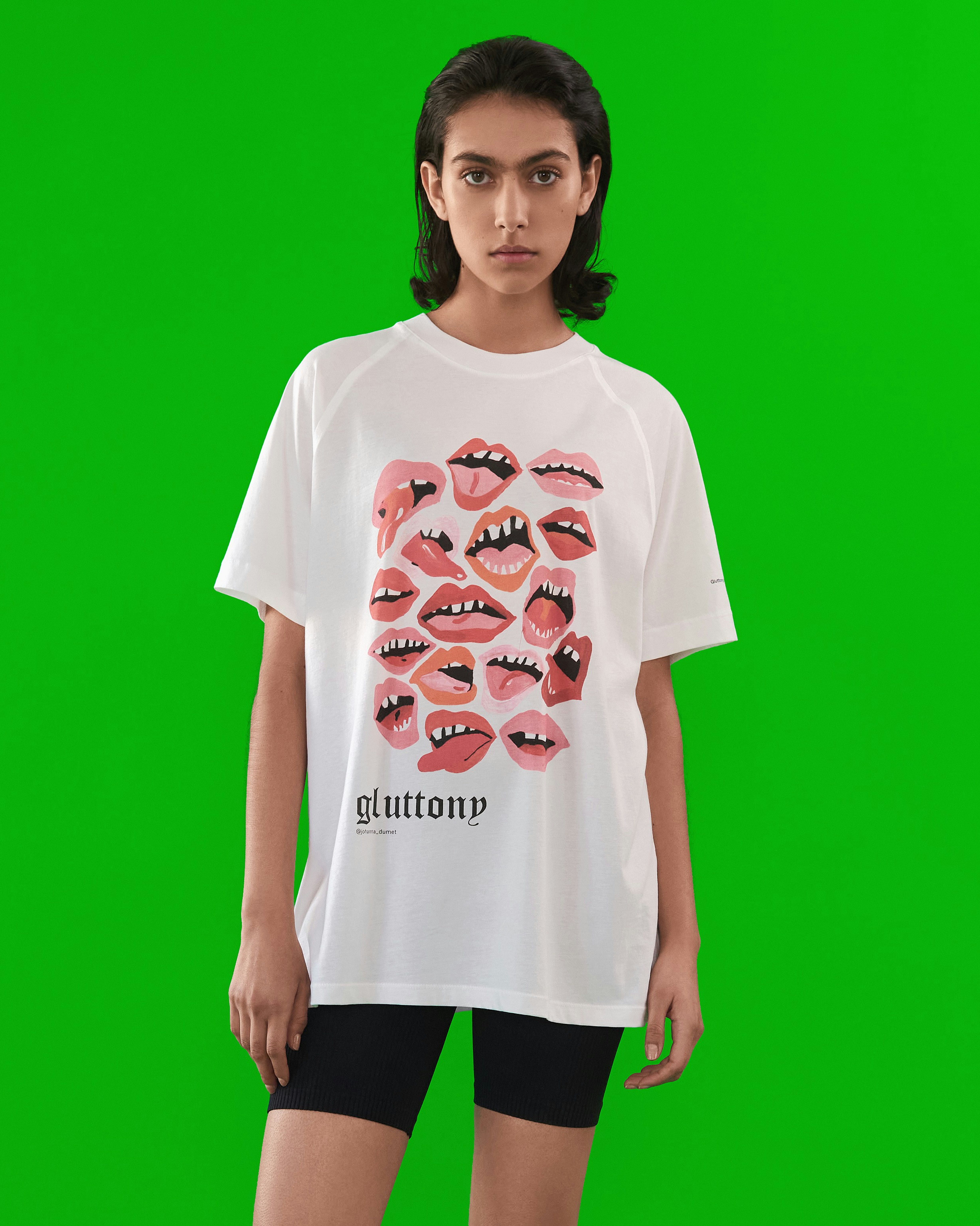 Zusammen mit sieben Künstler*innen hat das Berliner Brand eine T-Shirt-Kollektion herausgebracht, die die sieben Todsünden künstlerisch in Szene setzen.