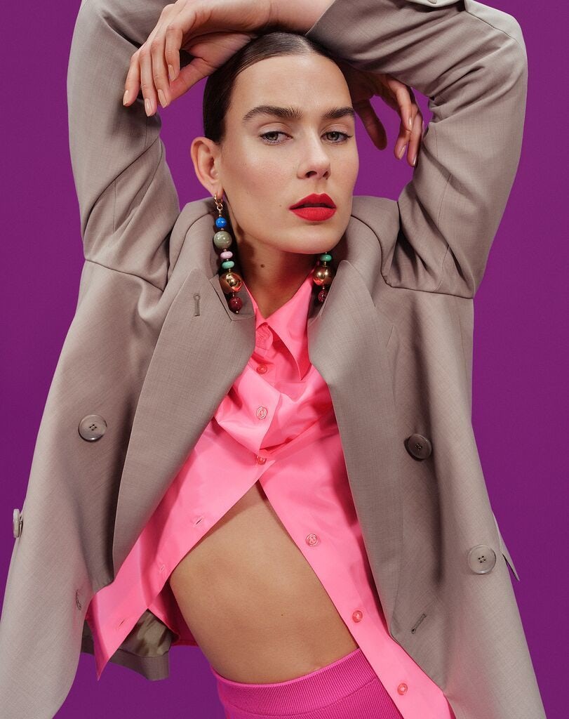 Apropos grauer Wintertag. Gegen die schlechte Laune im Januar hilft vor allem eine Tageslichtlampe und ein Kleiderschrank, der einen am Morgen mit bunten Farben und knalligen Mustern anlacht. Essentiel Antwerp sieht das genauso, wie der neue Drop 1 der SS22 Kollektion verrät. Geshootet wurde mit einem der gefragtesten Models zur Zeit, Vera van Erp. Generell wird das belgische Label von Saison zu Saison mutiger und trendbewusster. Und das gefällt mir!